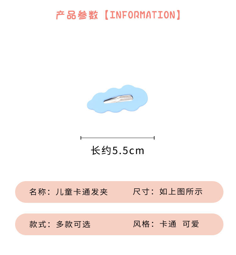캔디 컬러 웨이브 클라우드 BB 클립 소녀 달콤한 머리핀 귀여운 앞머리 측면 깨진 머리 클립 머리 클립 뒷면스토어 가기