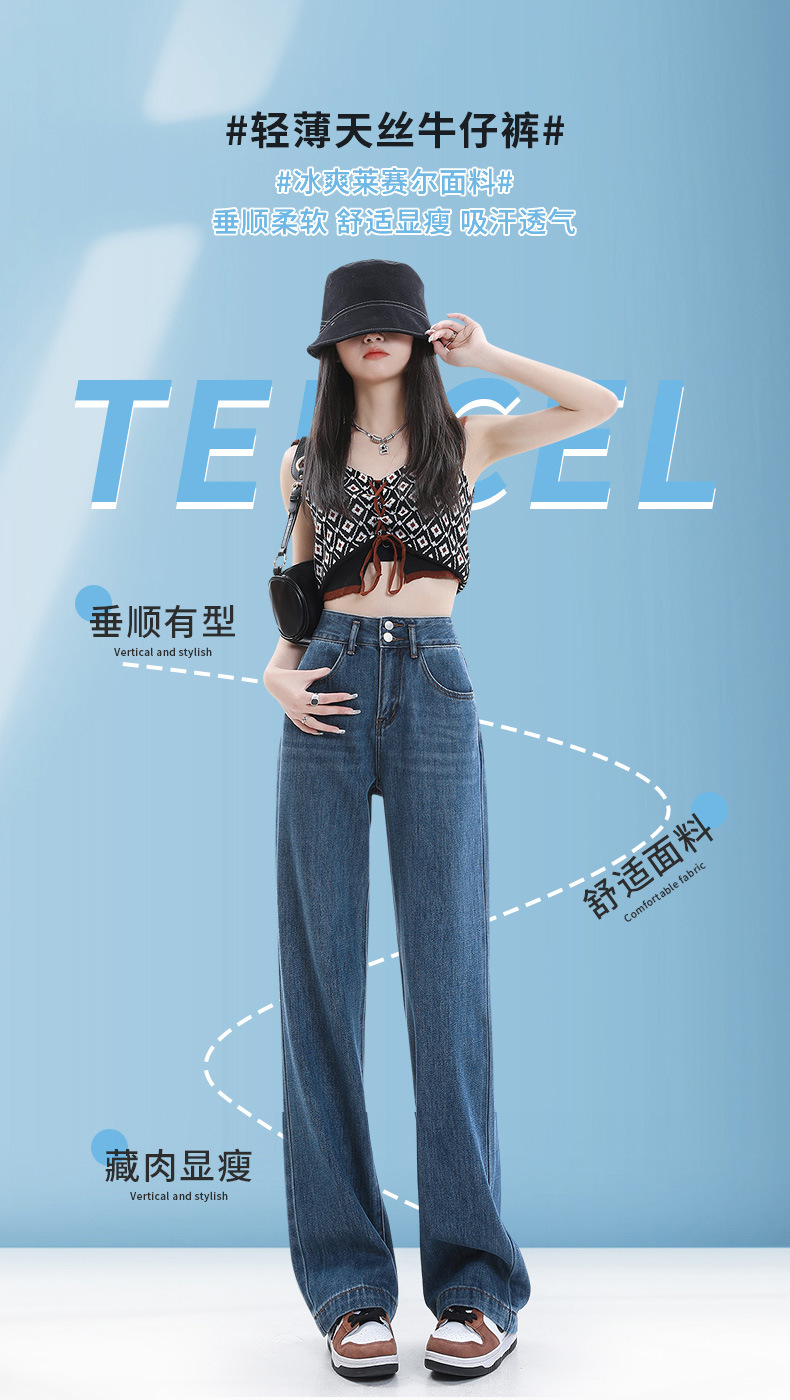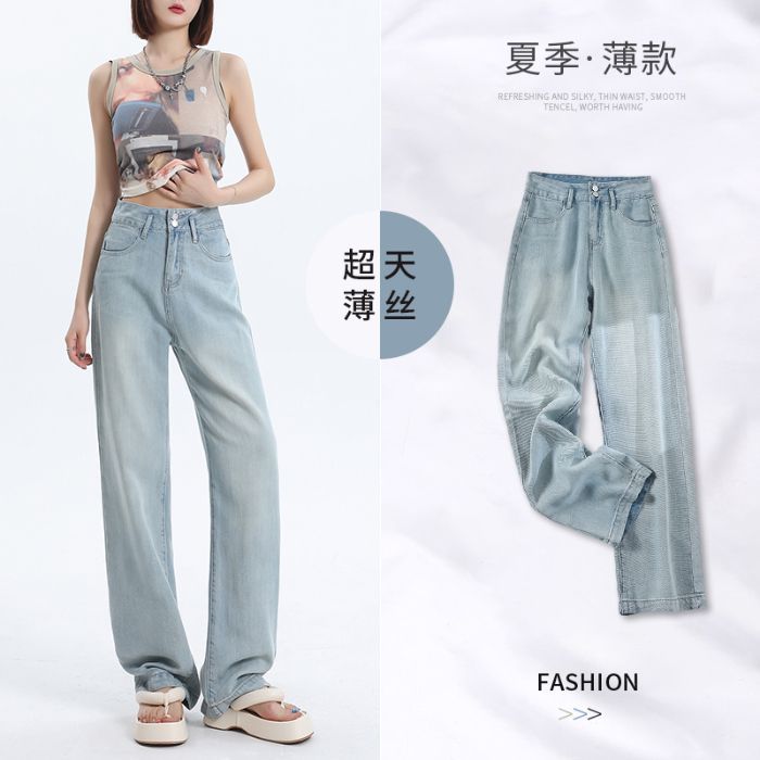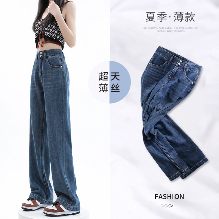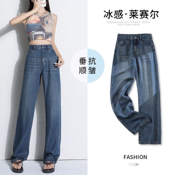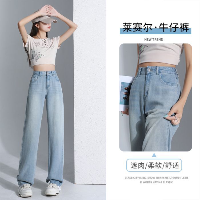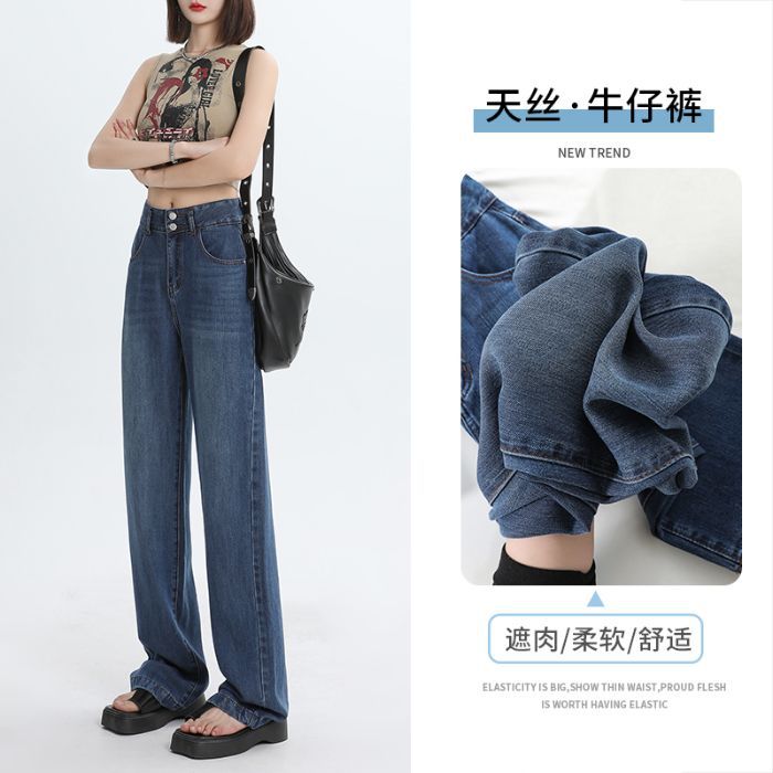 YKK 텐셀 청바지 여성 여름 넓은 다리 바지 여성 여름 높은 허리 얇은 느슨한 넓은 다리 청바지 여성 바지스토어 가기