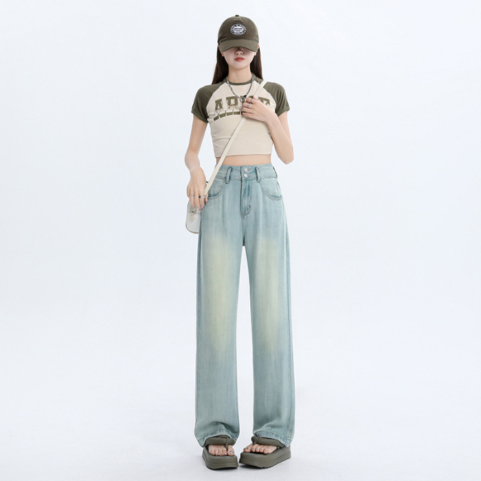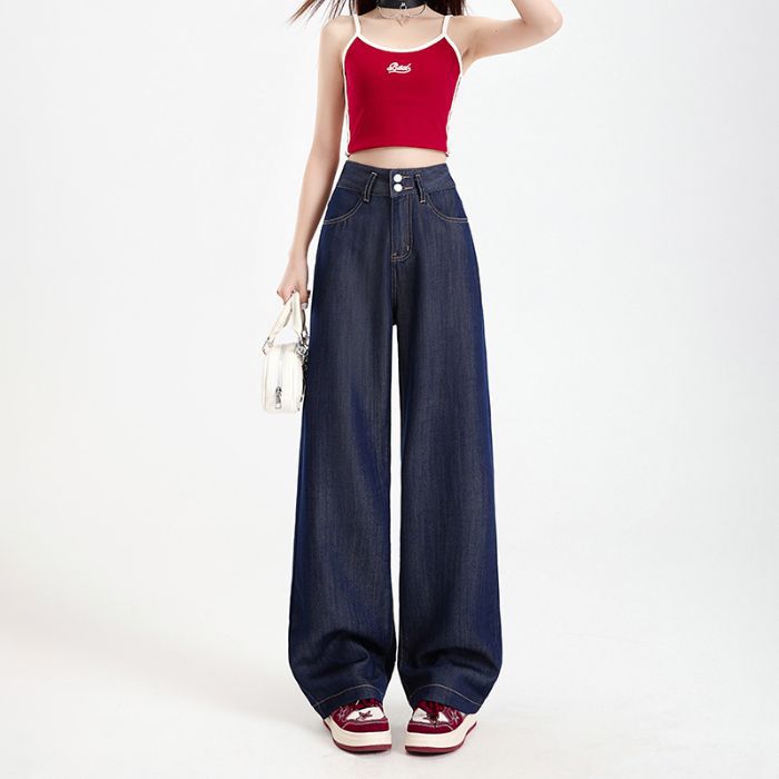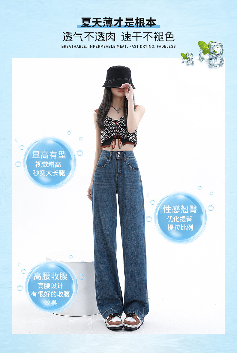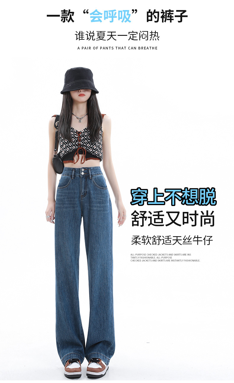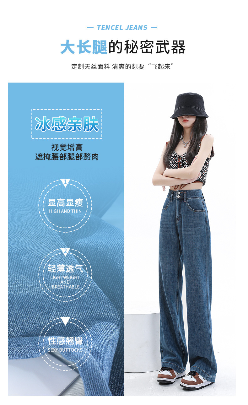 YKK 텐셀 청바지 여성 여름 넓은 다리 바지 여성 여름 높은 허리 얇은 느슨한 넓은 다리 청바지 여성 바지스토어 가기