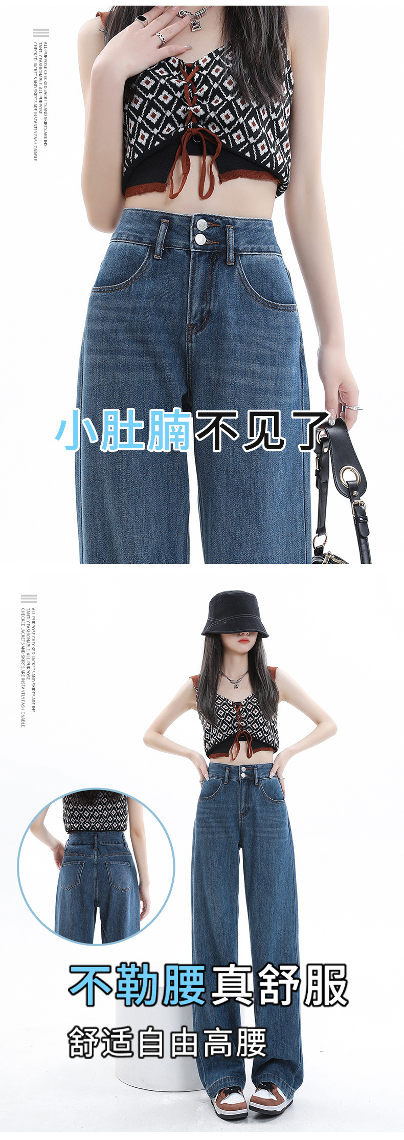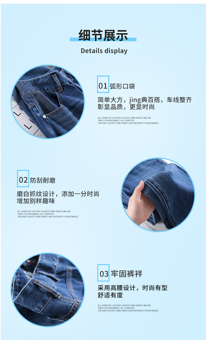 三防阔腿牛仔裤