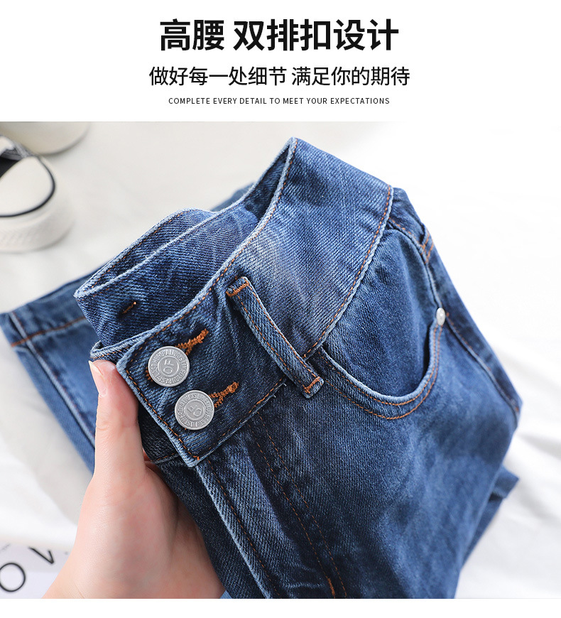 加绒牛仔裤女冬四面弹窄版阔腿裤女秋高腰直筒牛仔裤女秋直筒裤女