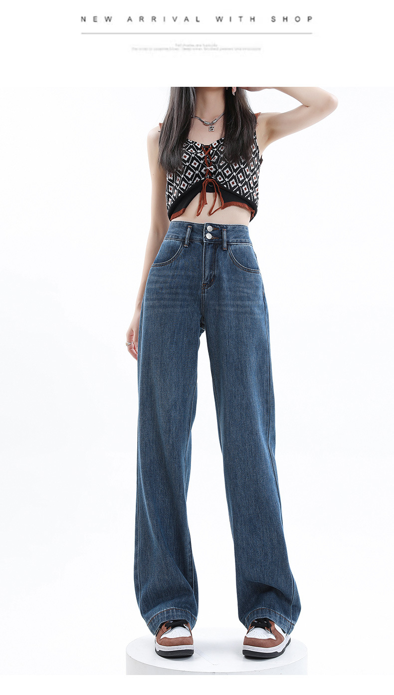 超柔弹力直筒裤女秋冬宽松窄版阔腿牛仔裤女秋冬加绒牛仔裤女秋冬