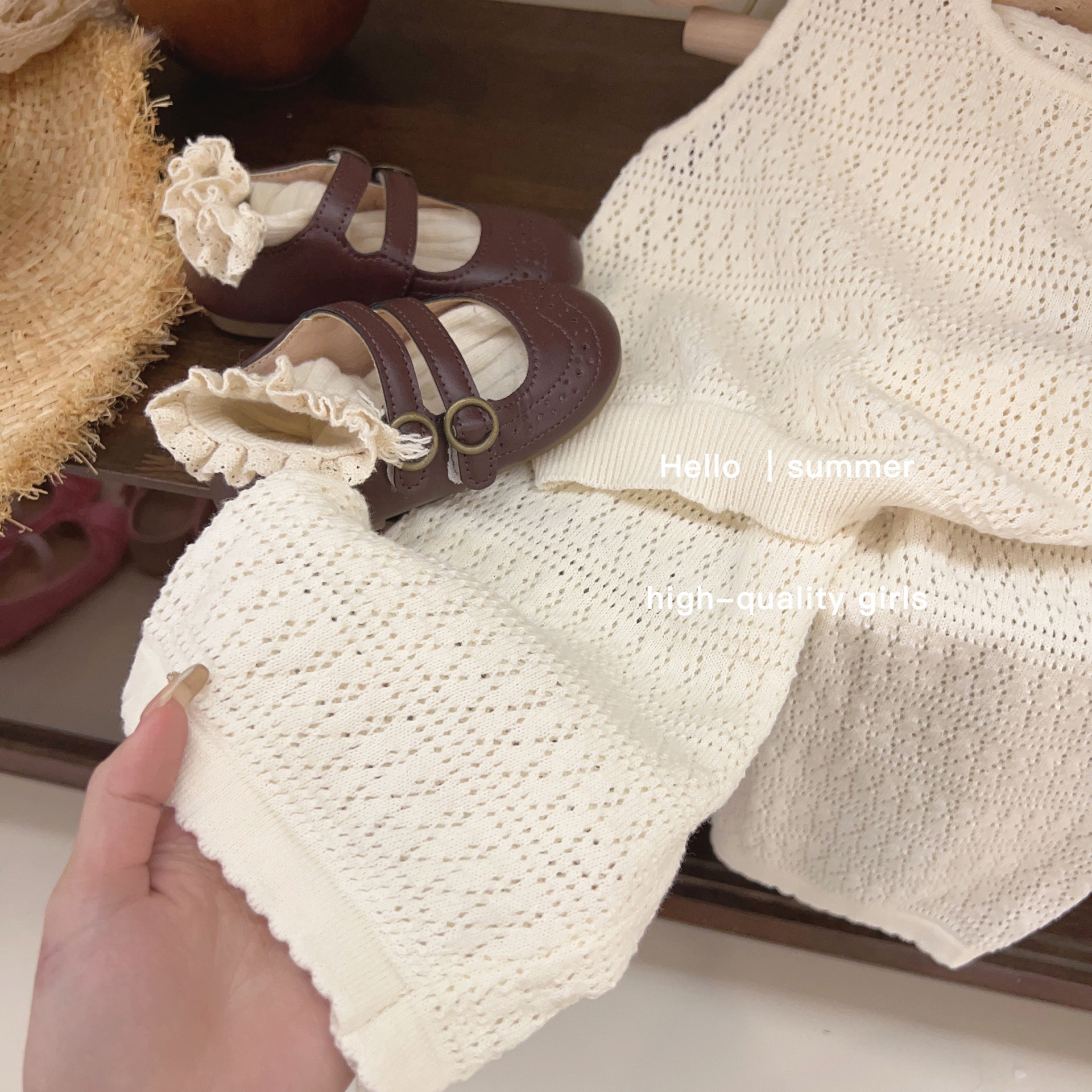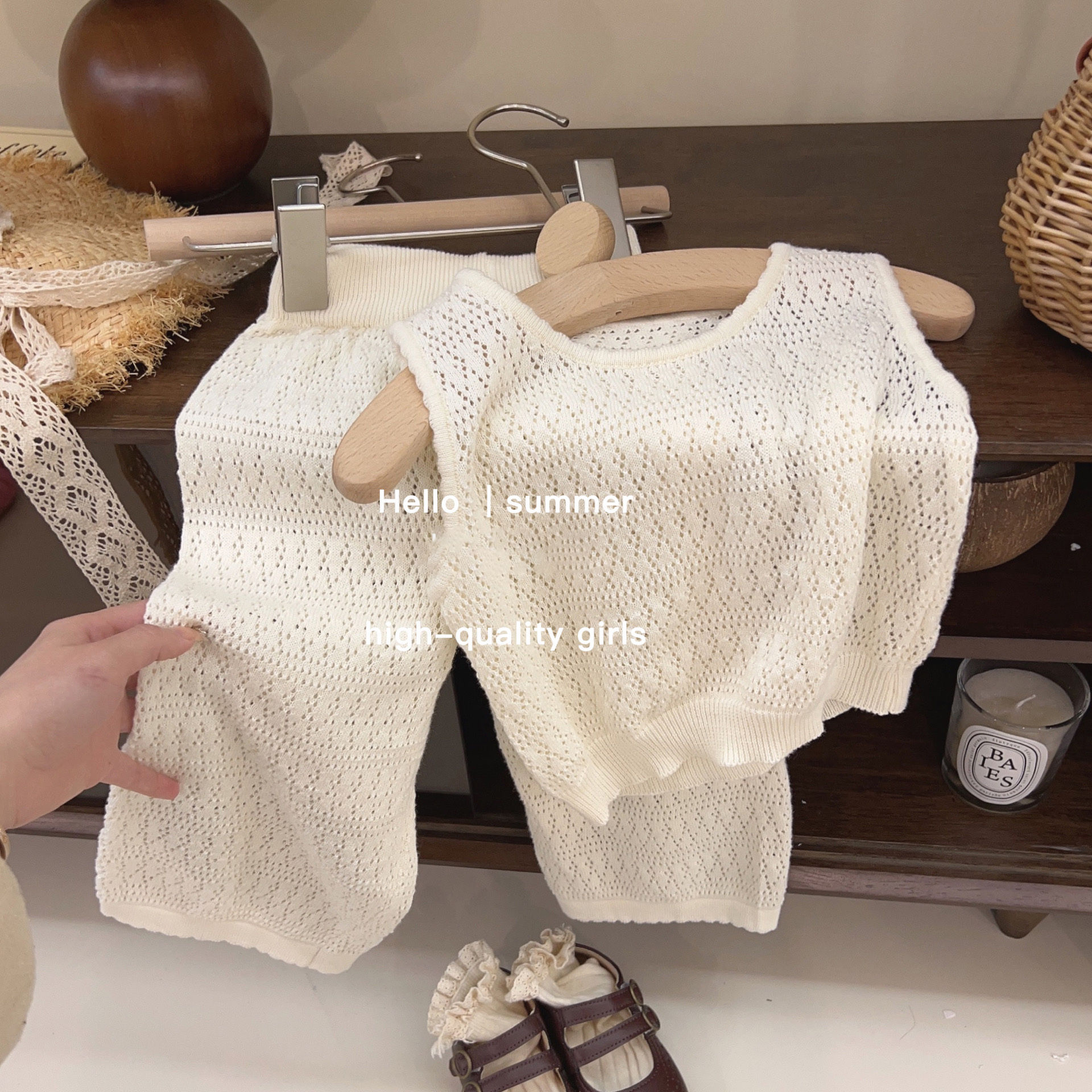 아동복 여아 얇은 니트 세트 2026 여름 여아용 속이 비치는 민소매 상의와 와이드 팬츠 투피스 세트 트렌디한 유아복스토어 가기
