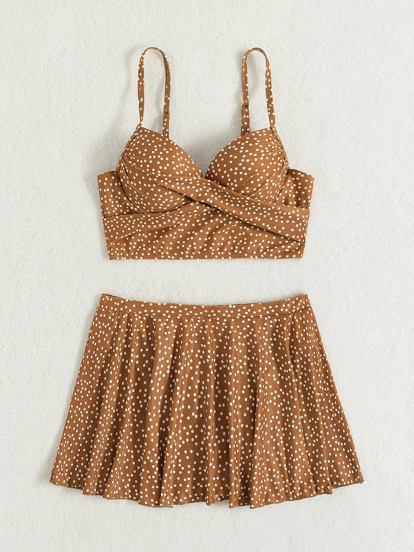 유럽 및 미국 알리익스프레스 아마존 분리형 물방울무늬 비키니 푸쉬업 스틸라이너 3피스 세트 패션 수영복 여성용 다색 프린트스토어 가기