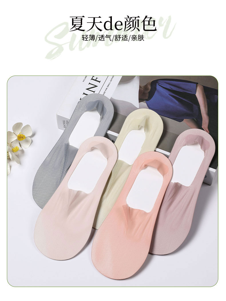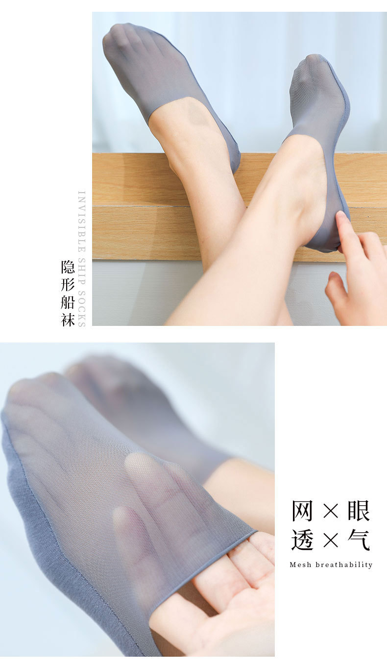 여름 초박형 아이스 실크 메쉬 양말 여성용 보트 양말 여성용 여름 면 바닥 얕은 입 보이지 않는 실리콘 미끄럼 방지 힐
