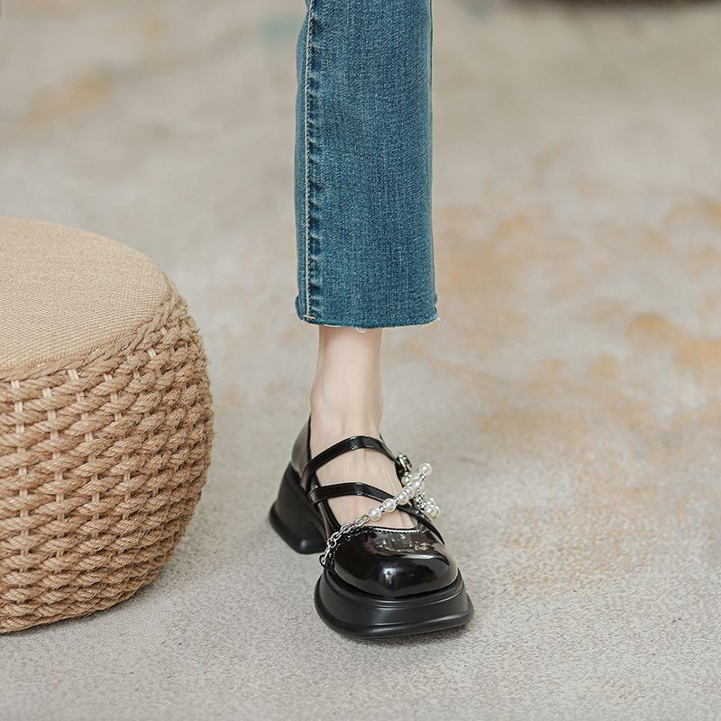 두꺼운 뒤꿈치 작은 가죽 신발 2023 새로운 스타일 싱글 슈즈 대학 스타일 두꺼운 바닥 가죽 러브 슈즈 영국 스타일 봄 여성 신발스토어 가기