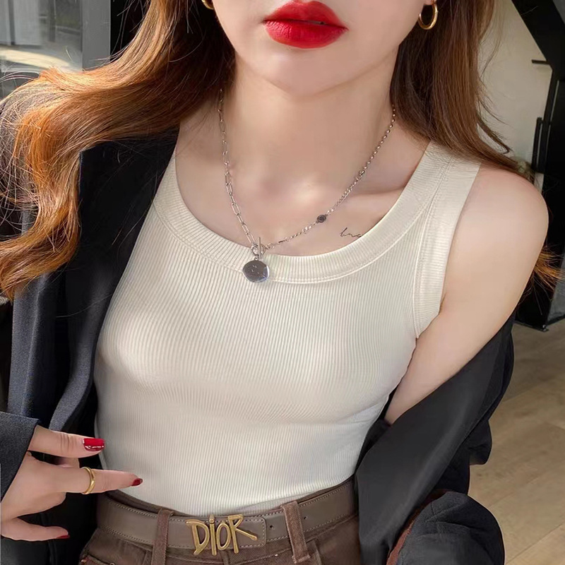 여성용 대형 골지 면 레이서 조끼, 여름 한식 상의, 슬림핏 밑단 니트 민소매 멜빵스토어 가기