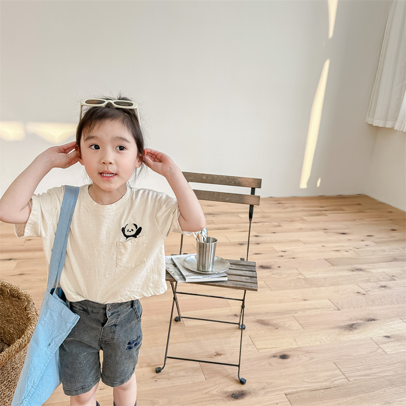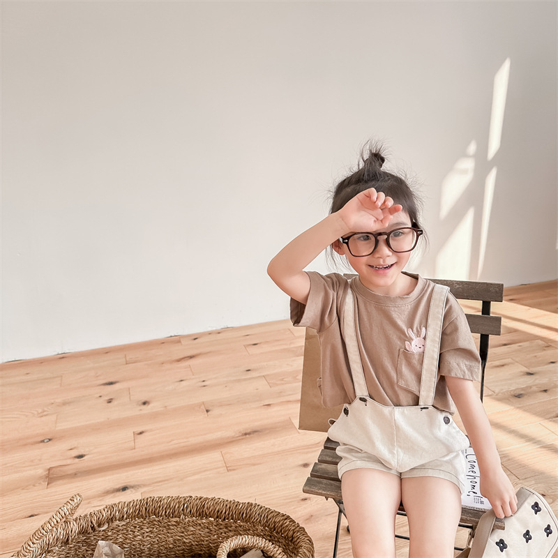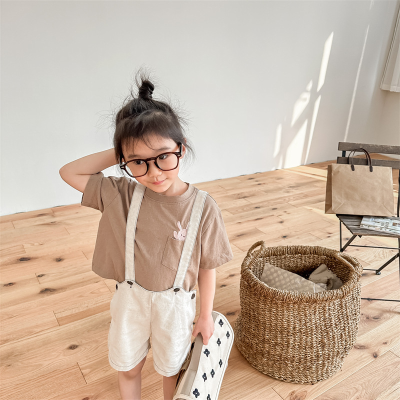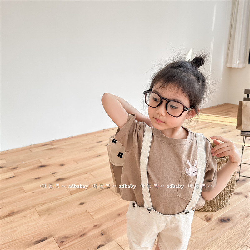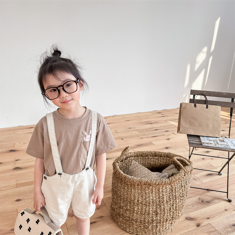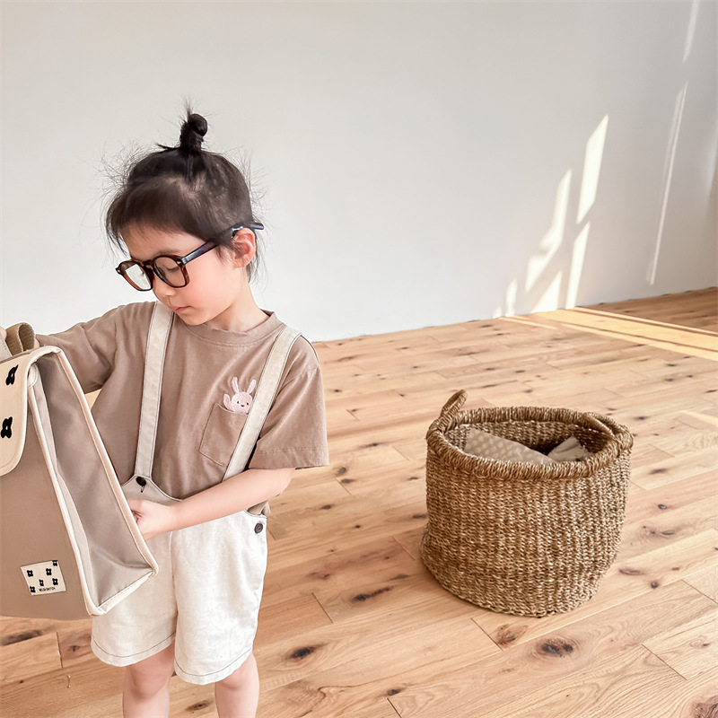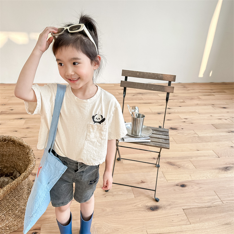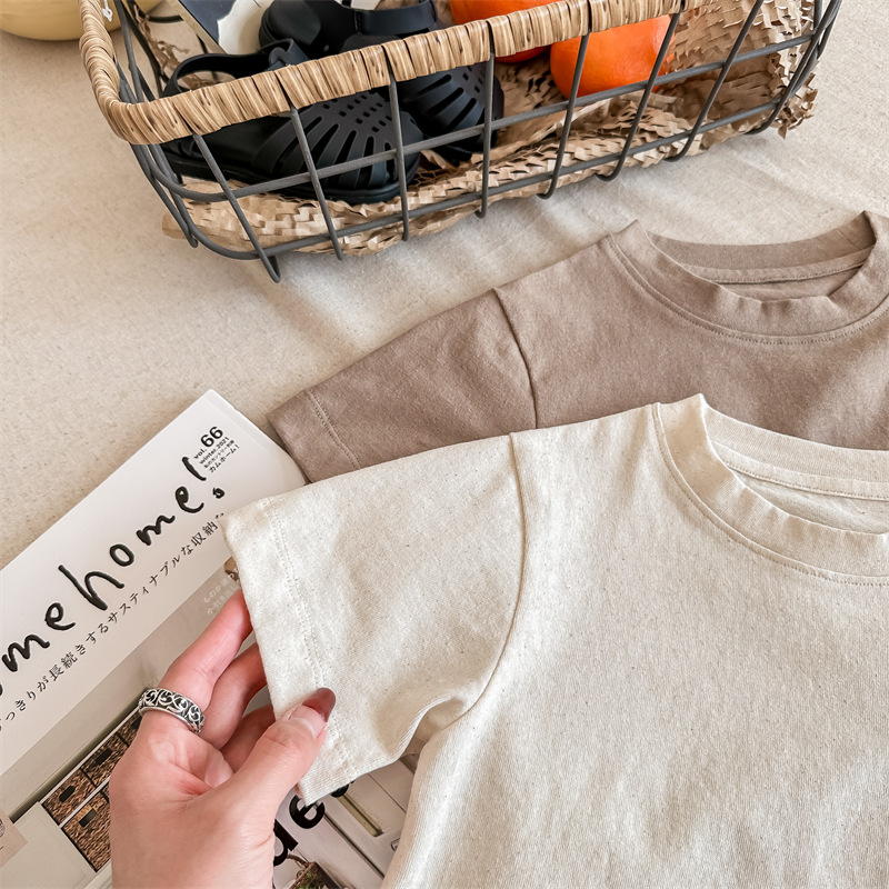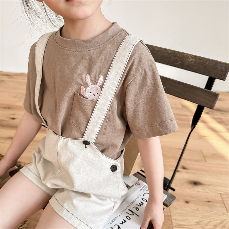 2026 아동복 여름 한국 스타일 린넨 면 만화 자수 반팔 티셔츠 여아 남아 베이직 티셔츠 123210