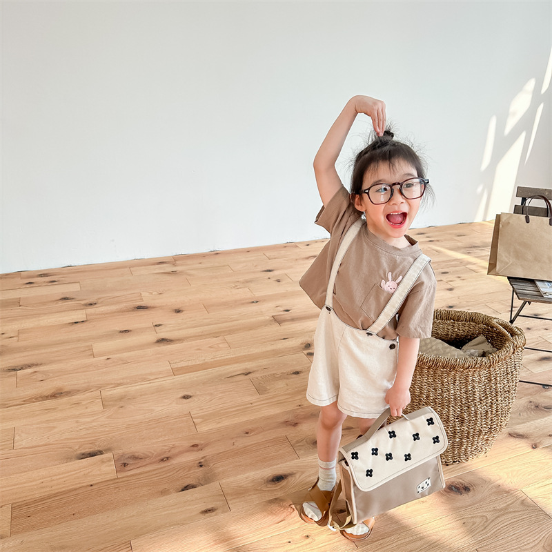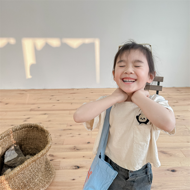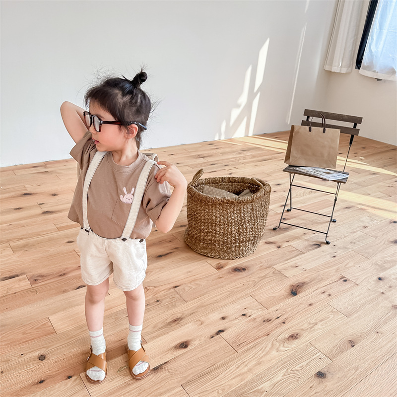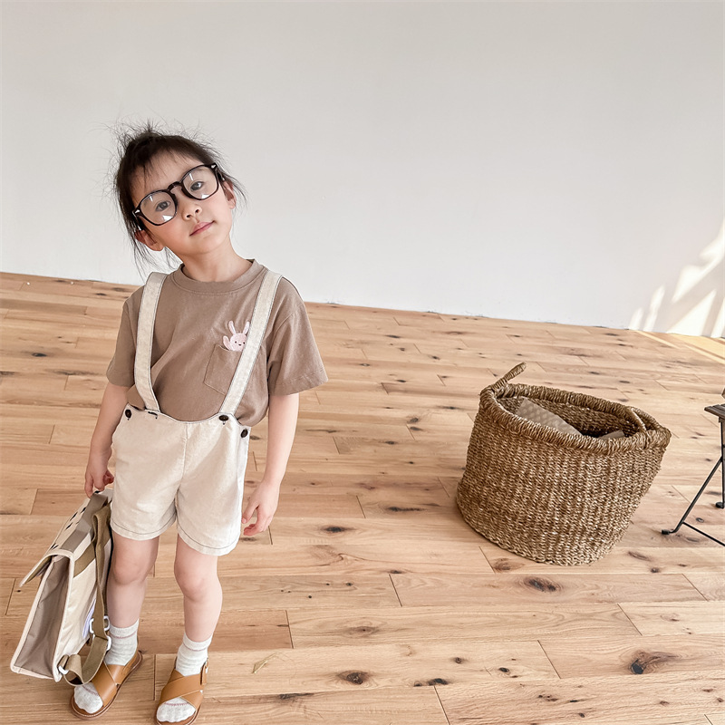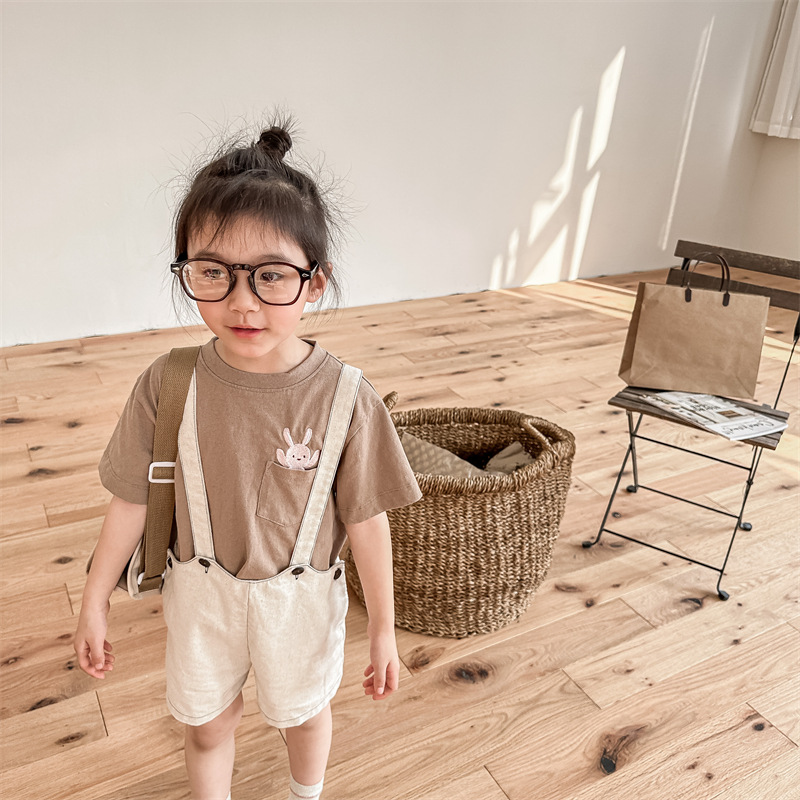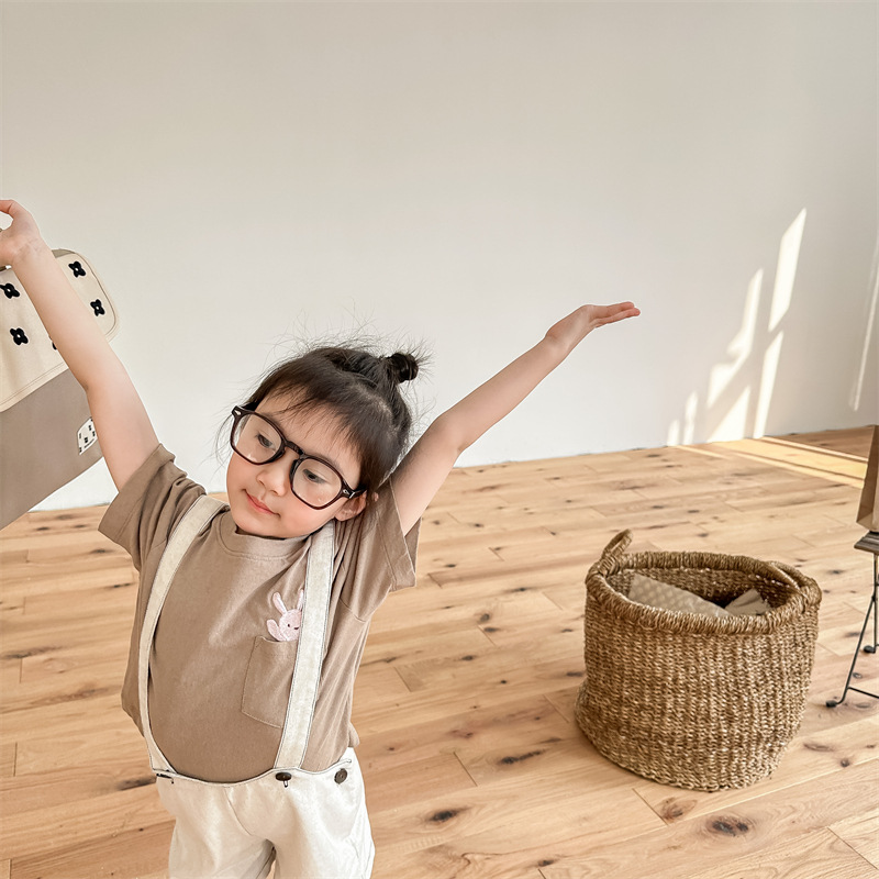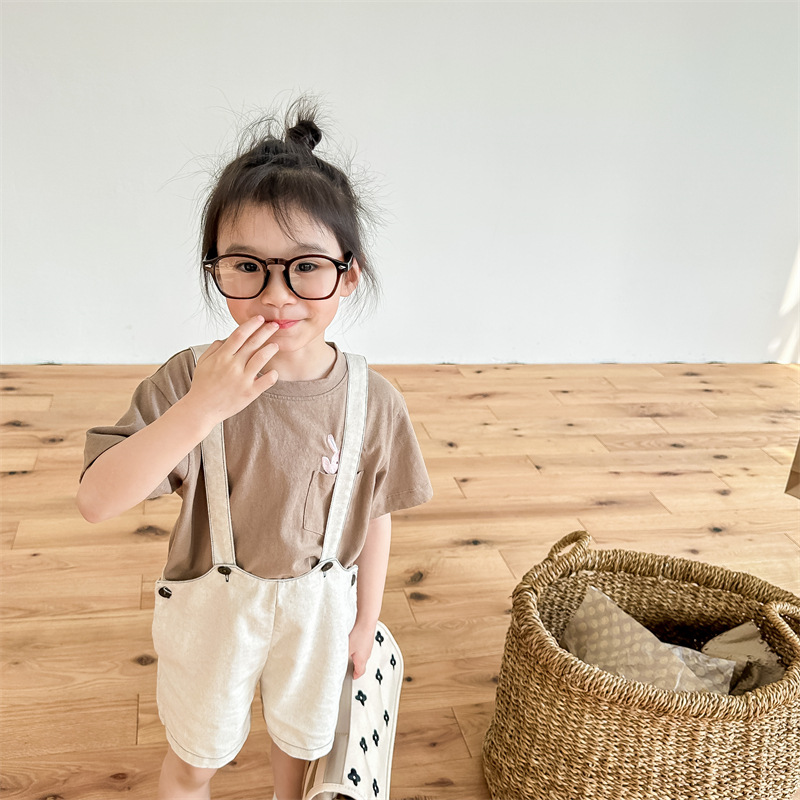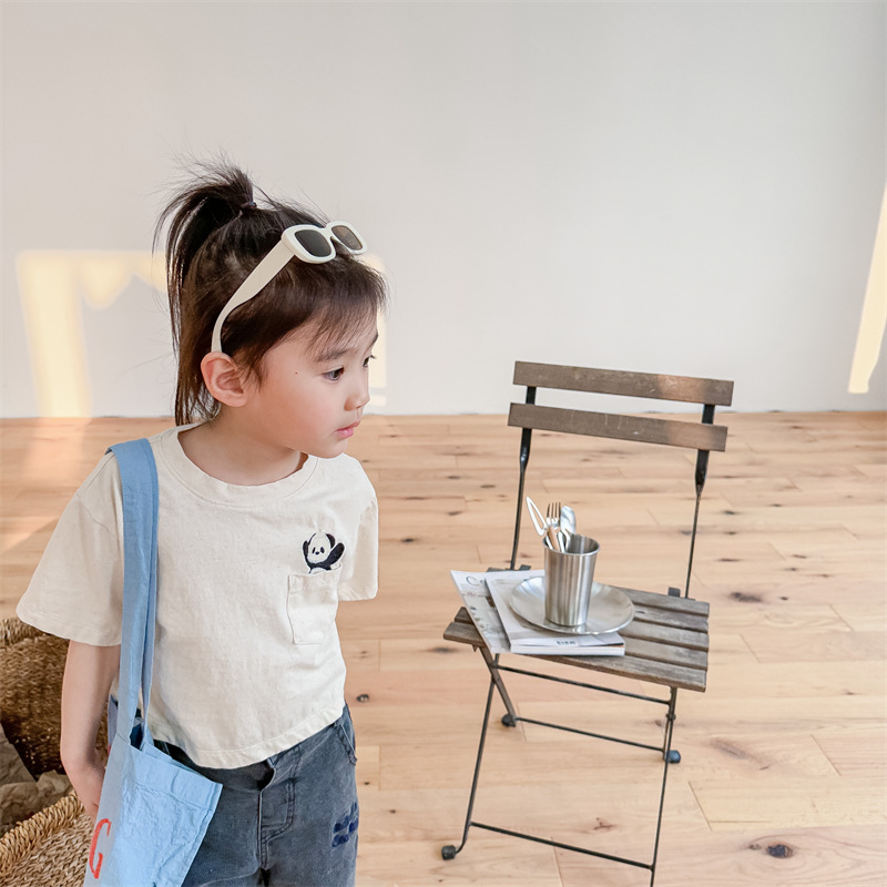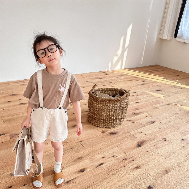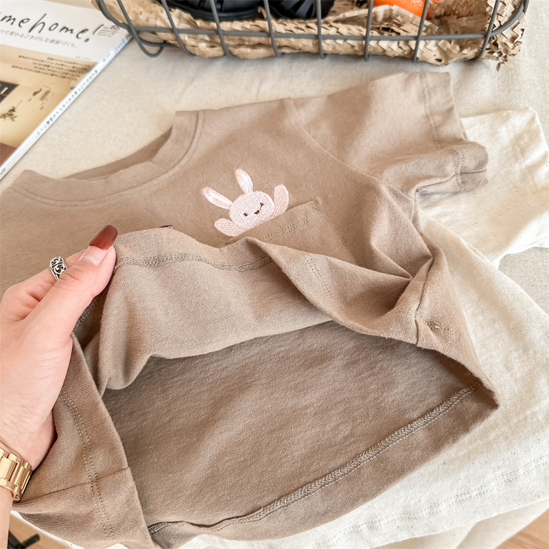 2026 아동복 여름 한국 스타일 린넨 면 만화 자수 반팔 티셔츠 여아 남아 베이직 티셔츠 123210