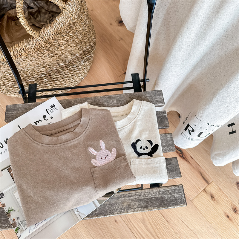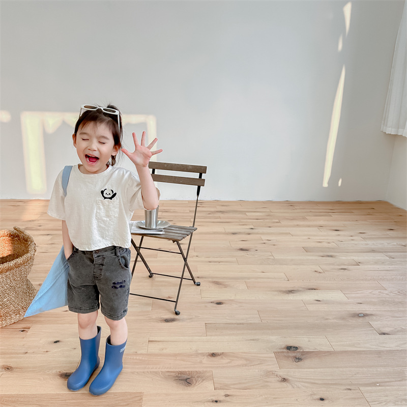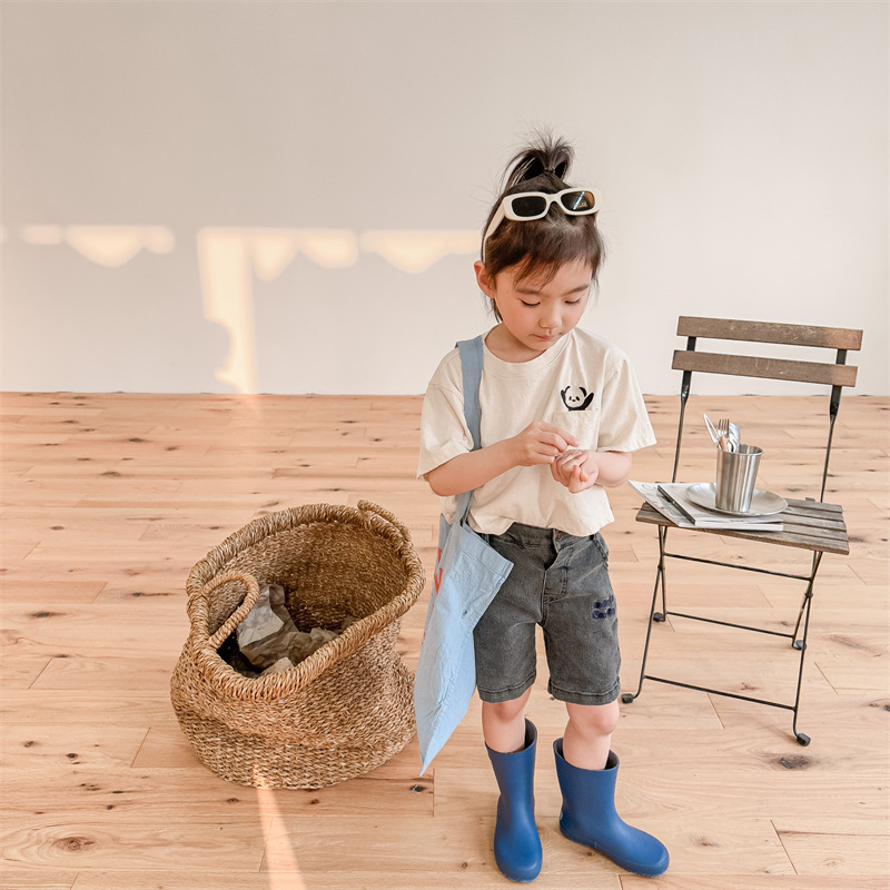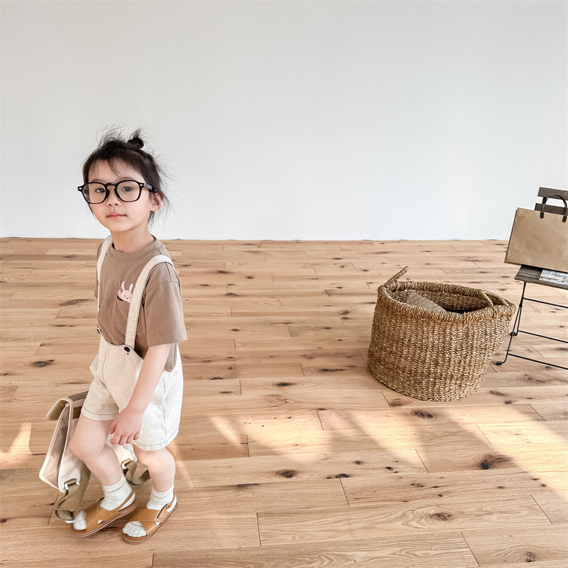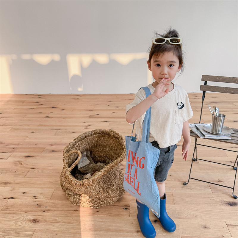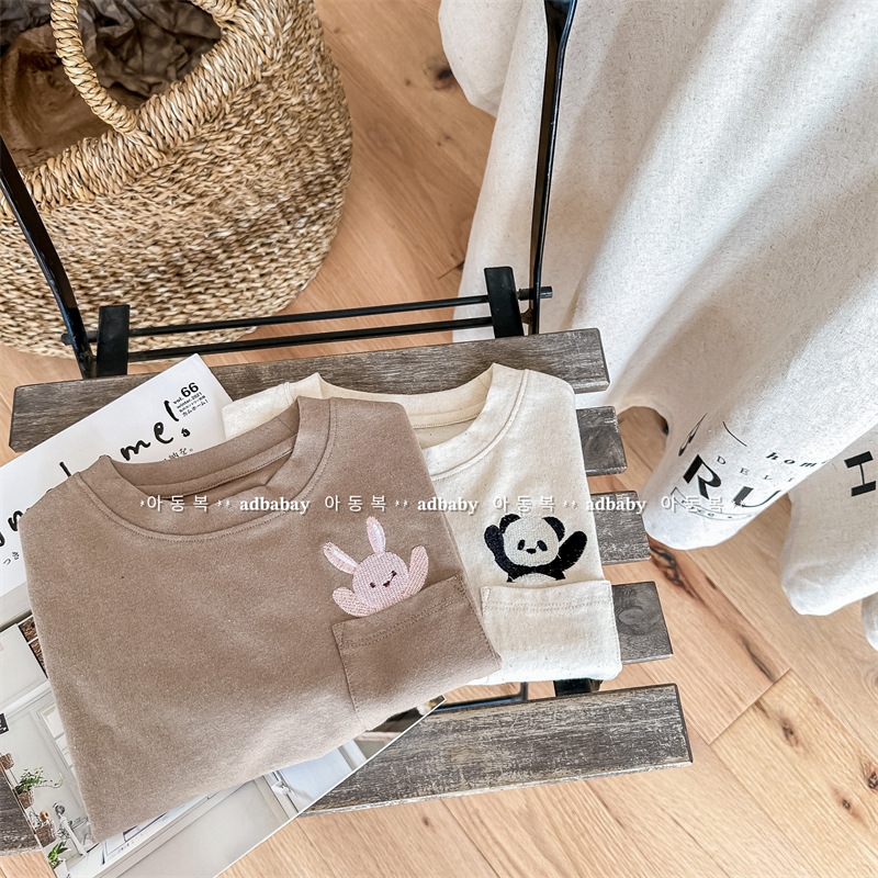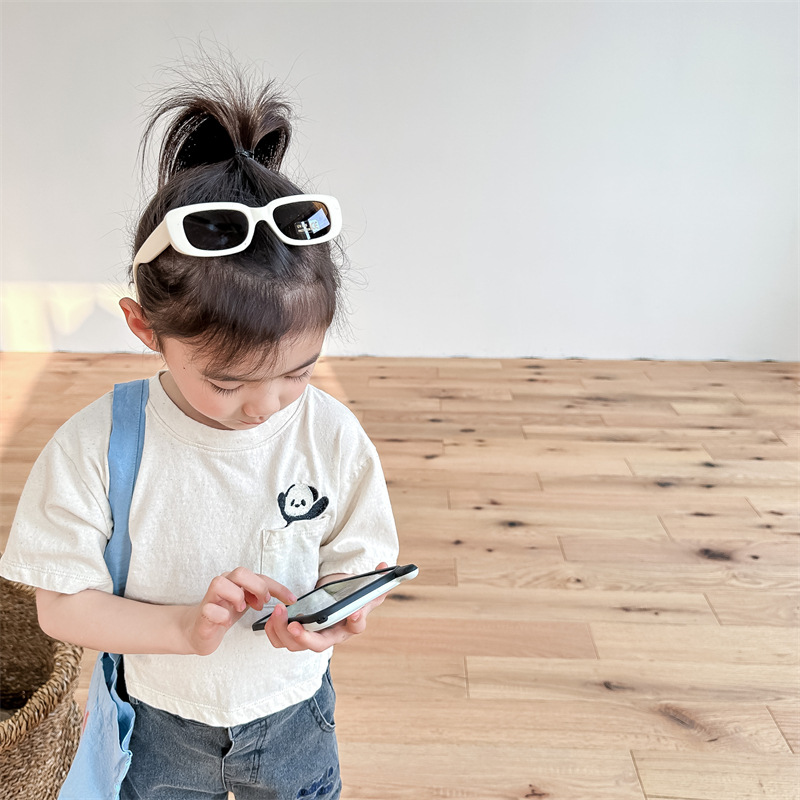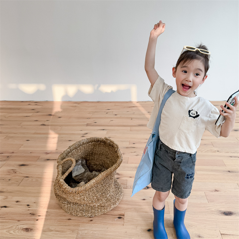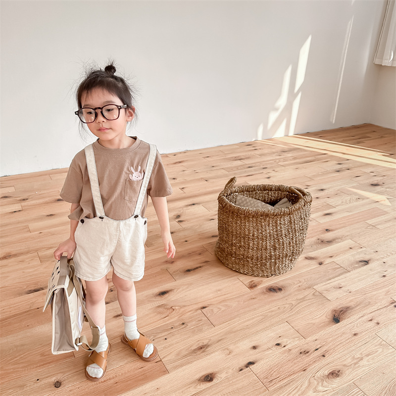 2026 아동복 여름 한국 스타일 린넨 면 만화 자수 반팔 티셔츠 여아 남아 베이직 티셔츠 123210