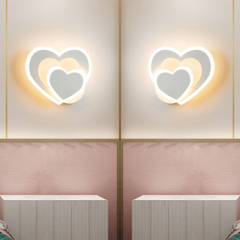 LED 하트 모양의 간단한 포스트 모던 북유럽 벽 램프 2 층 사랑 창조적 인 침실 거실 거리 배경 벽 침대 옆 램프