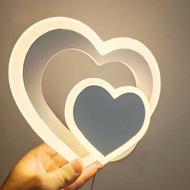 LED 하트 모양의 간단한 포스트 모던 북유럽 벽 램프 2 층 사랑 창조적 인 침실 거실 거리 배경 벽 침대 옆 램프스토어 가기