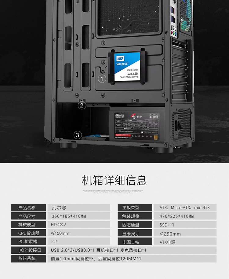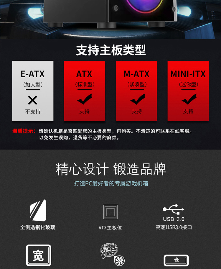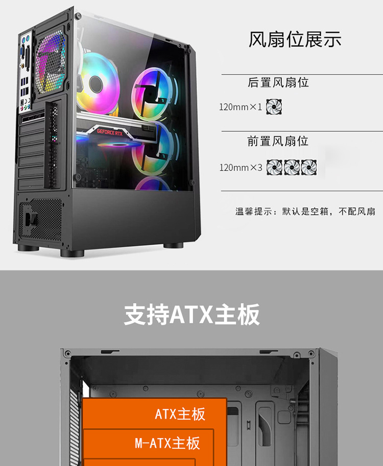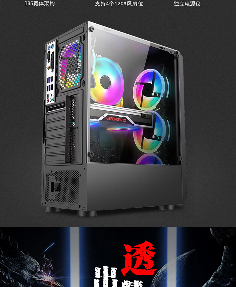 신구멍1810 데스크탑 컴퓨터 케이스 ATX 풀 사이드 투명 강화유리 가정용 게임용 케이스 메인보드스토어 가기