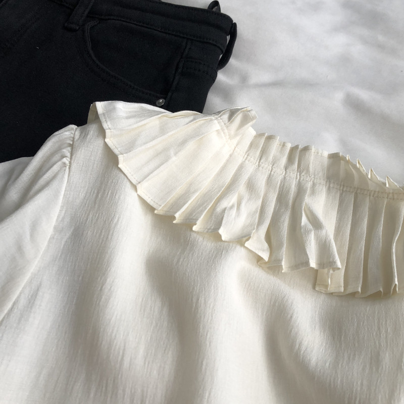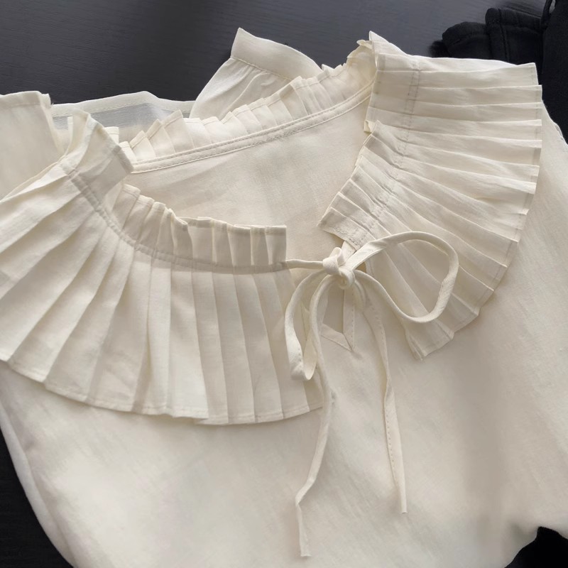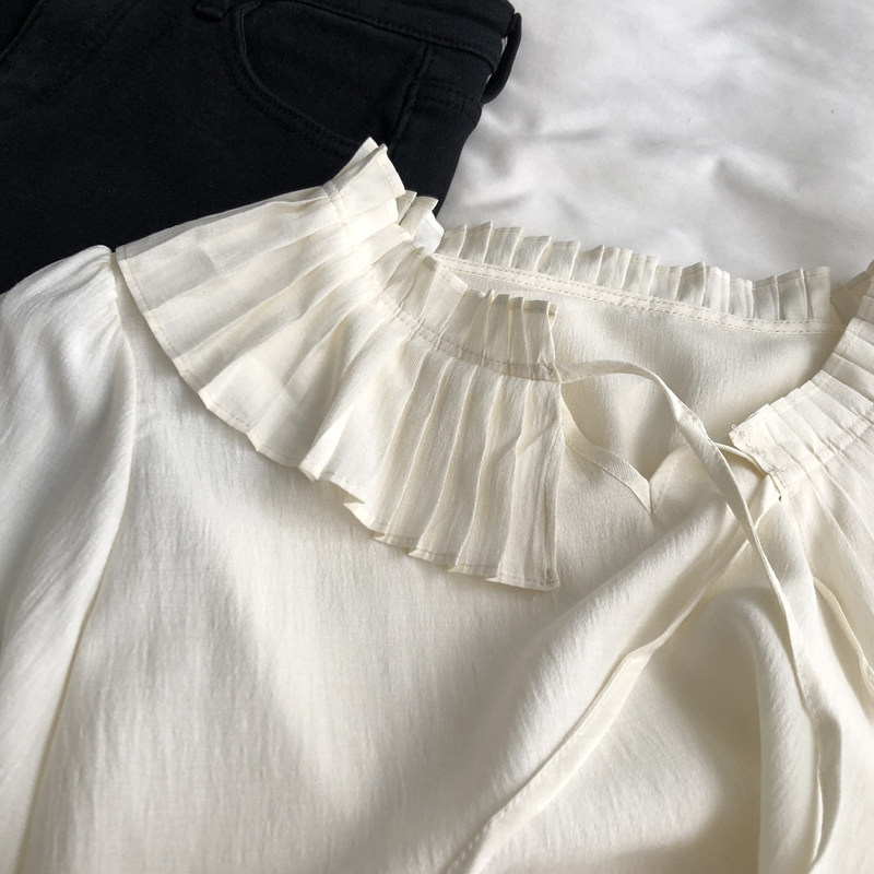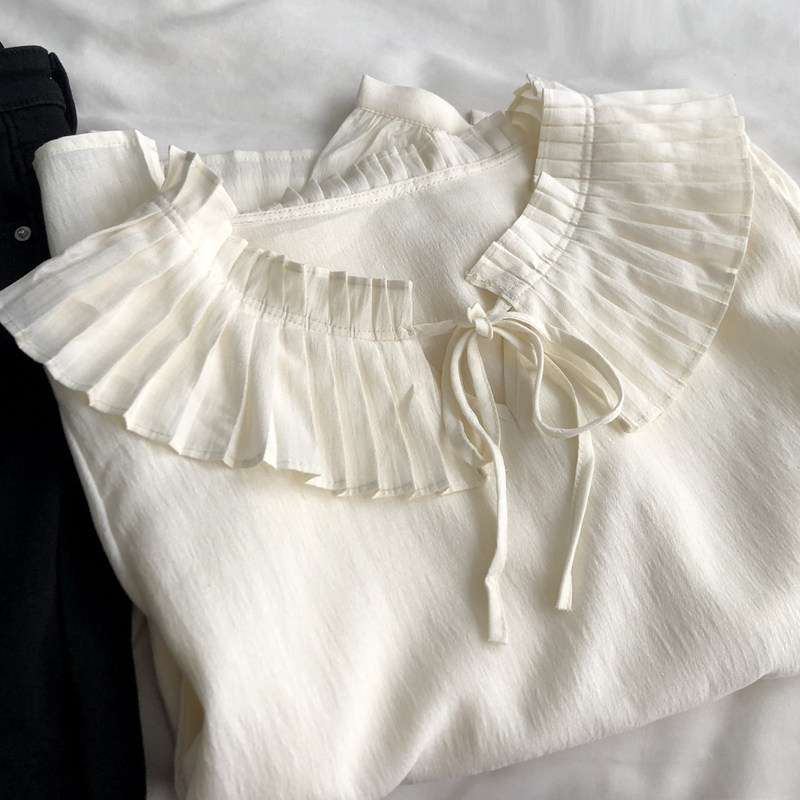 프랑스 스타일 부드러운 스타일 달콤한 피아노 주름 레이스 칼라 레이스 업 인형 셔츠 느슨한 긴 소매 쉬폰 요정 탑 봄