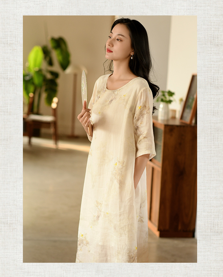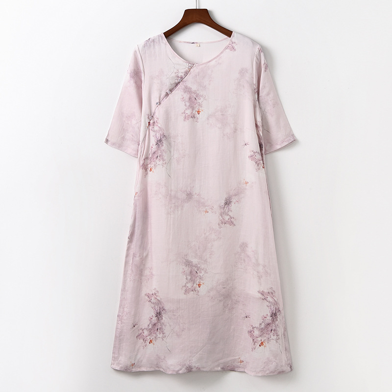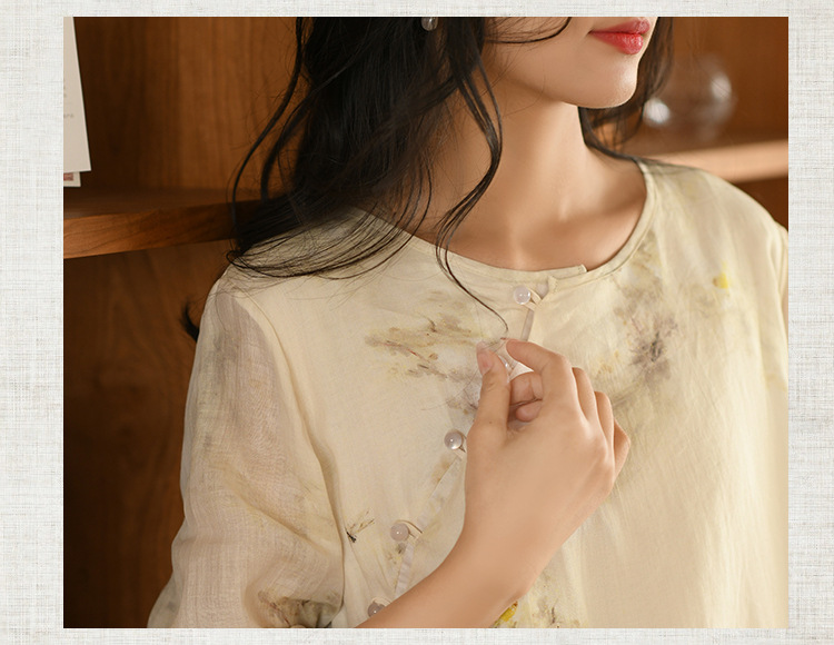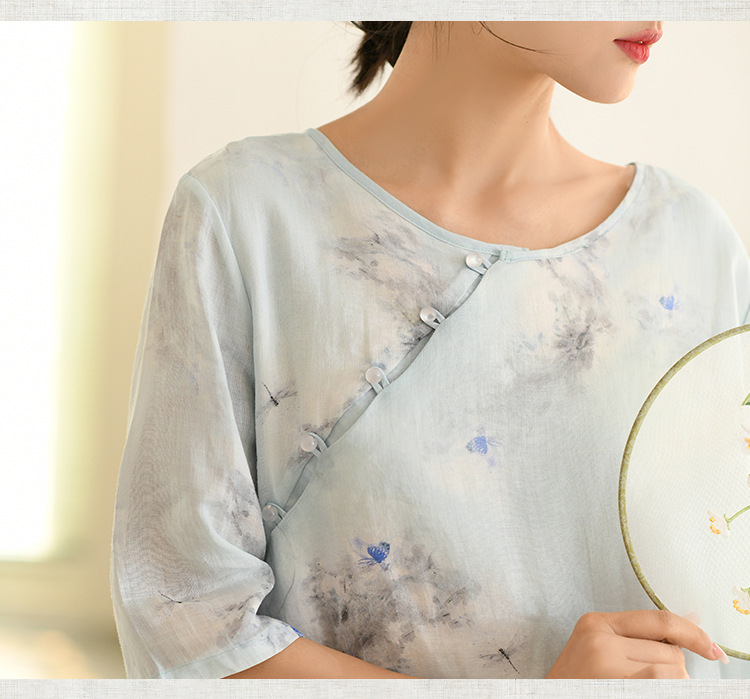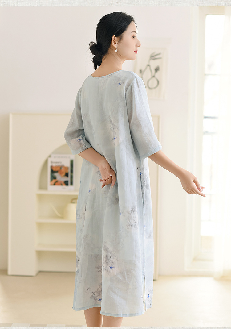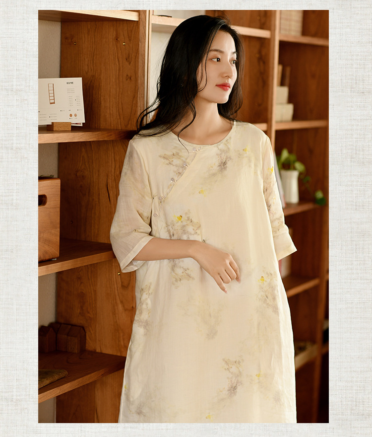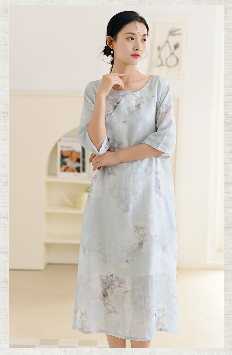 면과 린넨 여성 의류 2023 봄과 여름 새로운 빈티지 원피스 새로운 중국 라미 수정 치파오 중국 스타일 차 의류스토어 가기