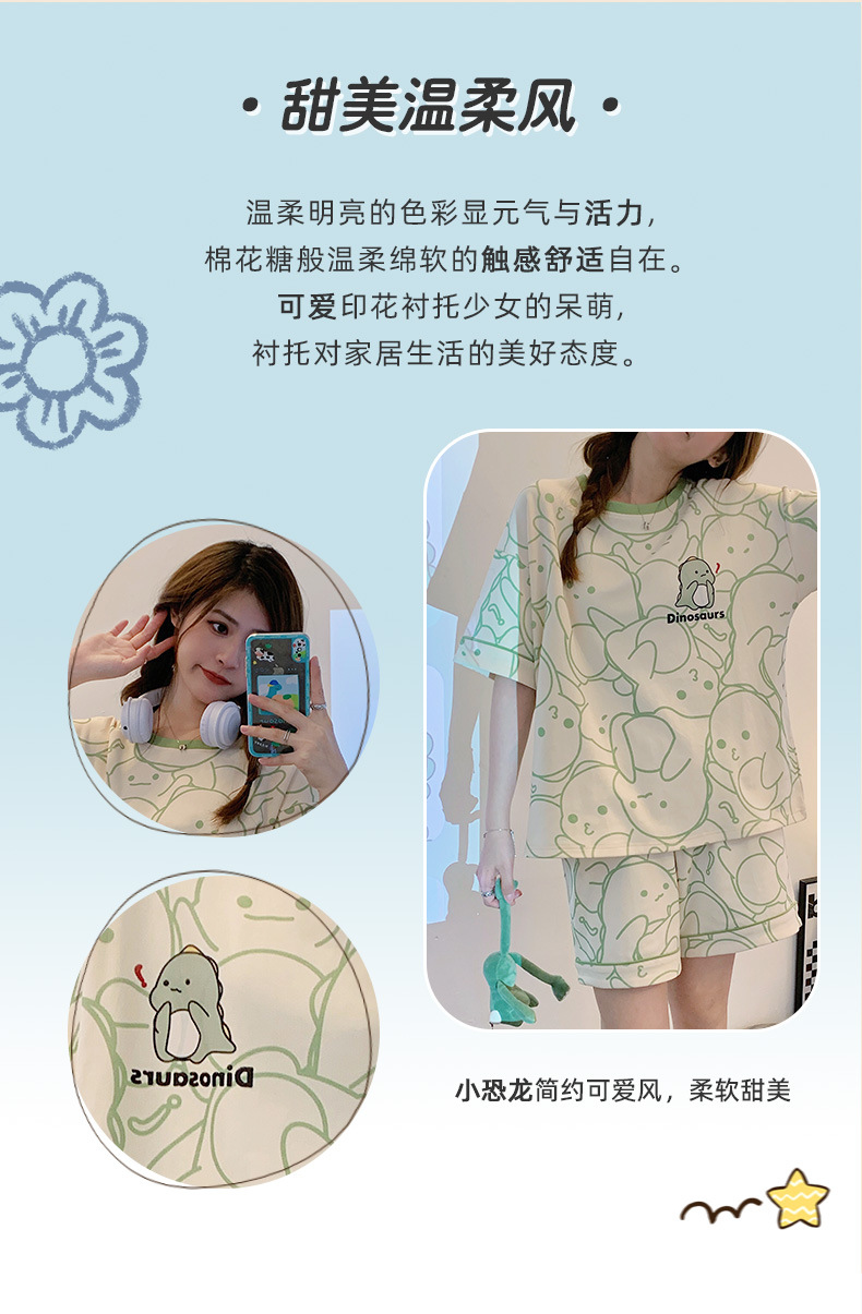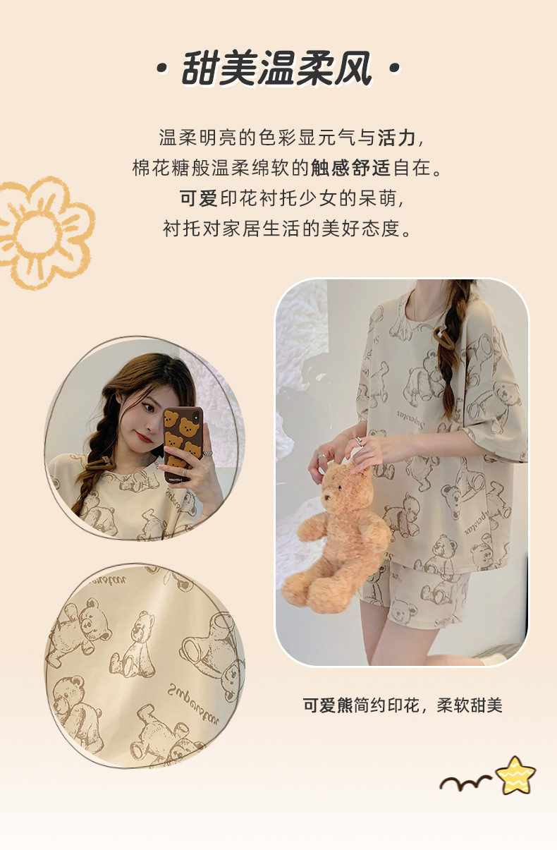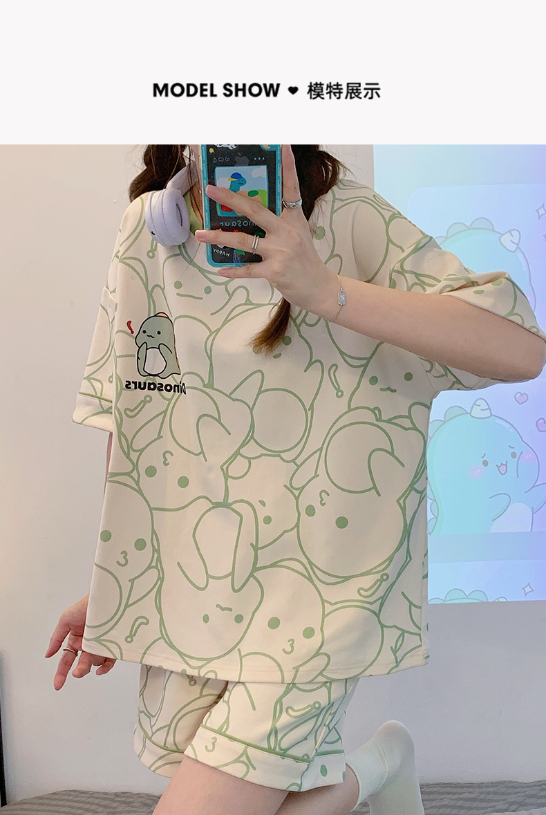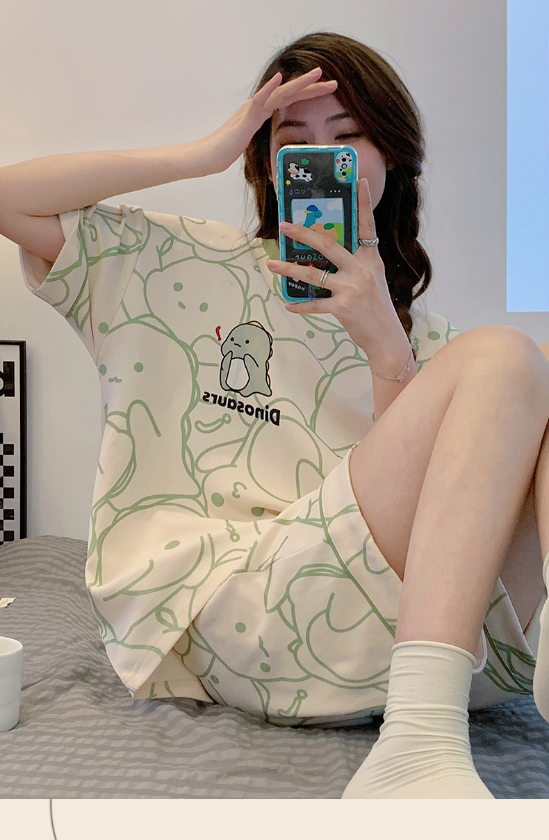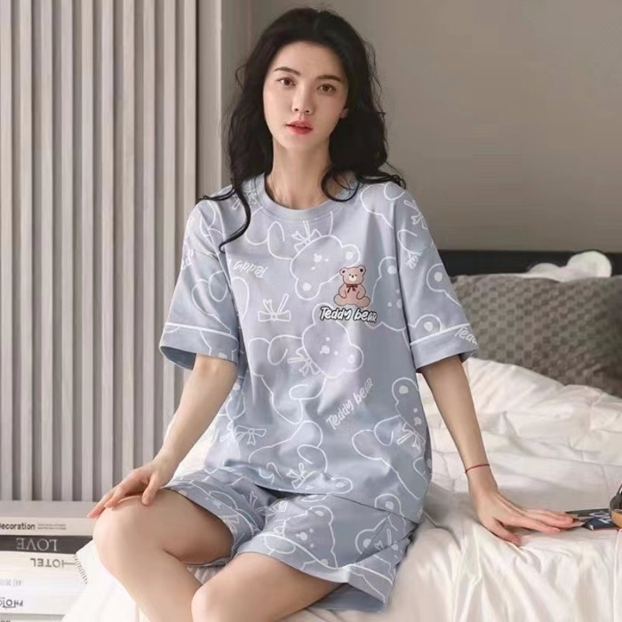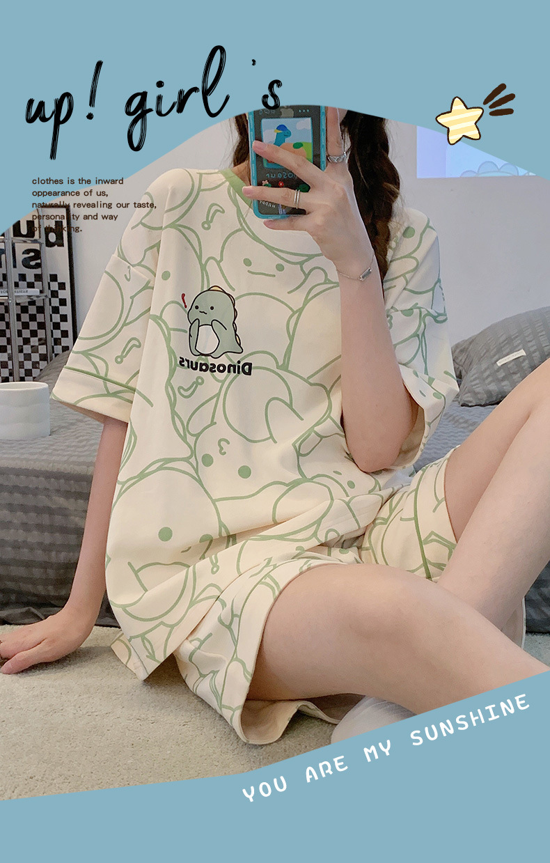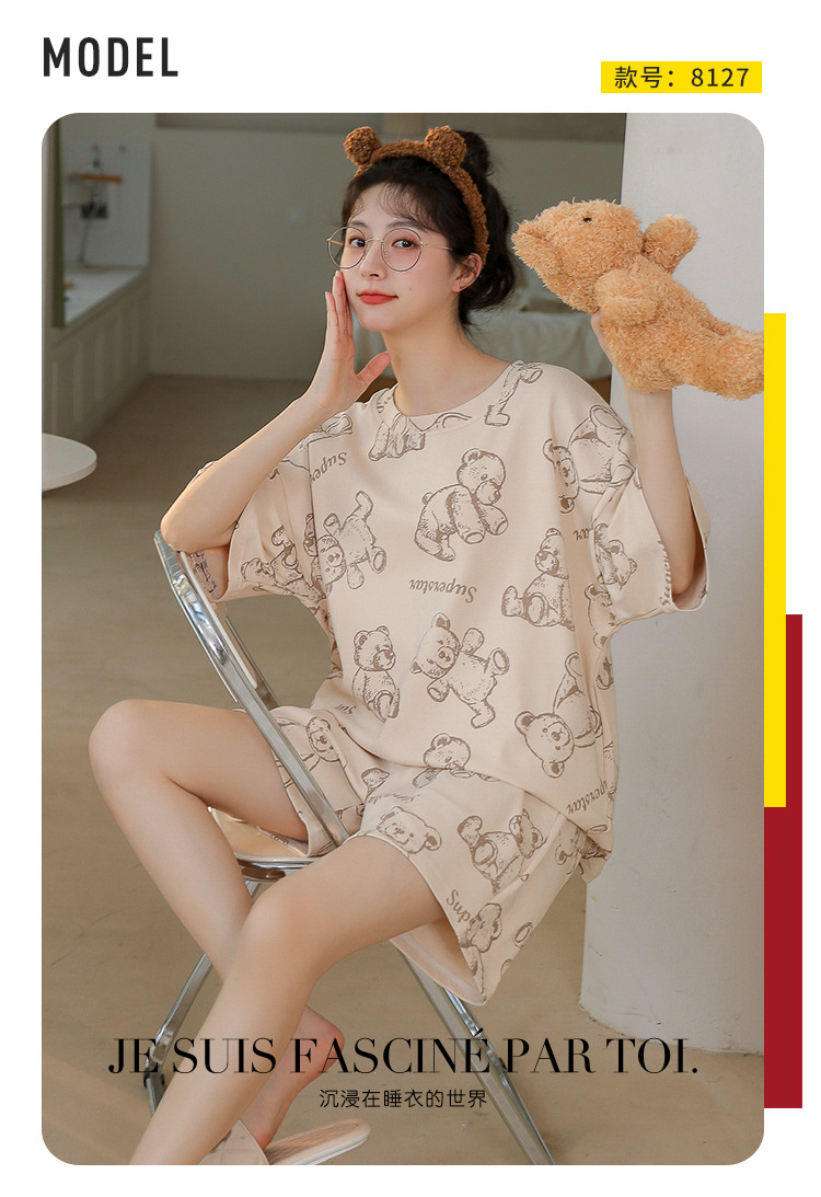 대외 무역 국경 도매 2025 새로운 파자마 여성 여름 얇은 반팔 귀여운 외부 착용 홈 착용 우유스토어 가기