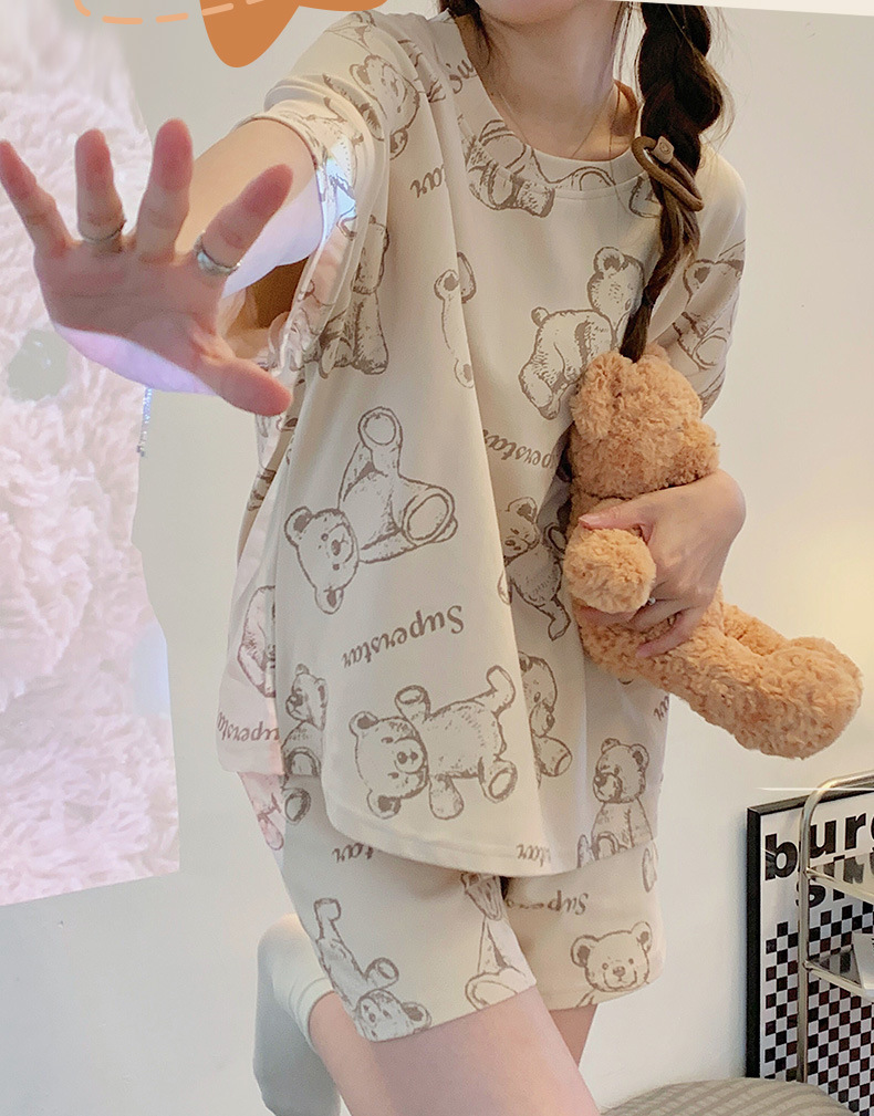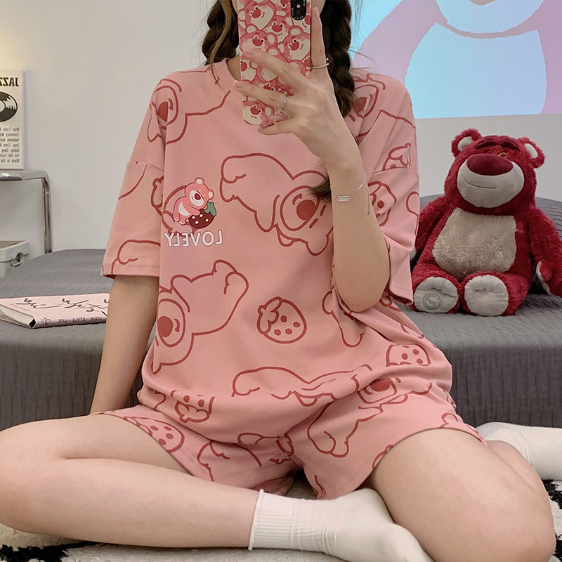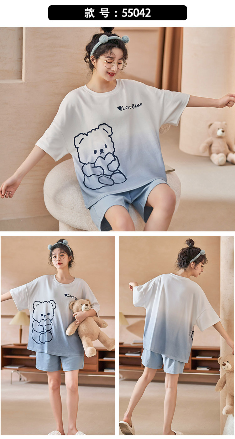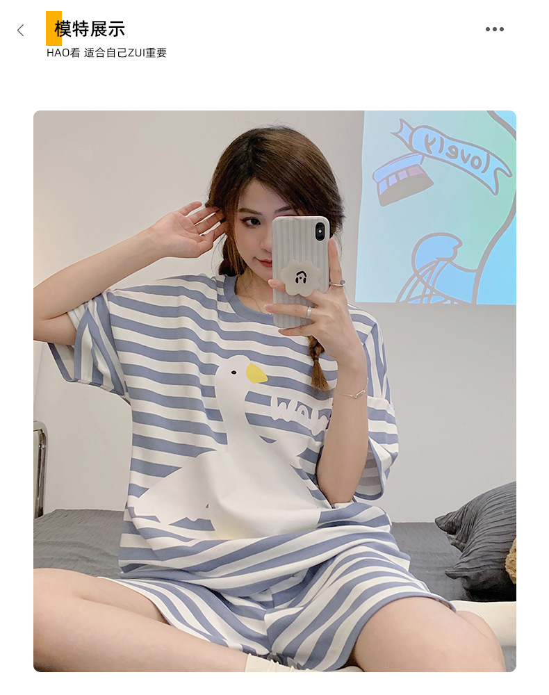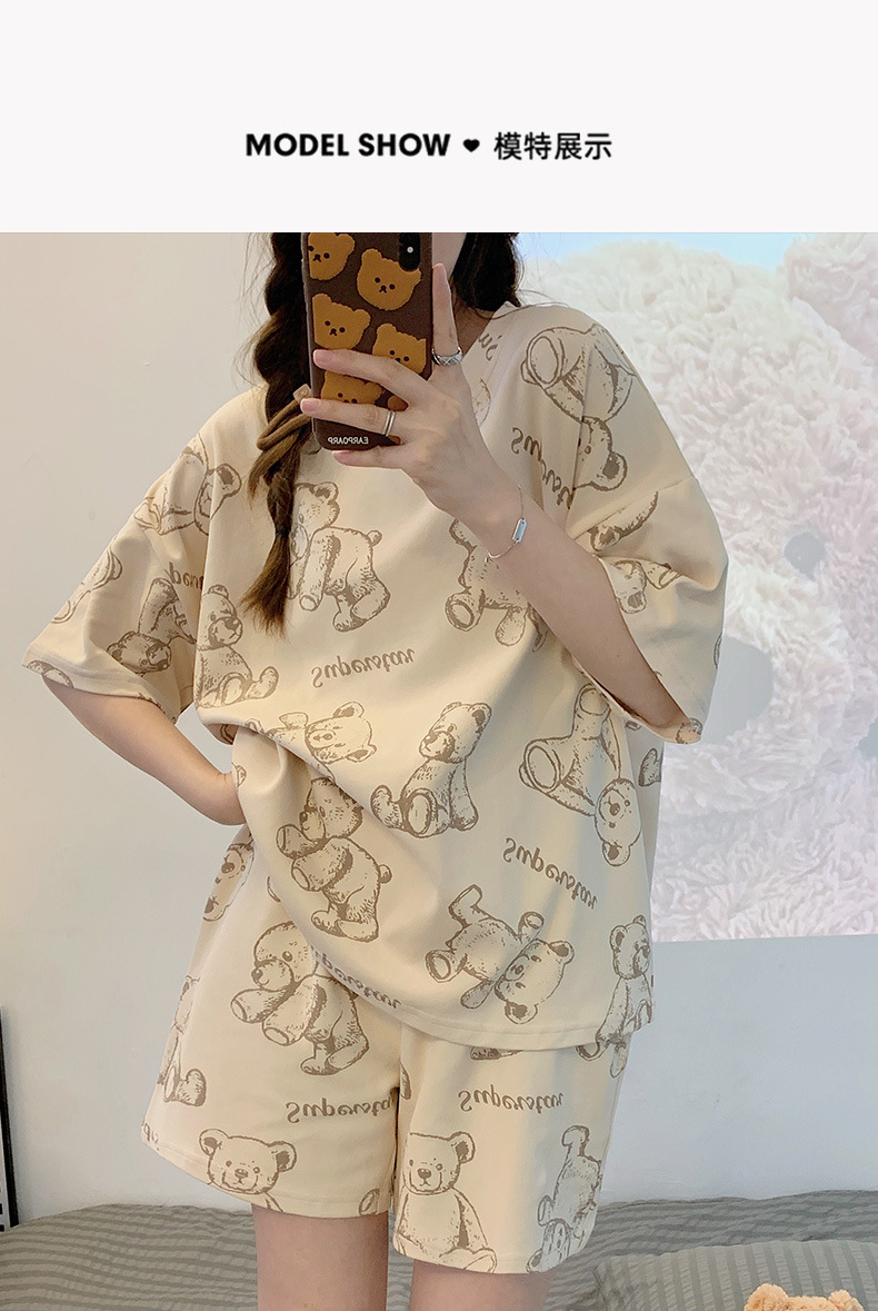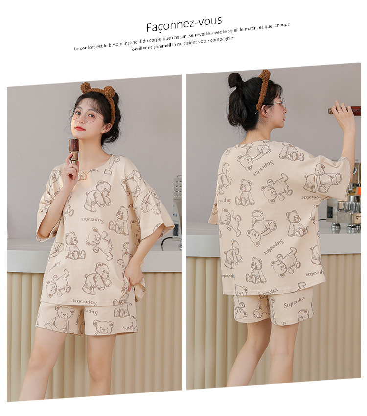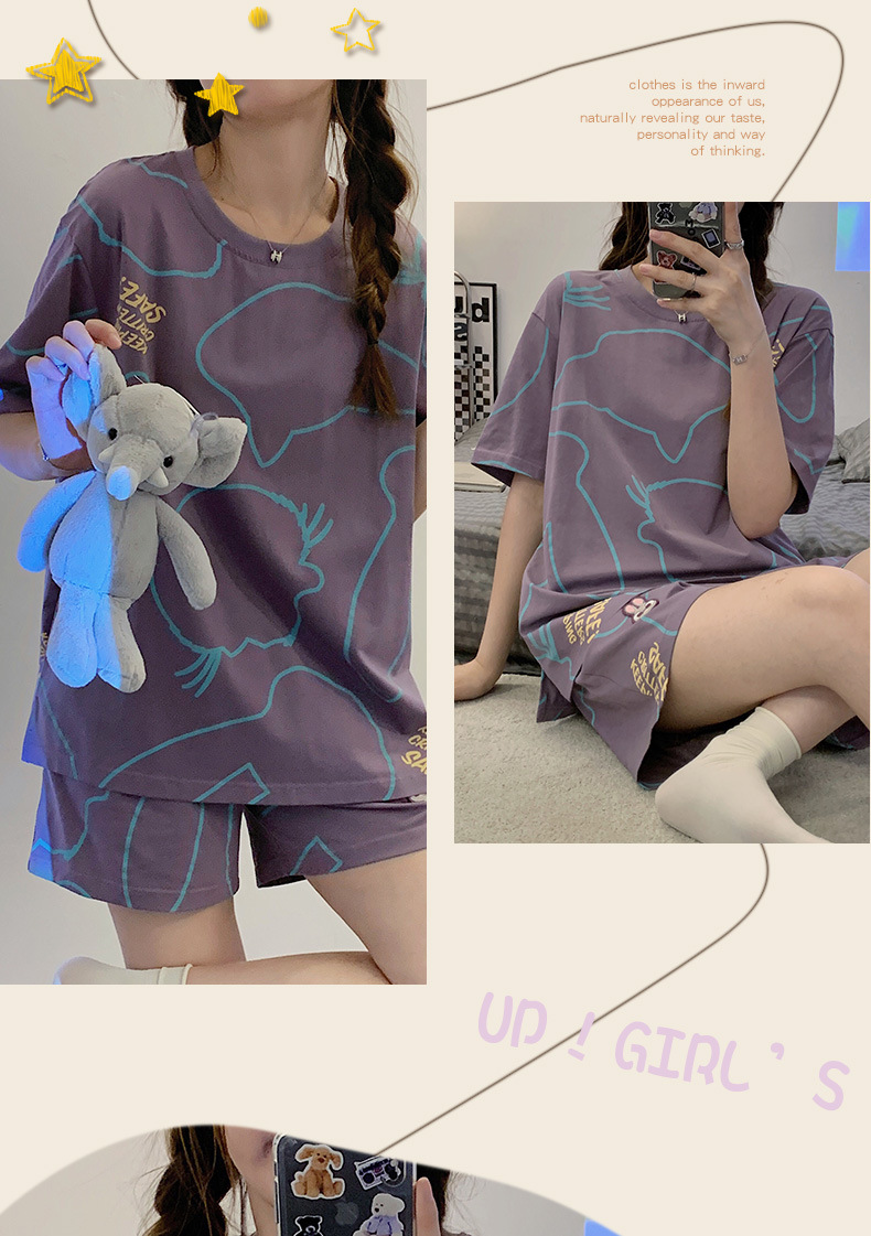 대외 무역 국경 도매 2025 새로운 파자마 여성 여름 얇은 반팔 귀여운 외부 착용 홈 착용 우유스토어 가기
