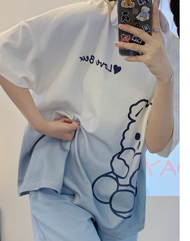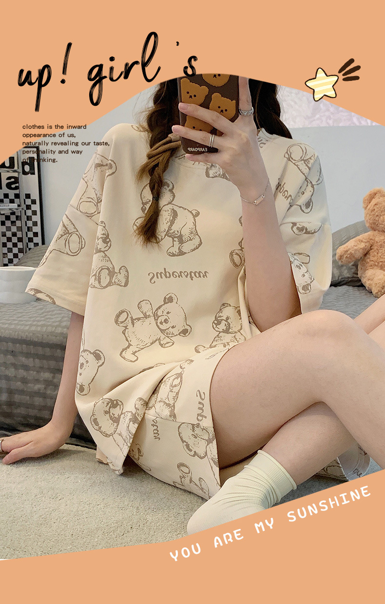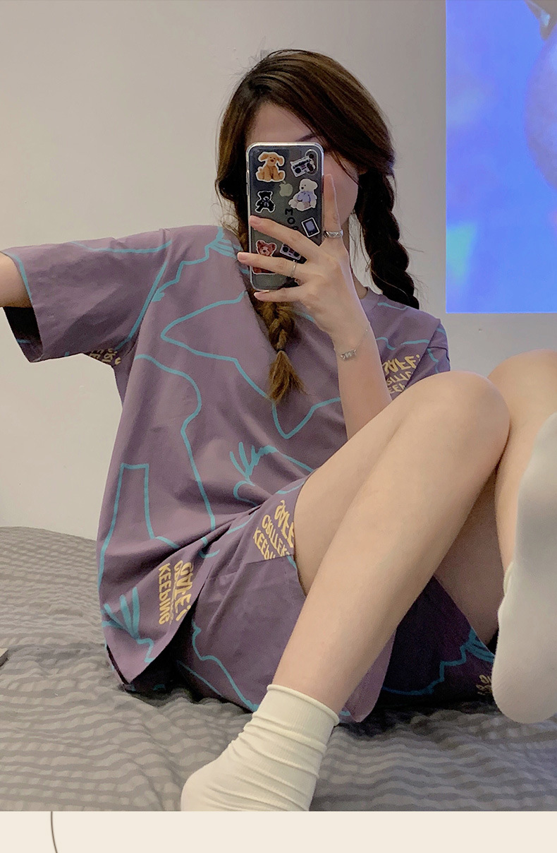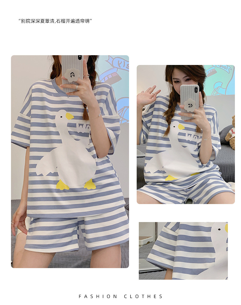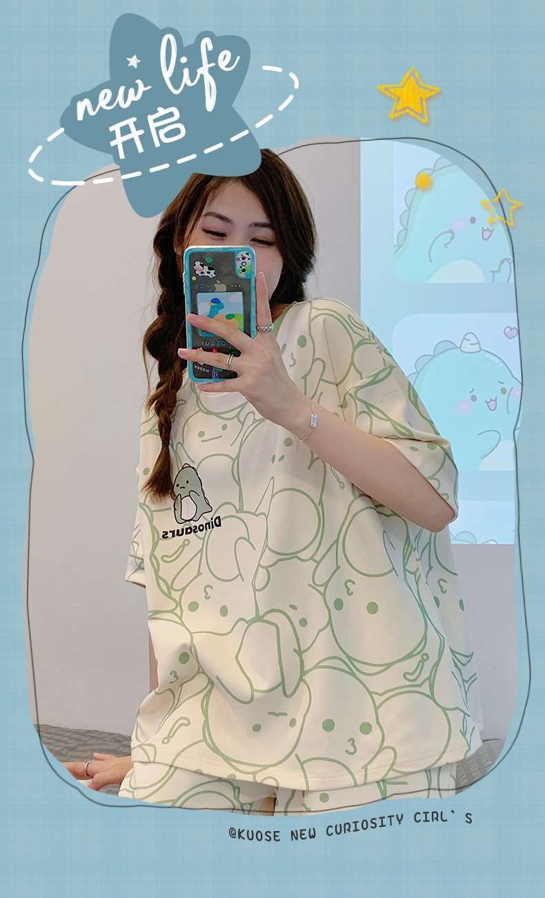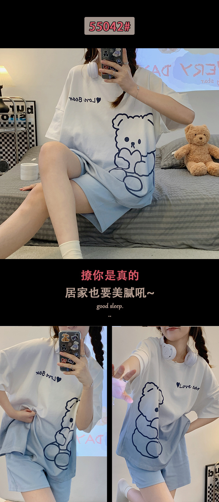 대외 무역 국경 도매 2025 새로운 파자마 여성 여름 얇은 반팔 귀여운 외부 착용 홈 착용 우유스토어 가기