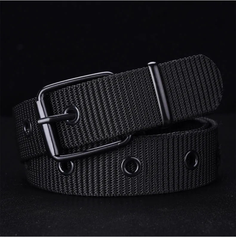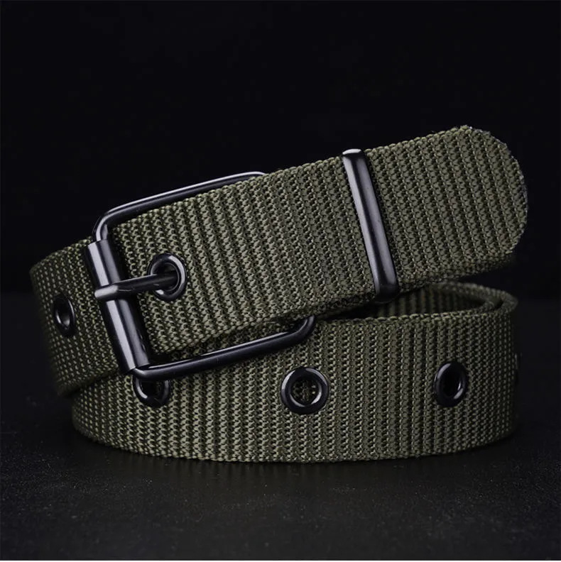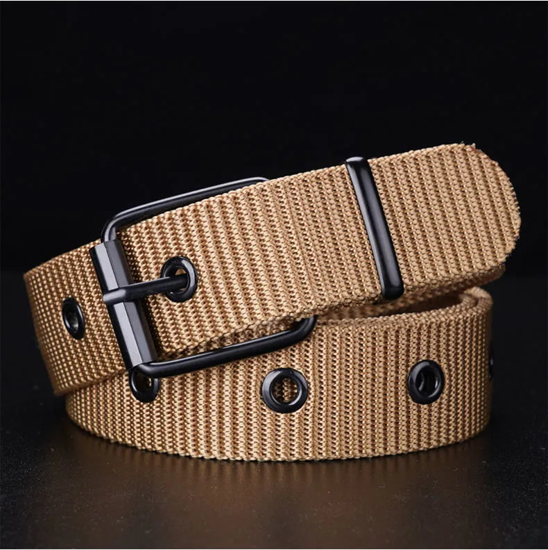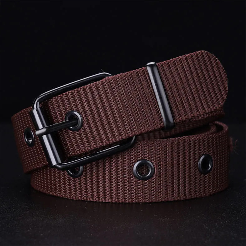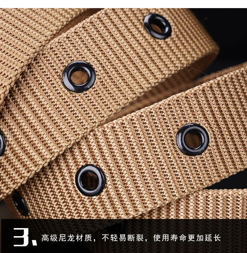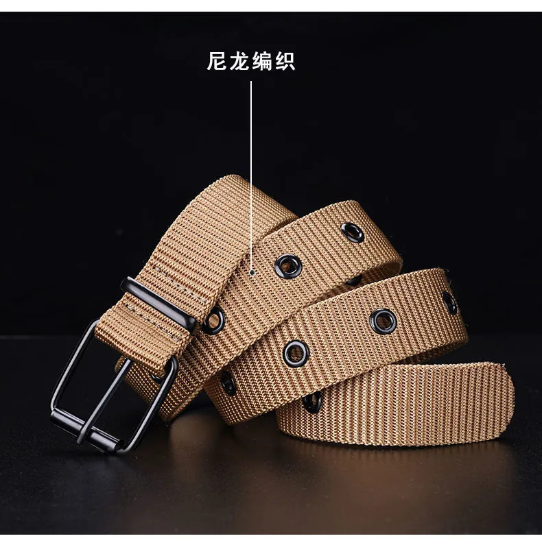 다공성 바늘 버클 캔버스 벨트 남성용 유행 모든 경기 벨트 학생 청소년 군사 훈련 확장 청바지