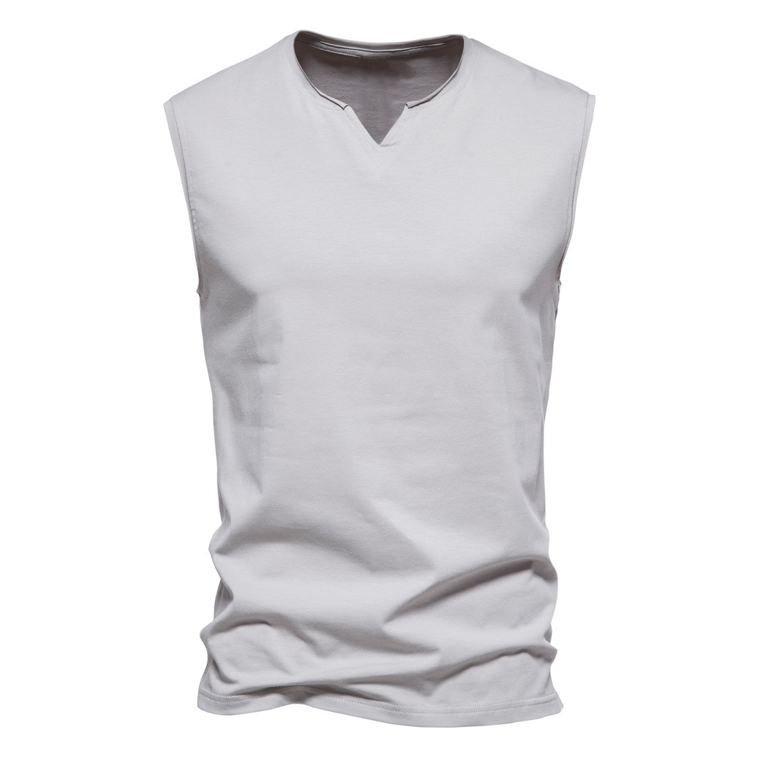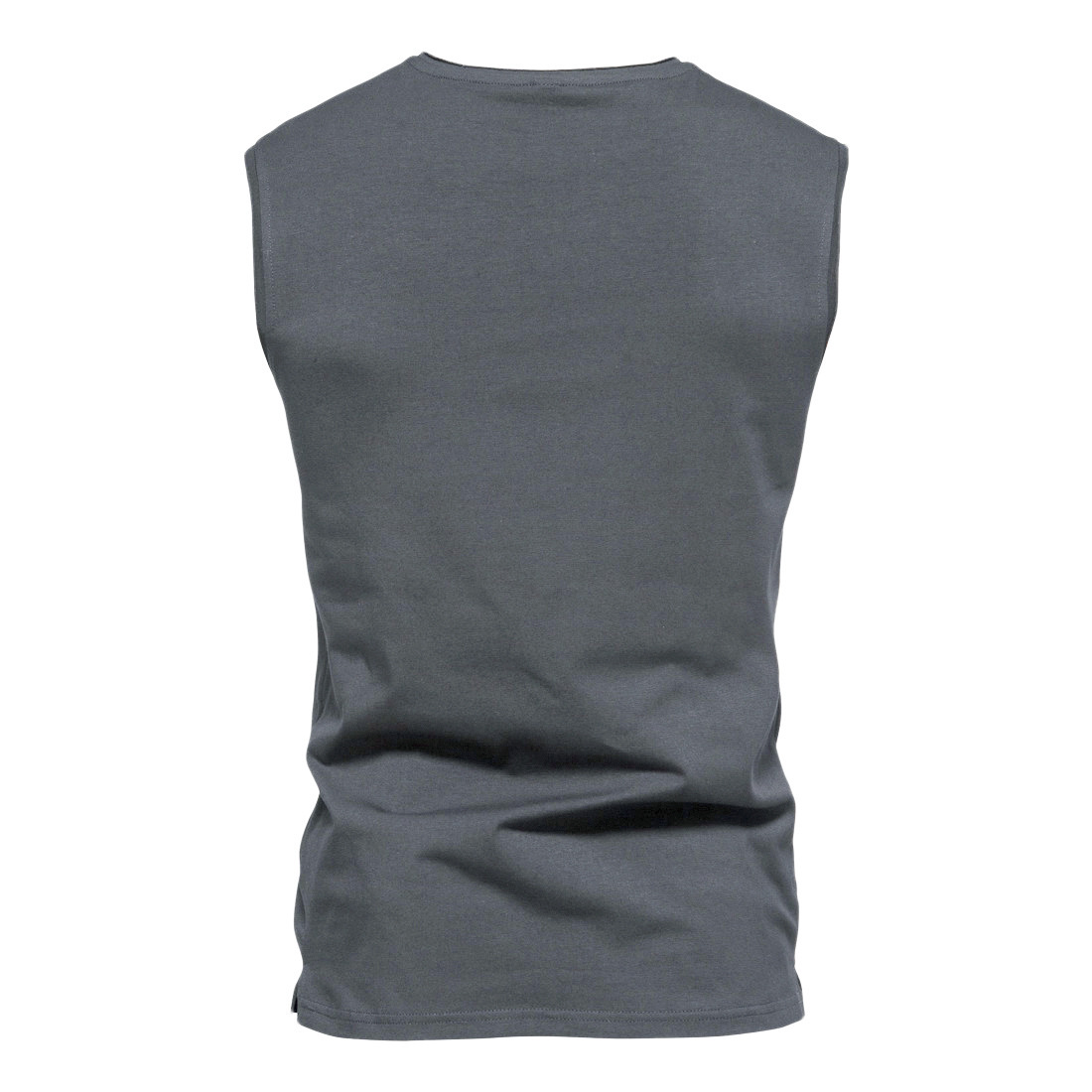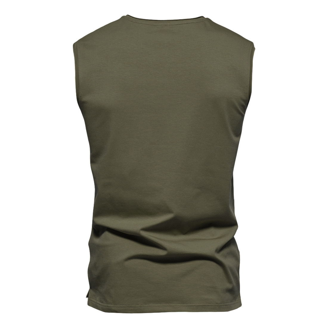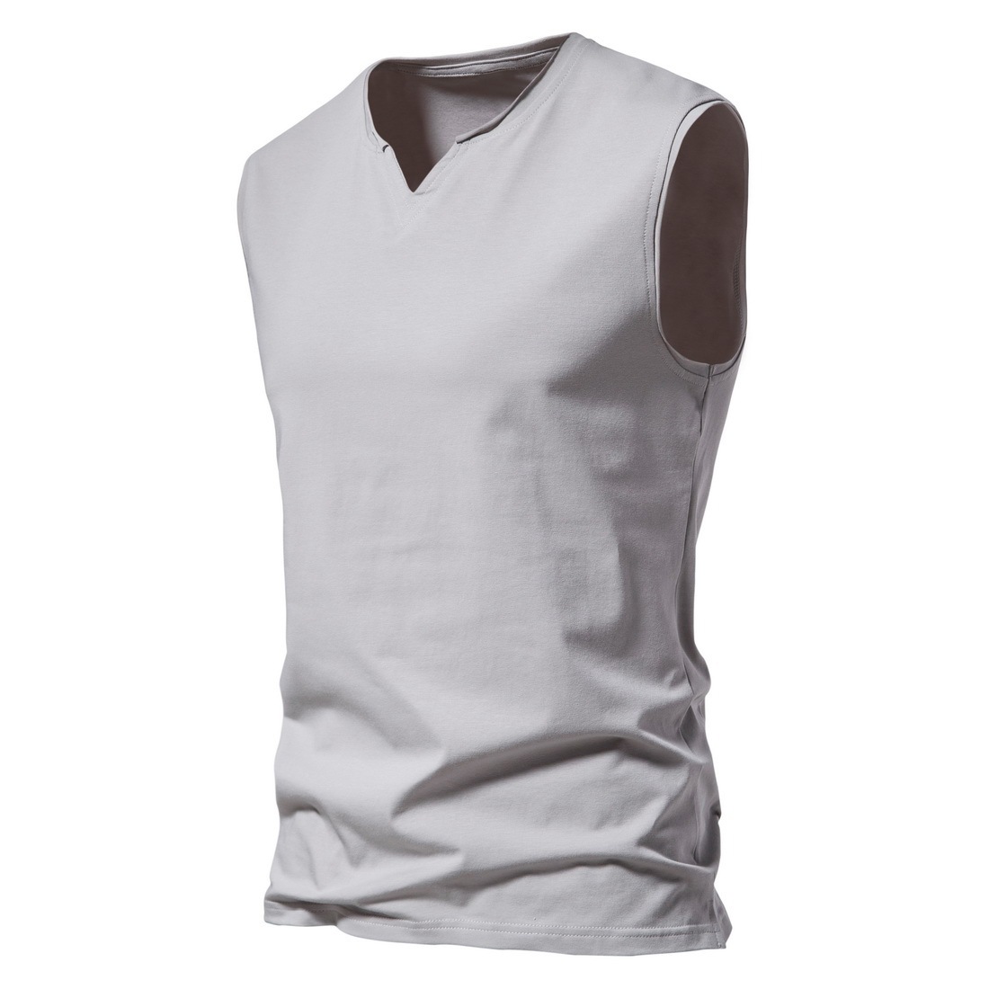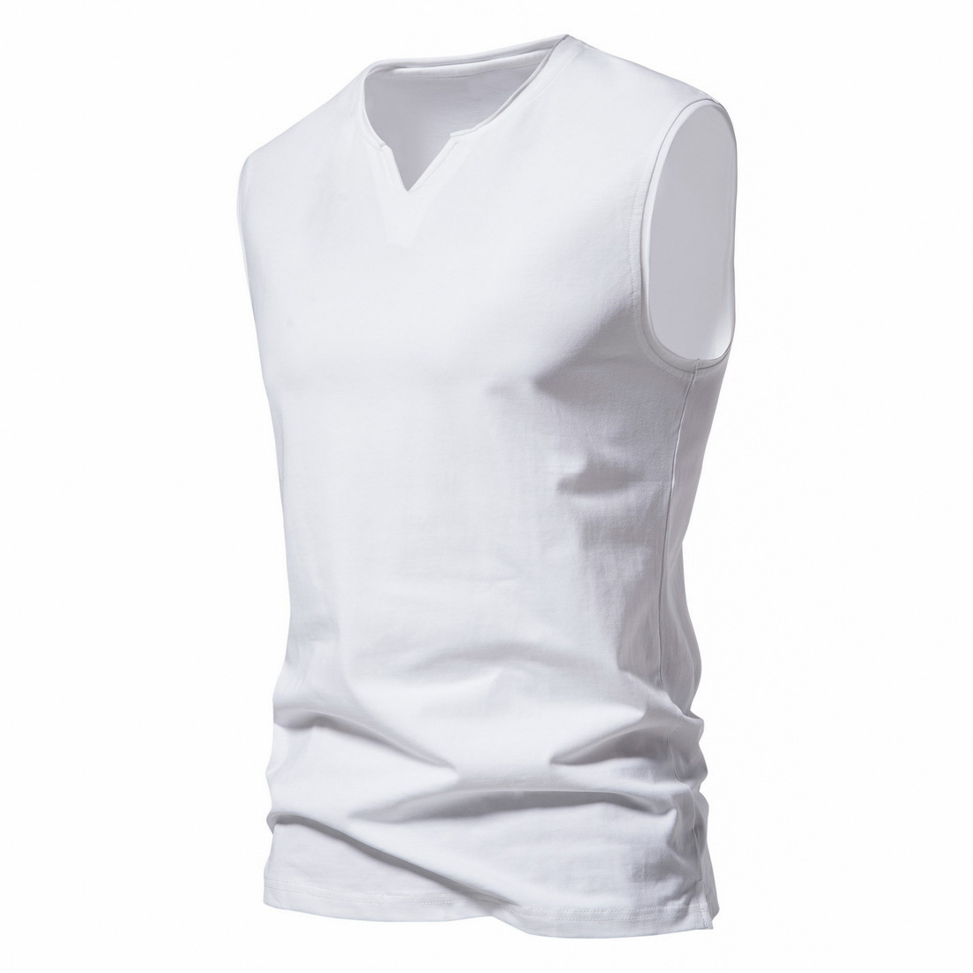 2023 대외 무역 새로운 여름 남성 패션 조끼 헨리 칼라 민소매 티셔츠 남성용 면베이스 스포츠 양복 조끼