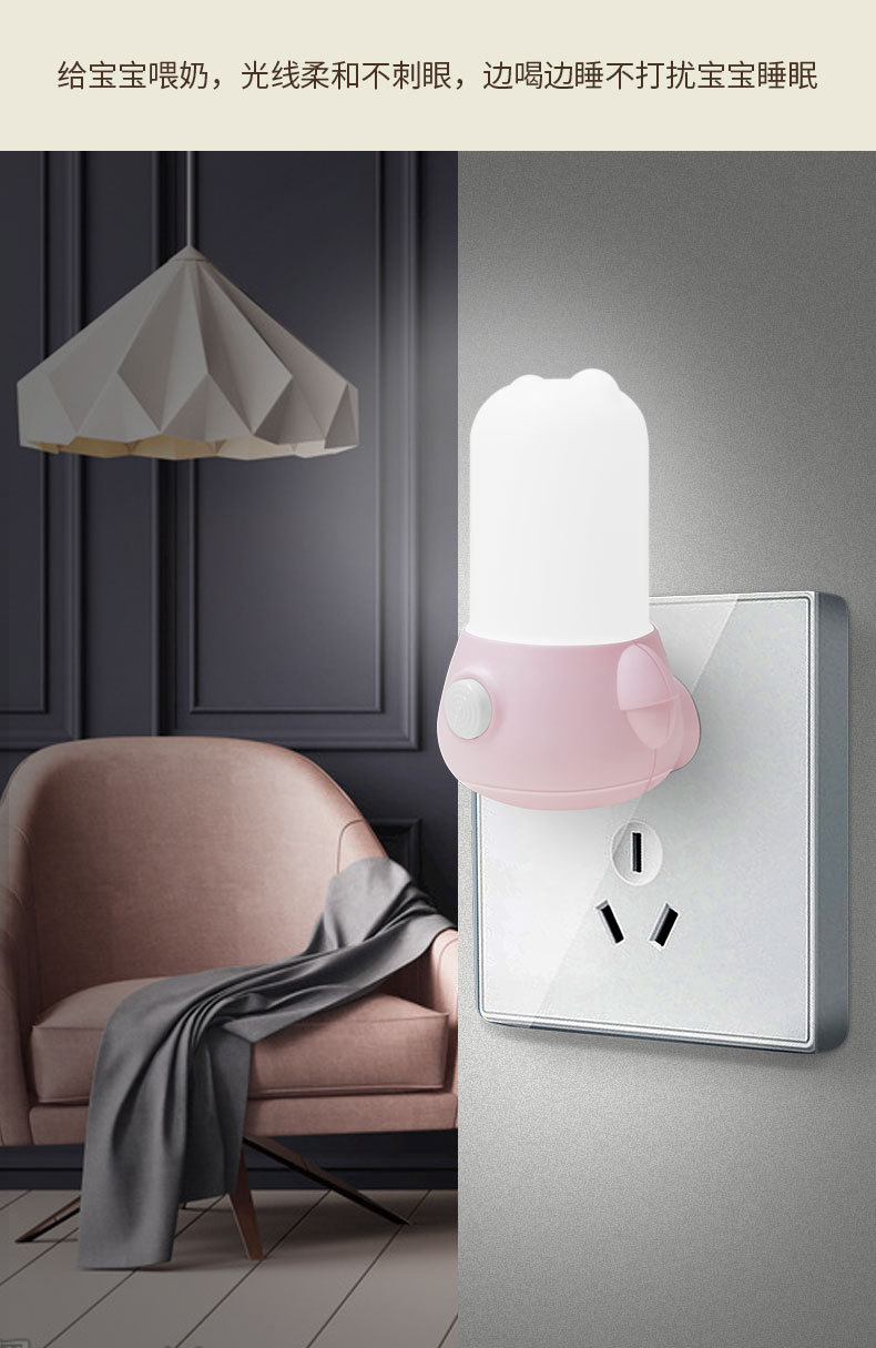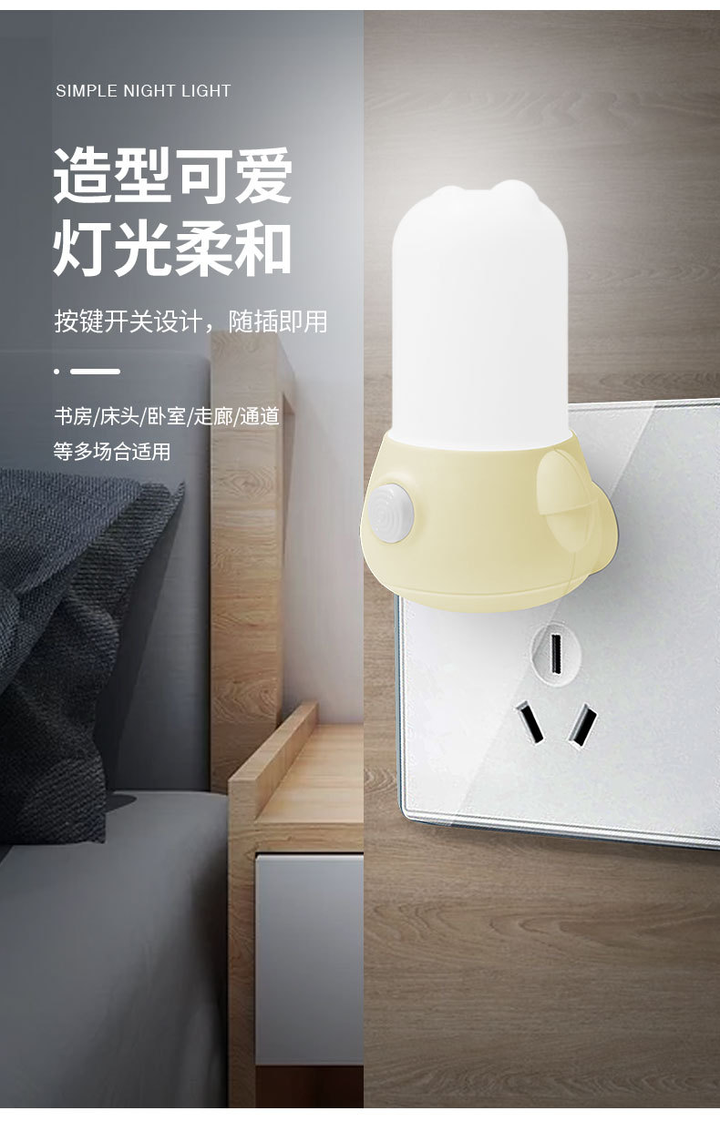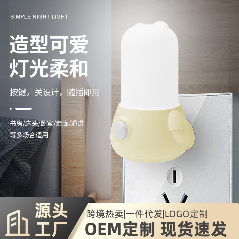코리 개인 모델 led 스위치 야간 조명 침실 침대 옆 빛 분위기 조명 밤 귀여운 소켓 선물 로고