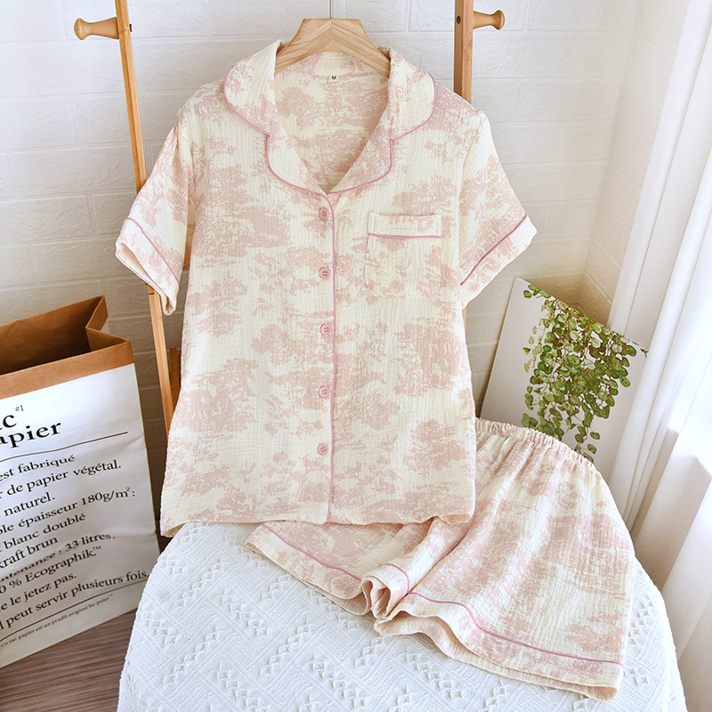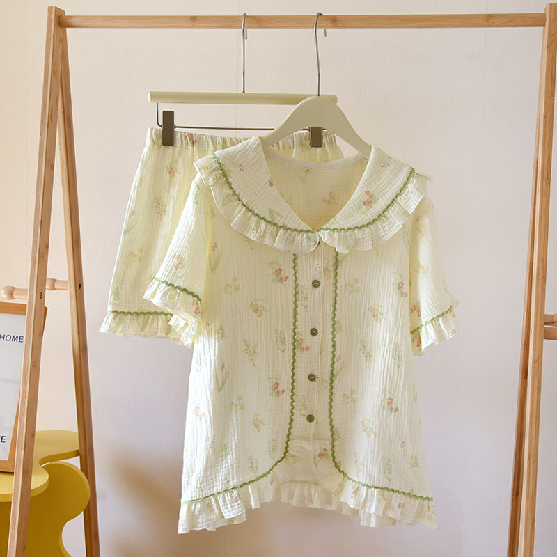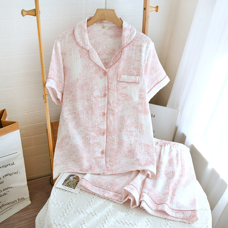 면 짧은 소매 반바지 여자의 세트 봄과 여름 얇은 플러스 사이즈 면 가정 옷 느슨한 통기성 땀 흡수 통기성