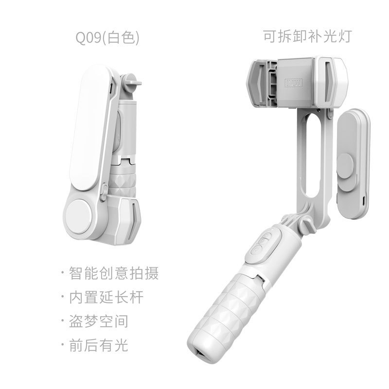 Q09 自带可拆补光灯 稳拍器 蓝牙 自拍杆三脚架 |