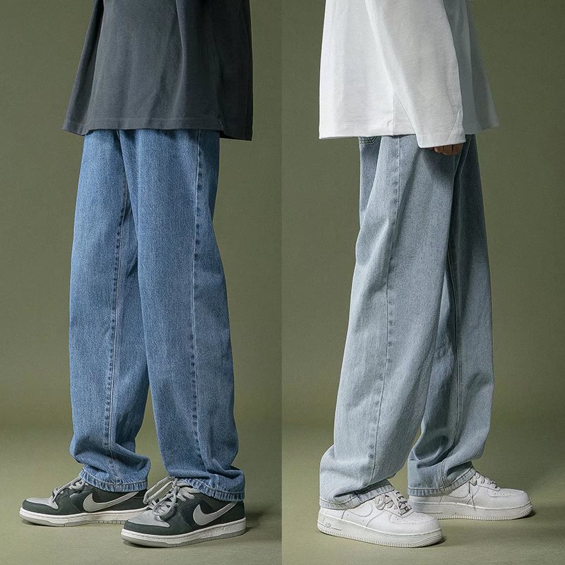 펜던트 청바지 남성용 봄과 가을 패션 브랜드 느슨한 스트레이트 와이드 레그 팬츠 2022 새로운 하이 스트리트 캐주얼 팬츠스토어 가기