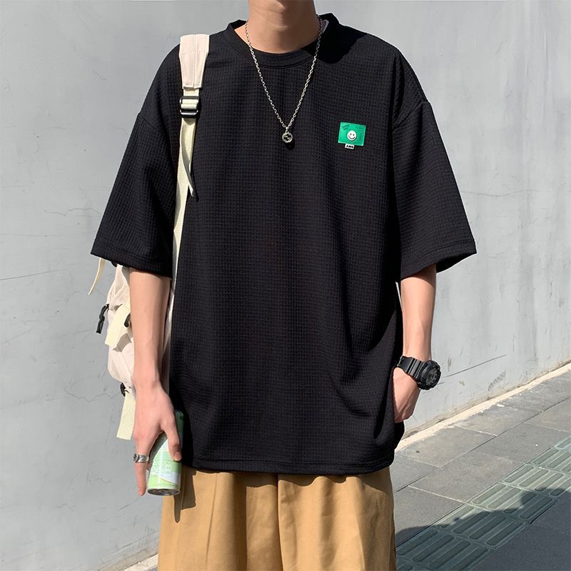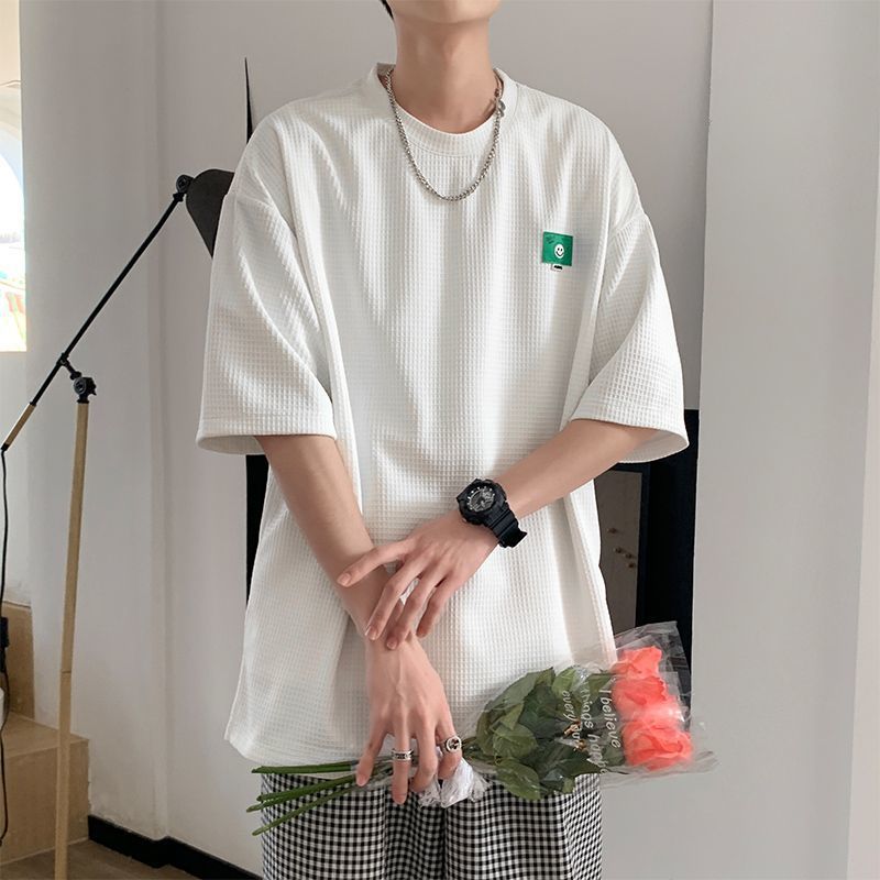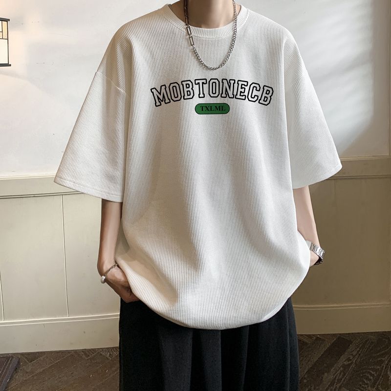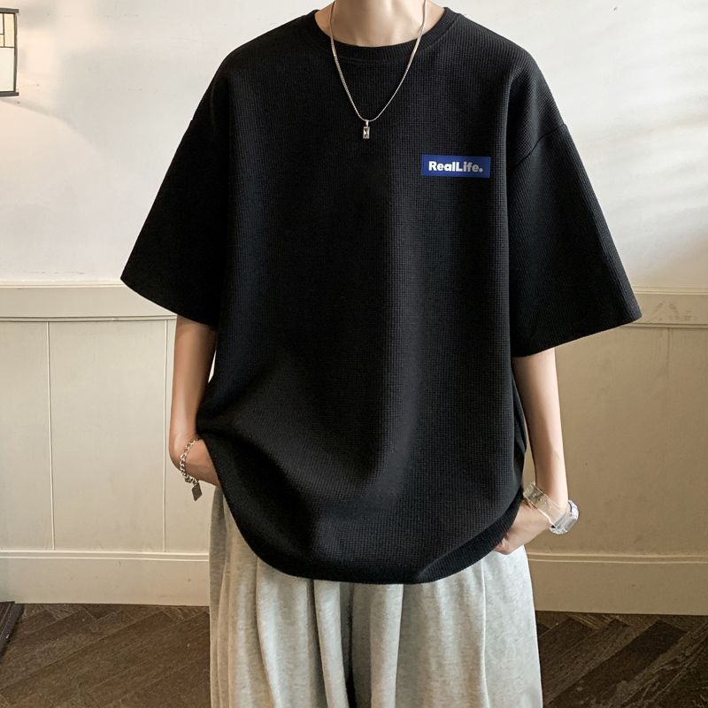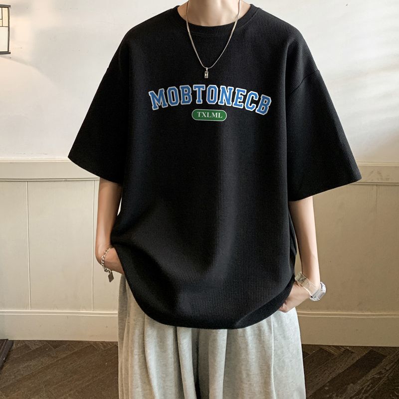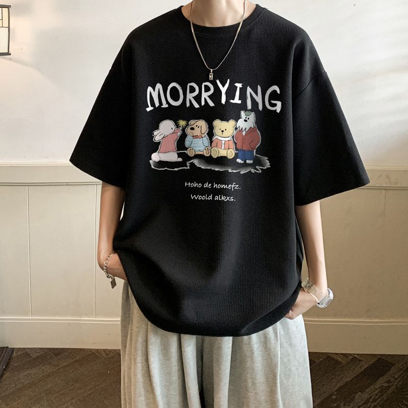 [쉐이크 세대 헤어] 홍콩식 와플 루즈프린트 반팔 티셔츠 남성 반소매 5 소매 티셔츠