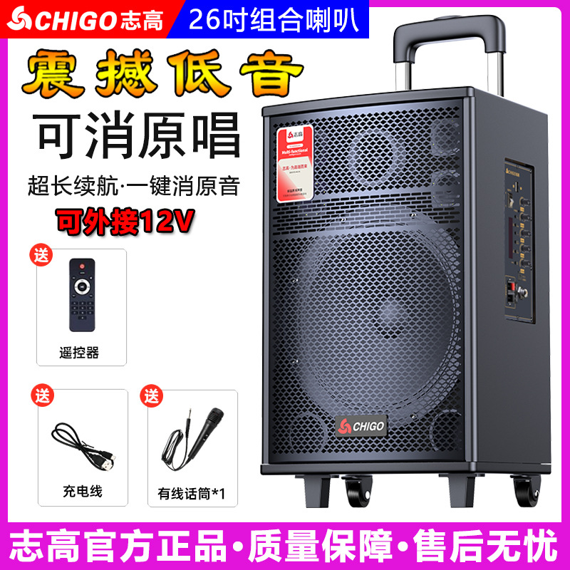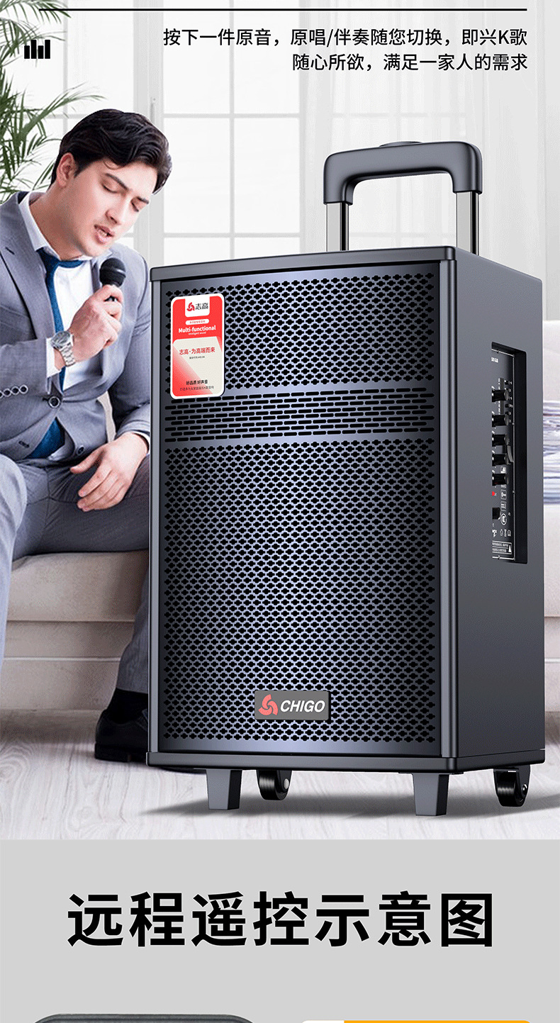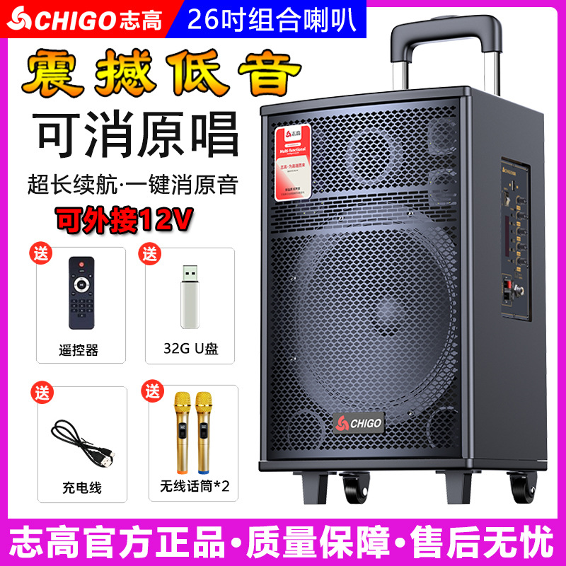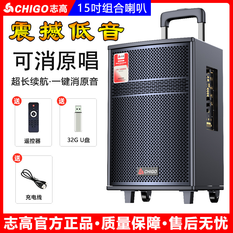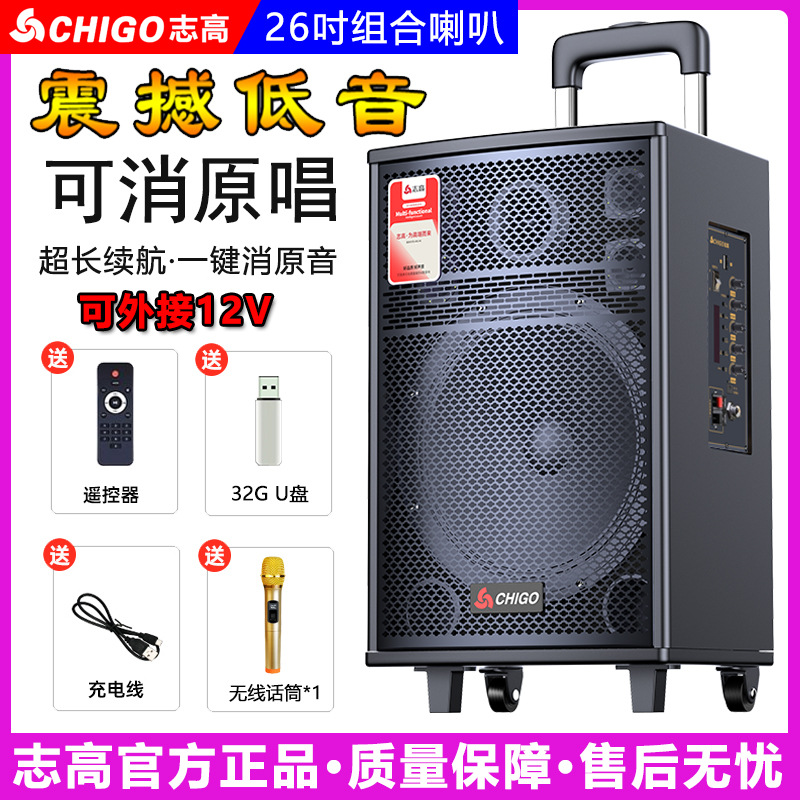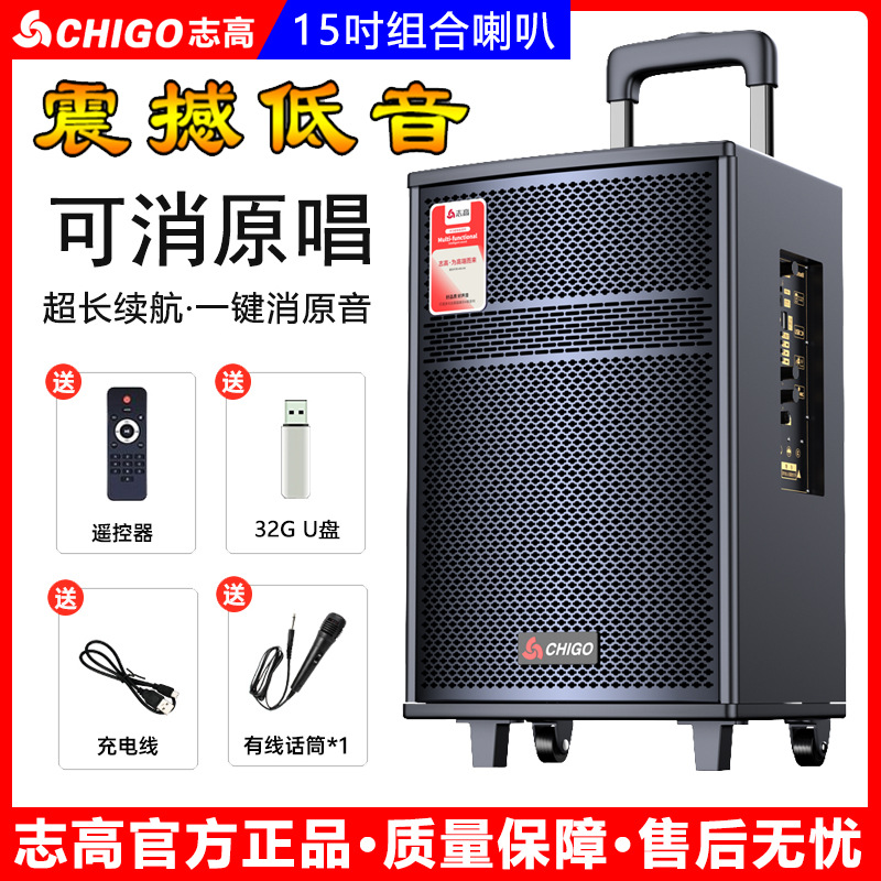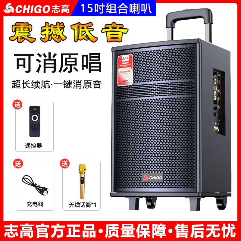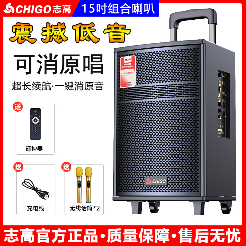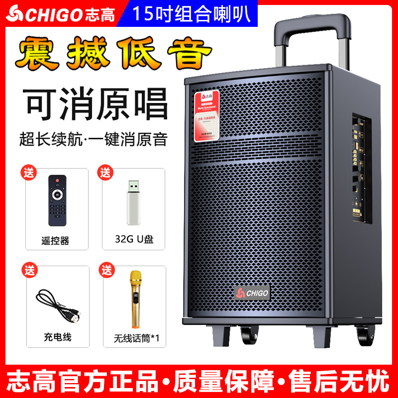 Chigo Square Dance 대용량 무선 블루투스 스피커 홈 가라오케 다기능 야외 고출력 트롤리 스피커