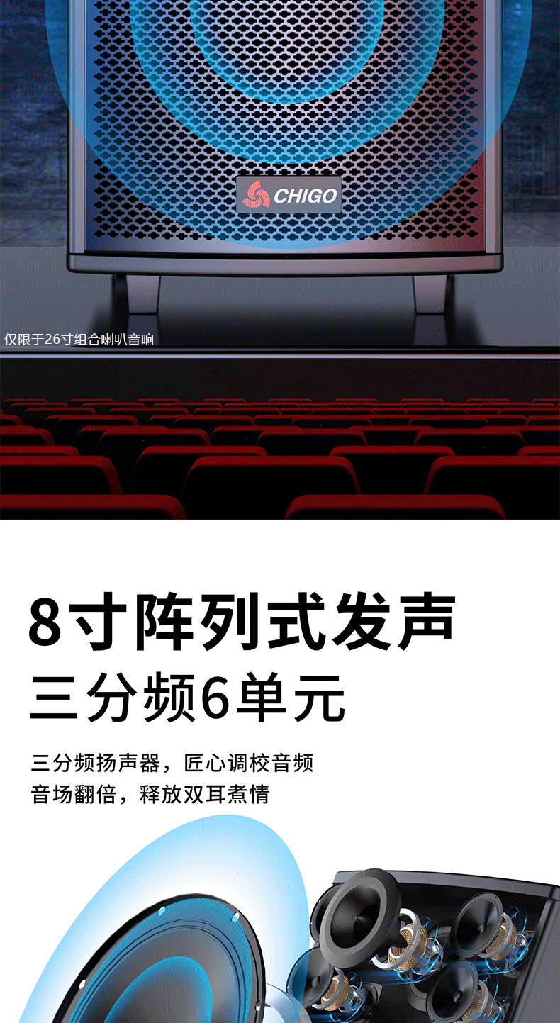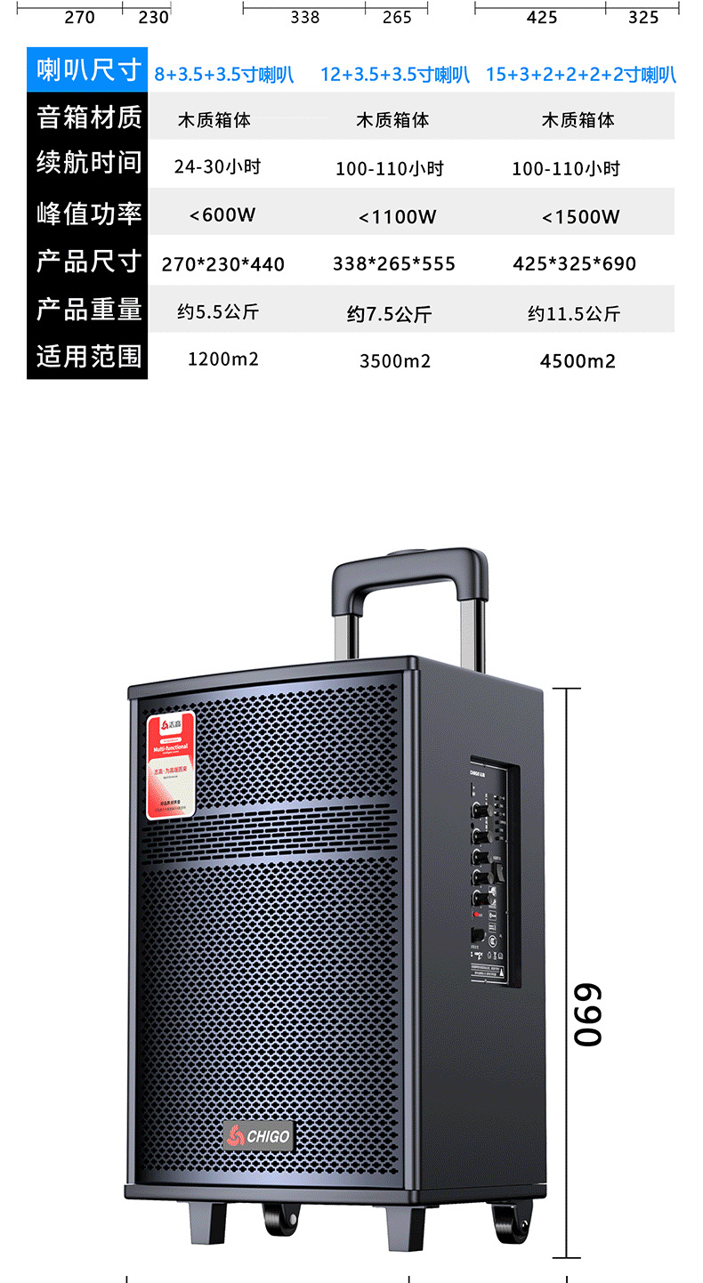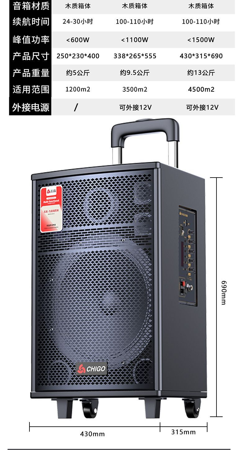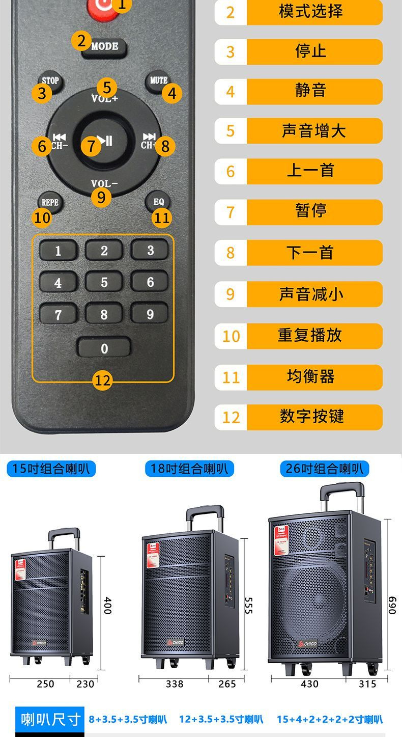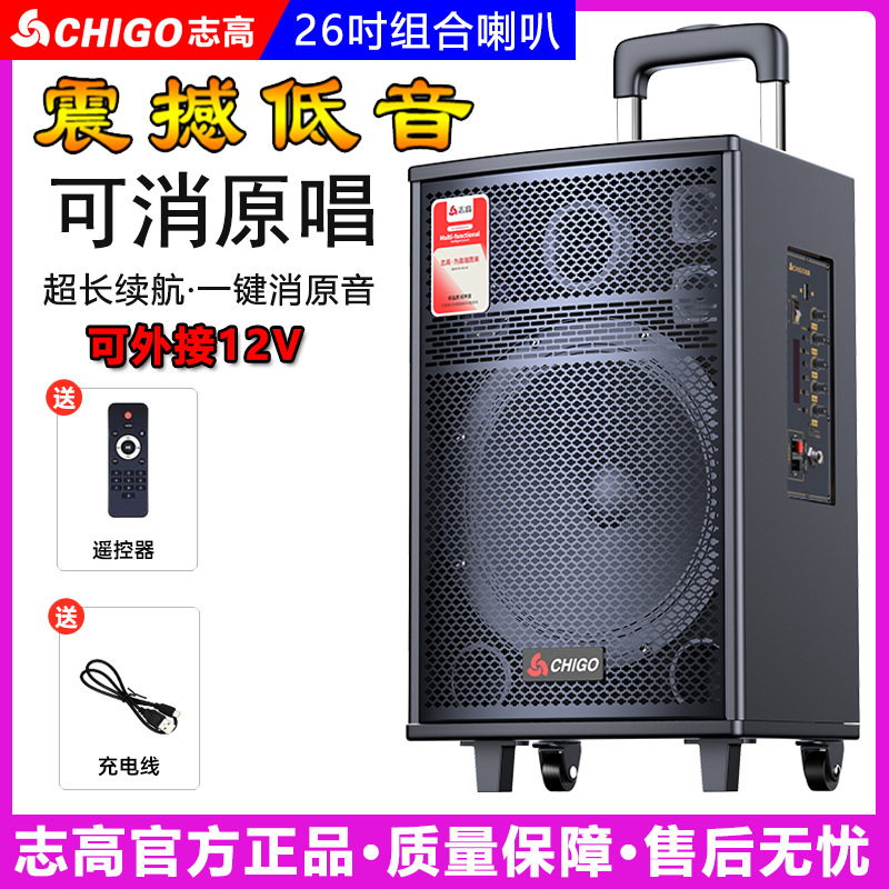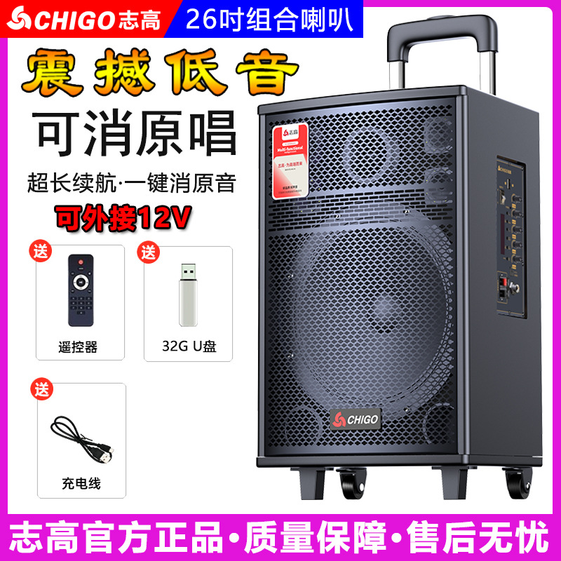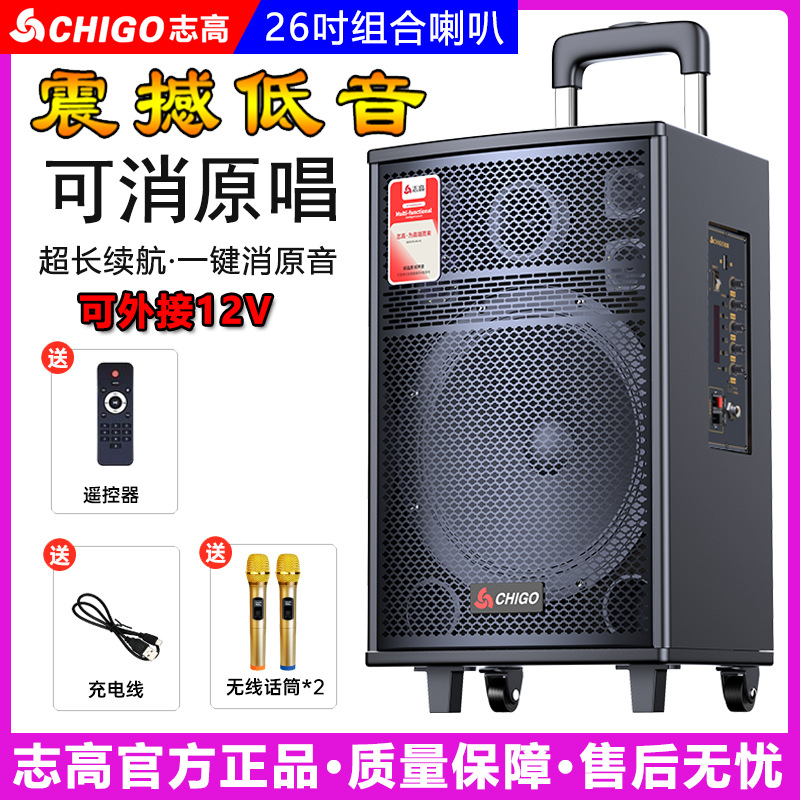 Chigo Square Dance 대용량 무선 블루투스 스피커 홈 가라오케 다기능 야외 고출력 트롤리 스피커