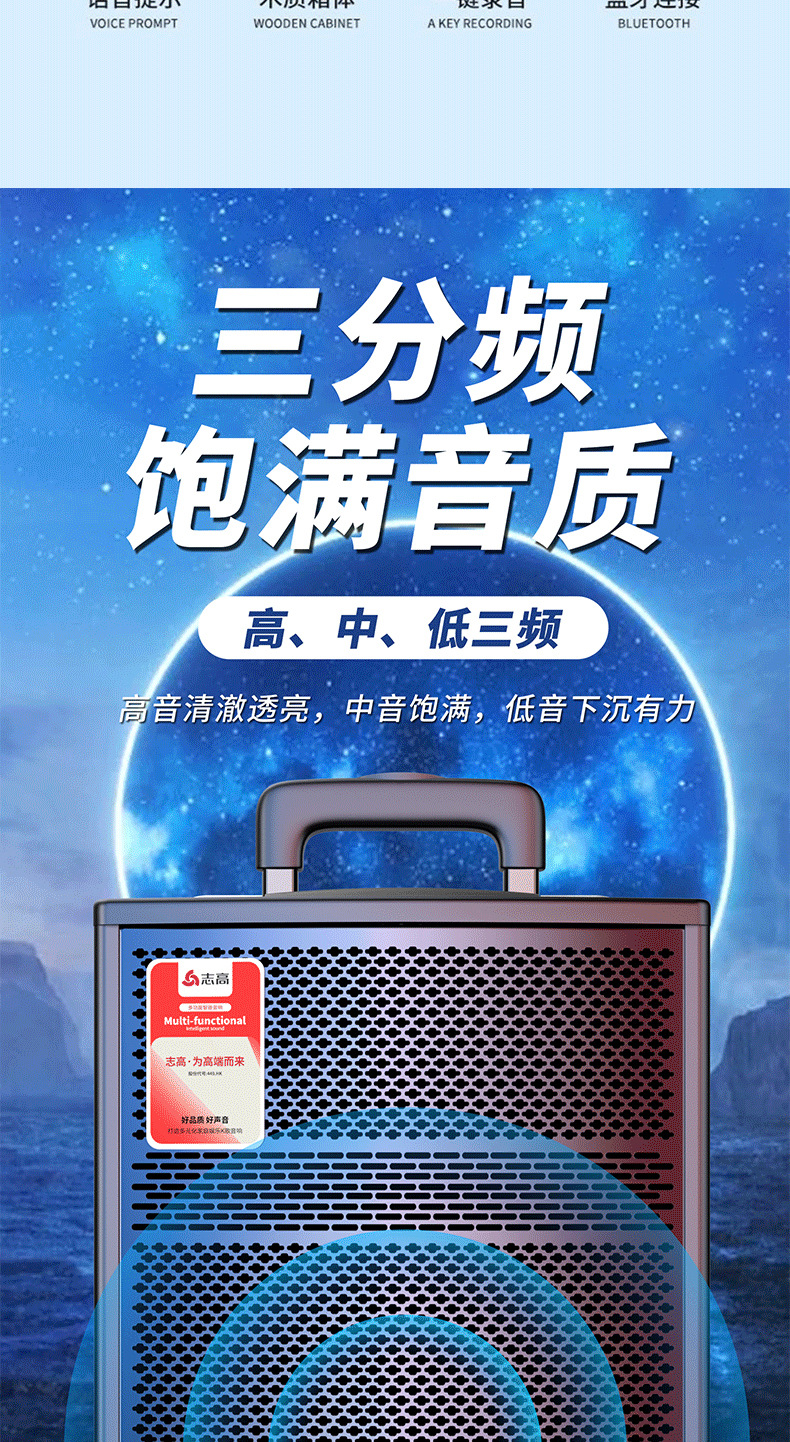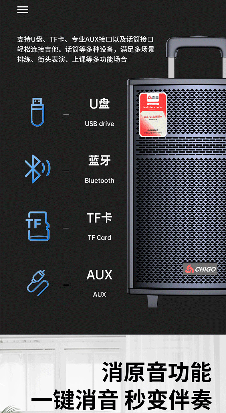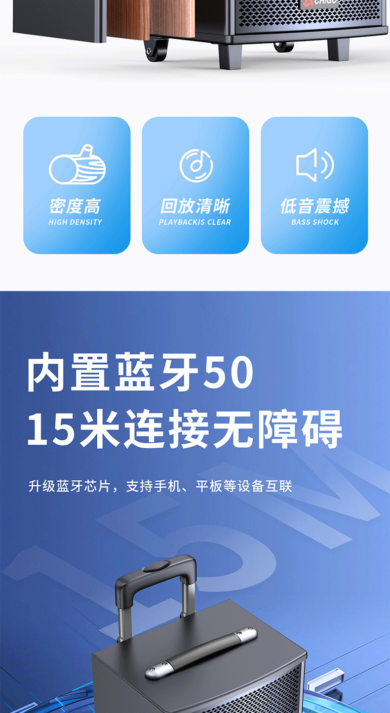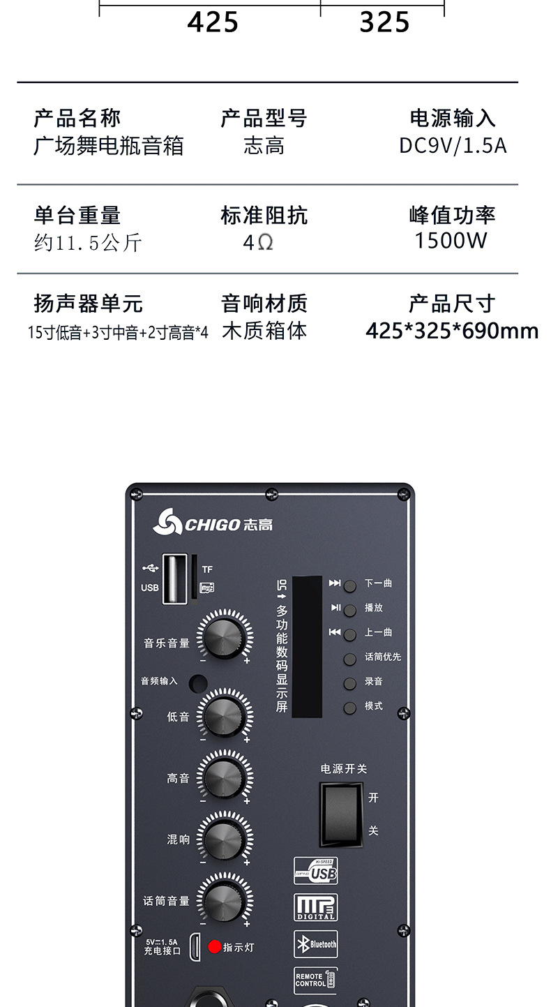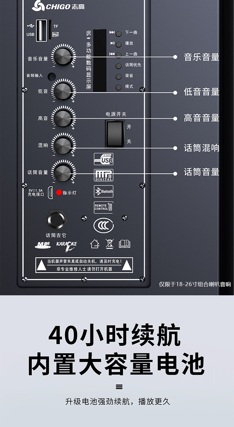 Chigo Square Dance 대용량 무선 블루투스 스피커 홈 가라오케 다기능 야외 고출력 트롤리 스피커