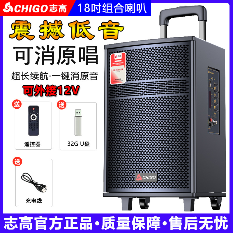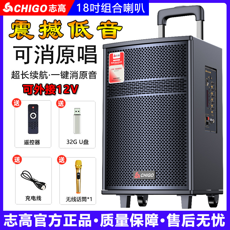 Chigo Square Dance 대용량 무선 블루투스 스피커 홈 가라오케 다기능 야외 고출력 트롤리 스피커스토어 가기
