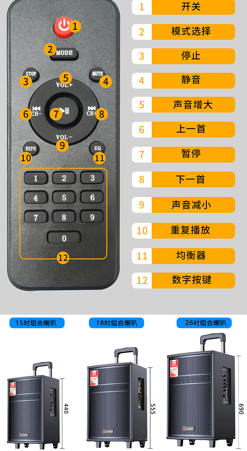 • Q15 오디오 18inch 표준 버전 + 단일 무선 마이크 + 32G USB 플래시 드라이브