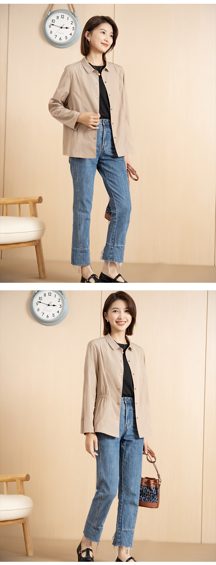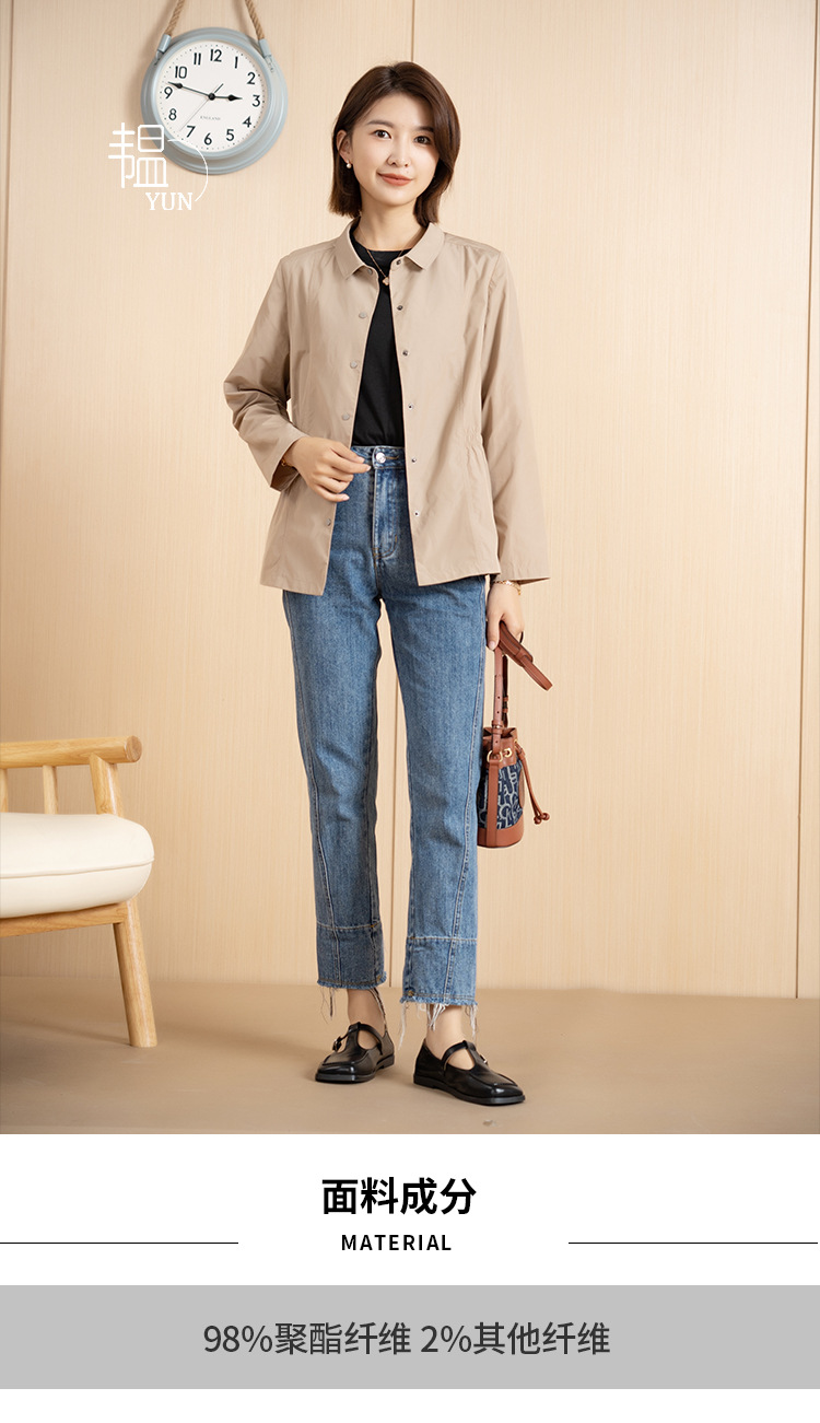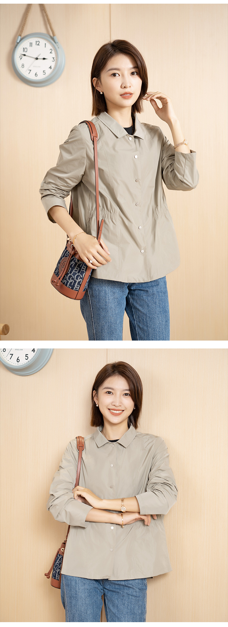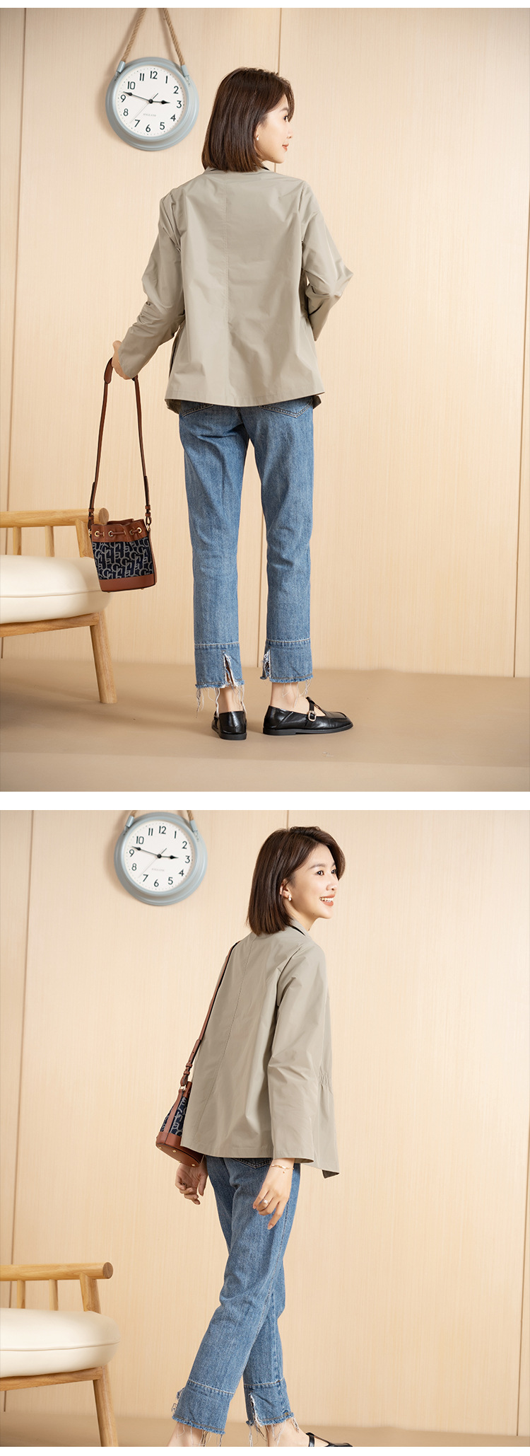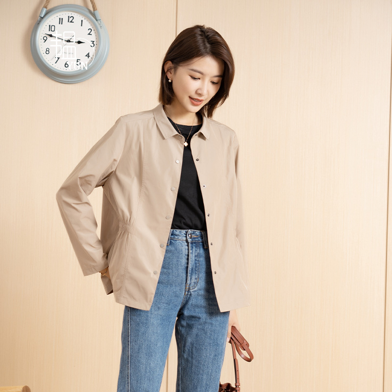 YUN윤의 우아한 봄 신상 여성용 긴팔 라펠 셔츠 카키색 숏탑 코트 (키 작은 분들을 위한)스토어 가기