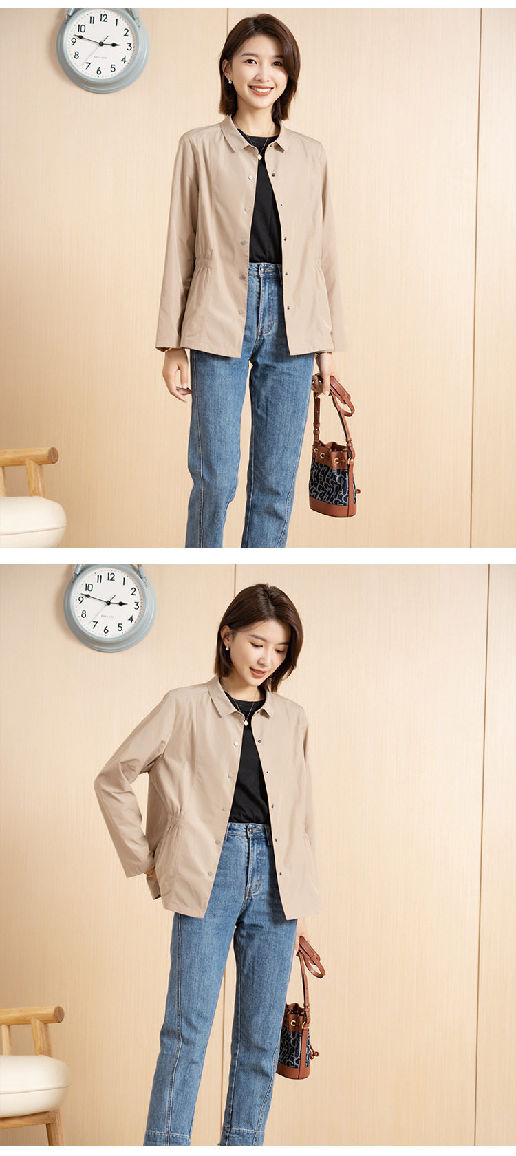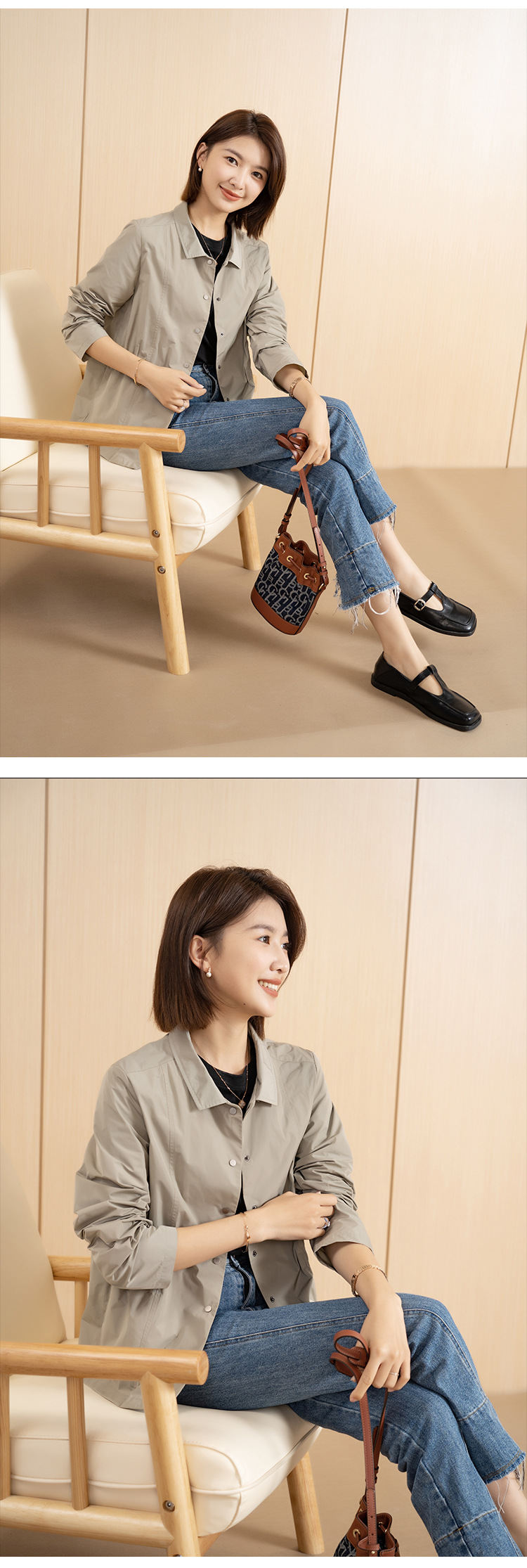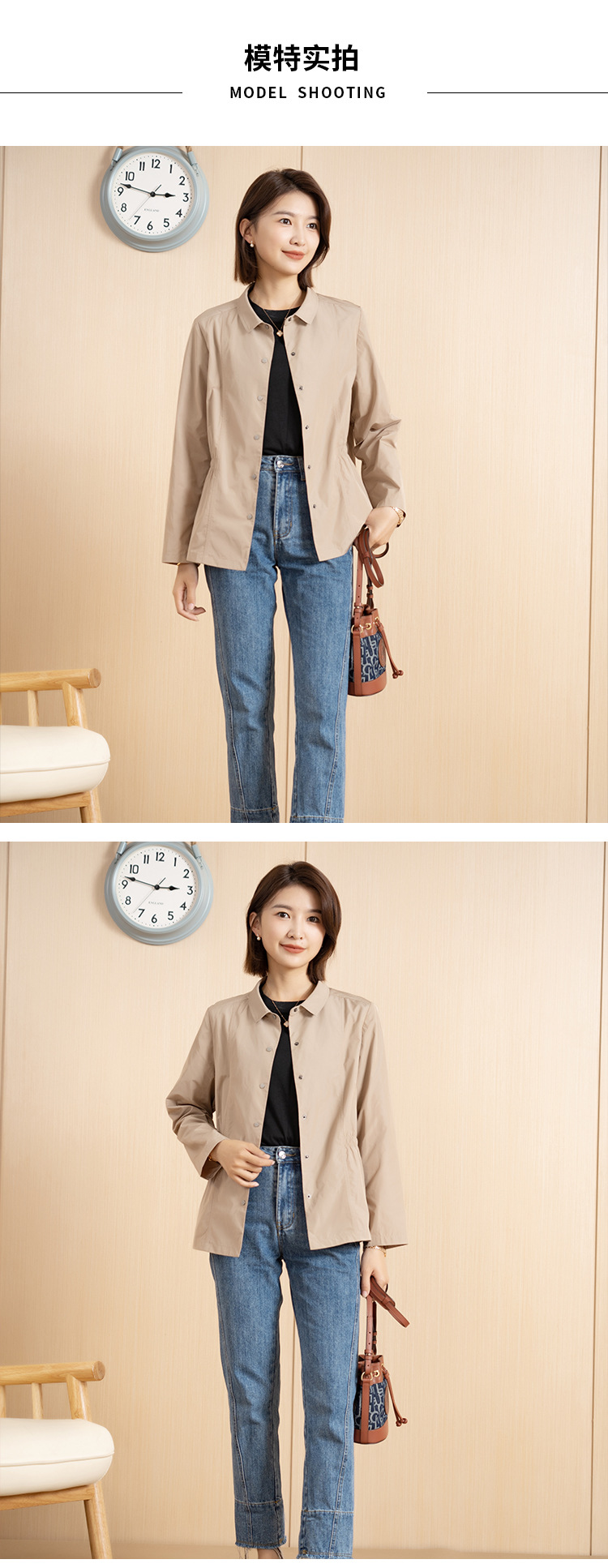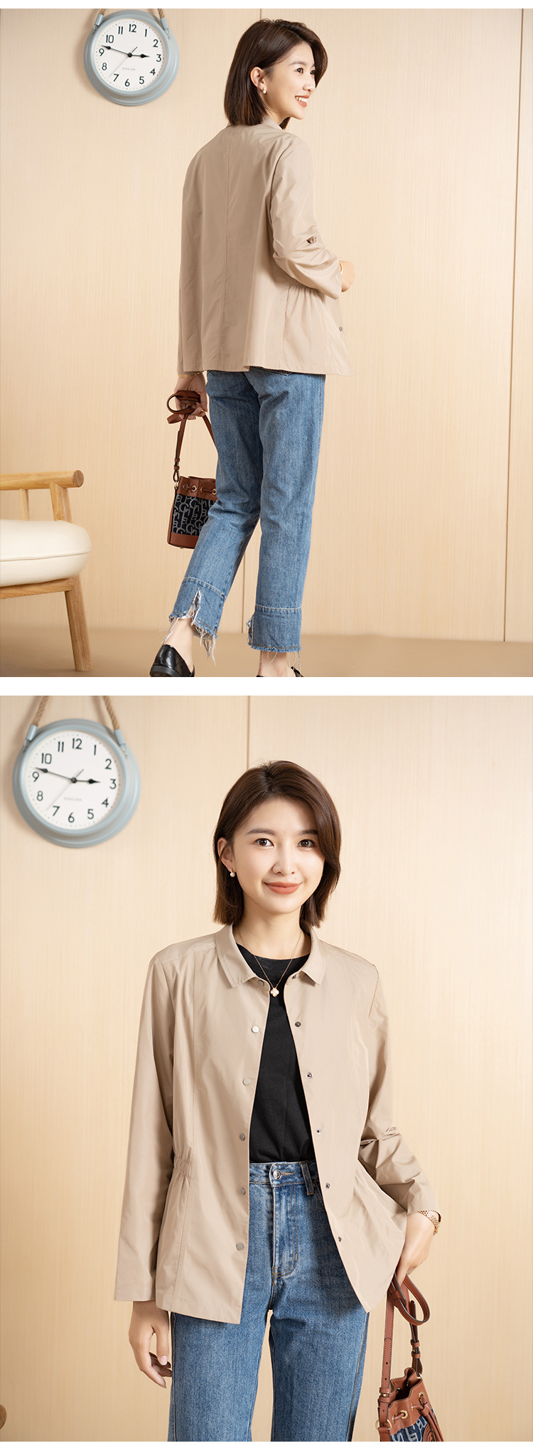 YUN윤의 우아한 봄 신상 여성용 긴팔 라펠 셔츠 카키색 숏탑 코트 (키 작은 분들을 위한)스토어 가기
