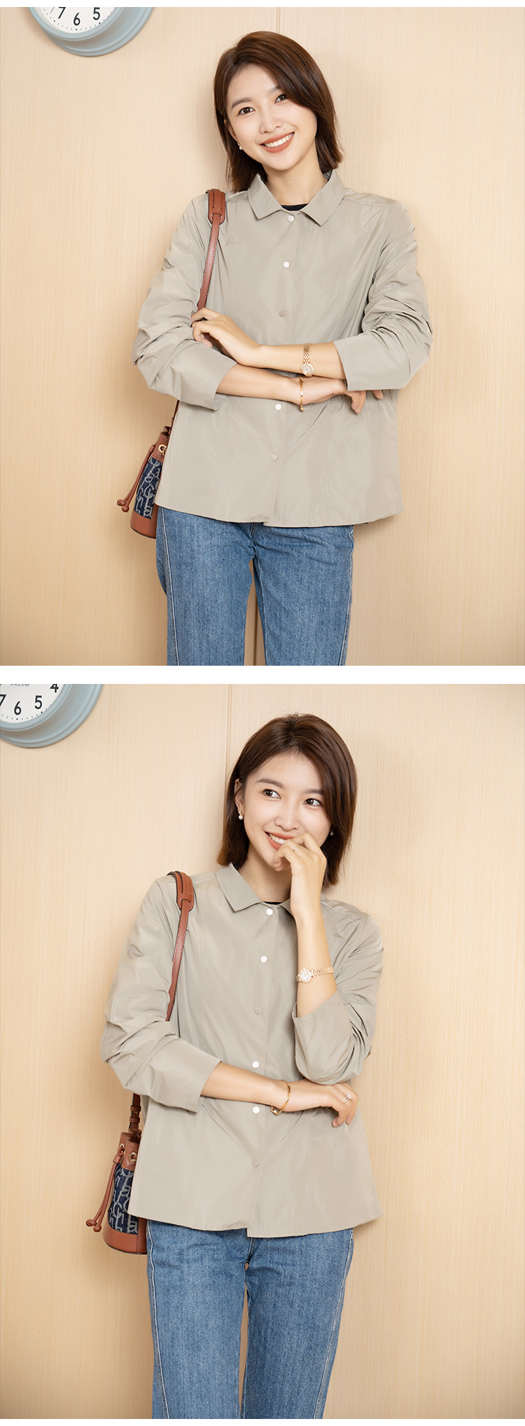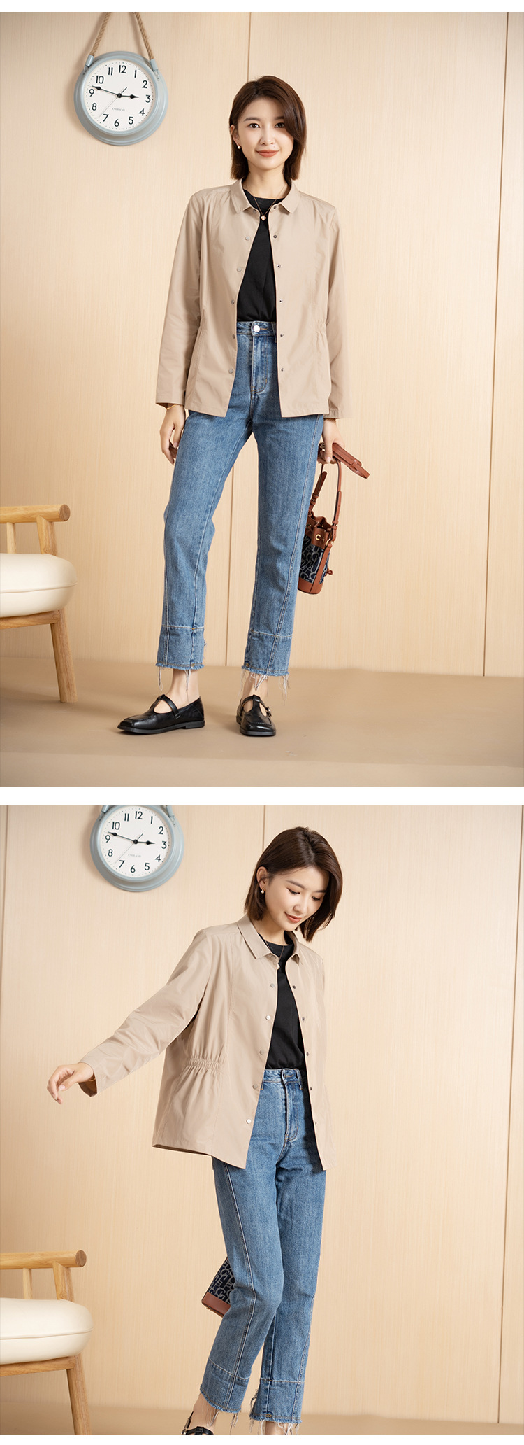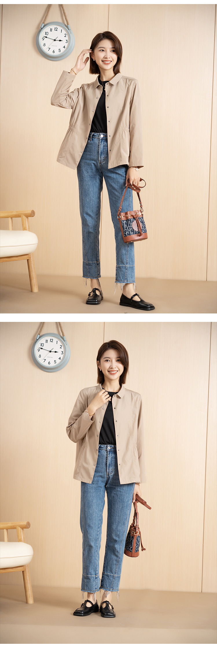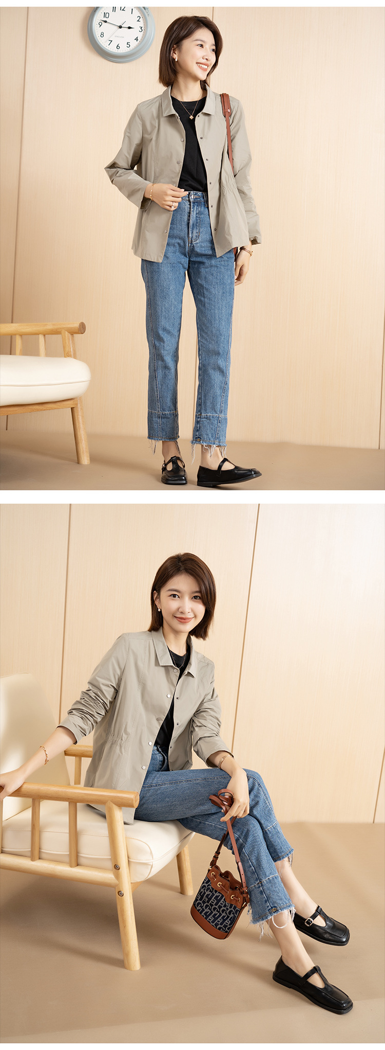 YUN윤의 우아한 봄 신상 여성용 긴팔 라펠 셔츠 카키색 숏탑 코트 (키 작은 분들을 위한)스토어 가기