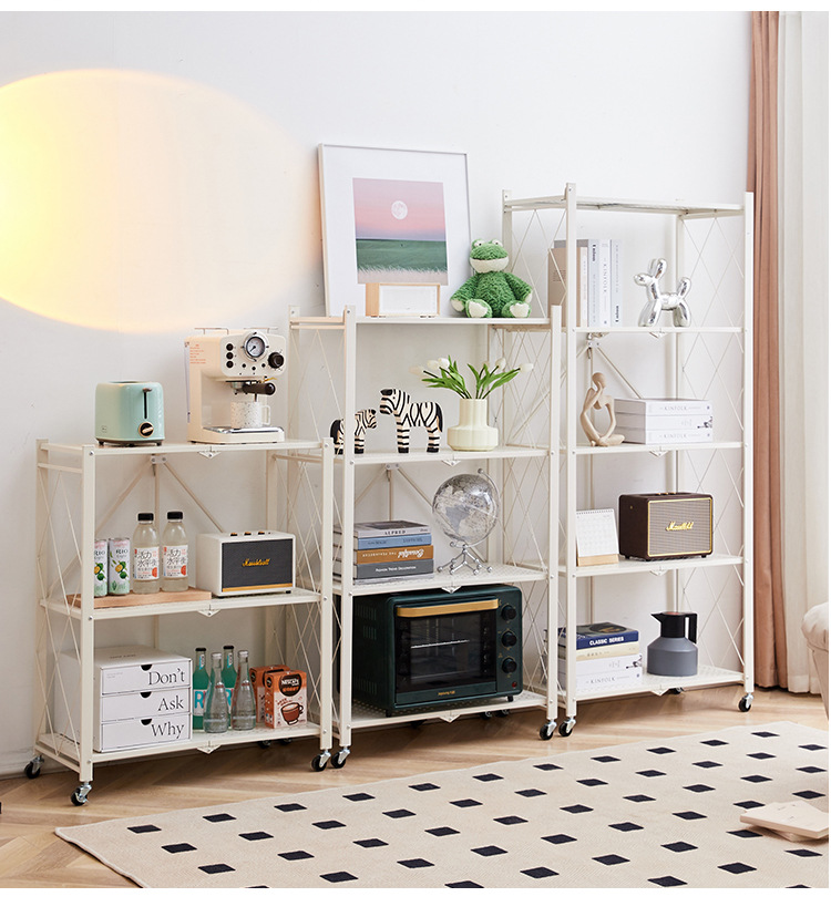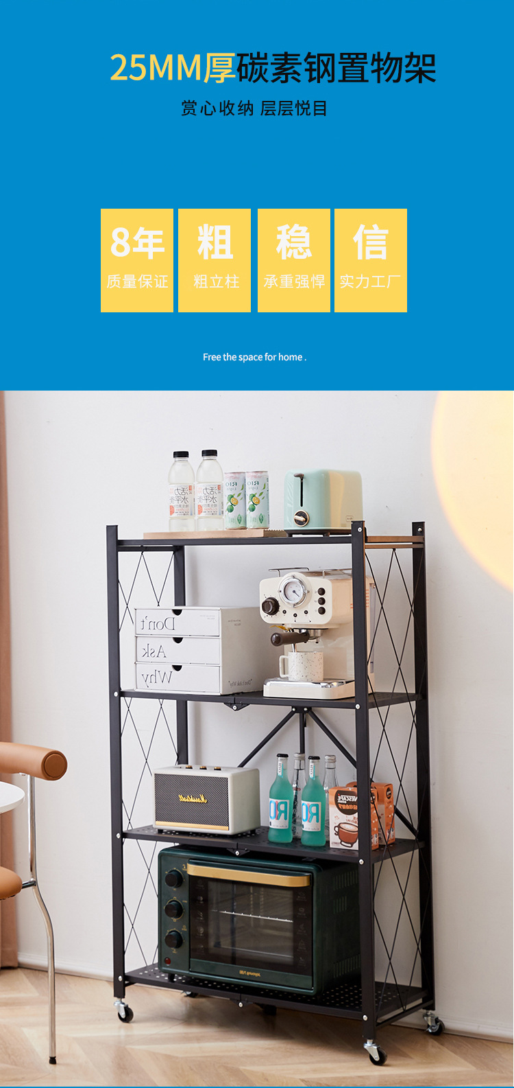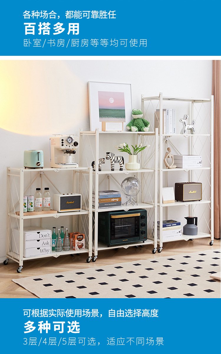주방 무설치 접이식 수납 선반 다층 구멍판 가정용 전자레인지 냄비 오븐 보관 선반스토어 가기