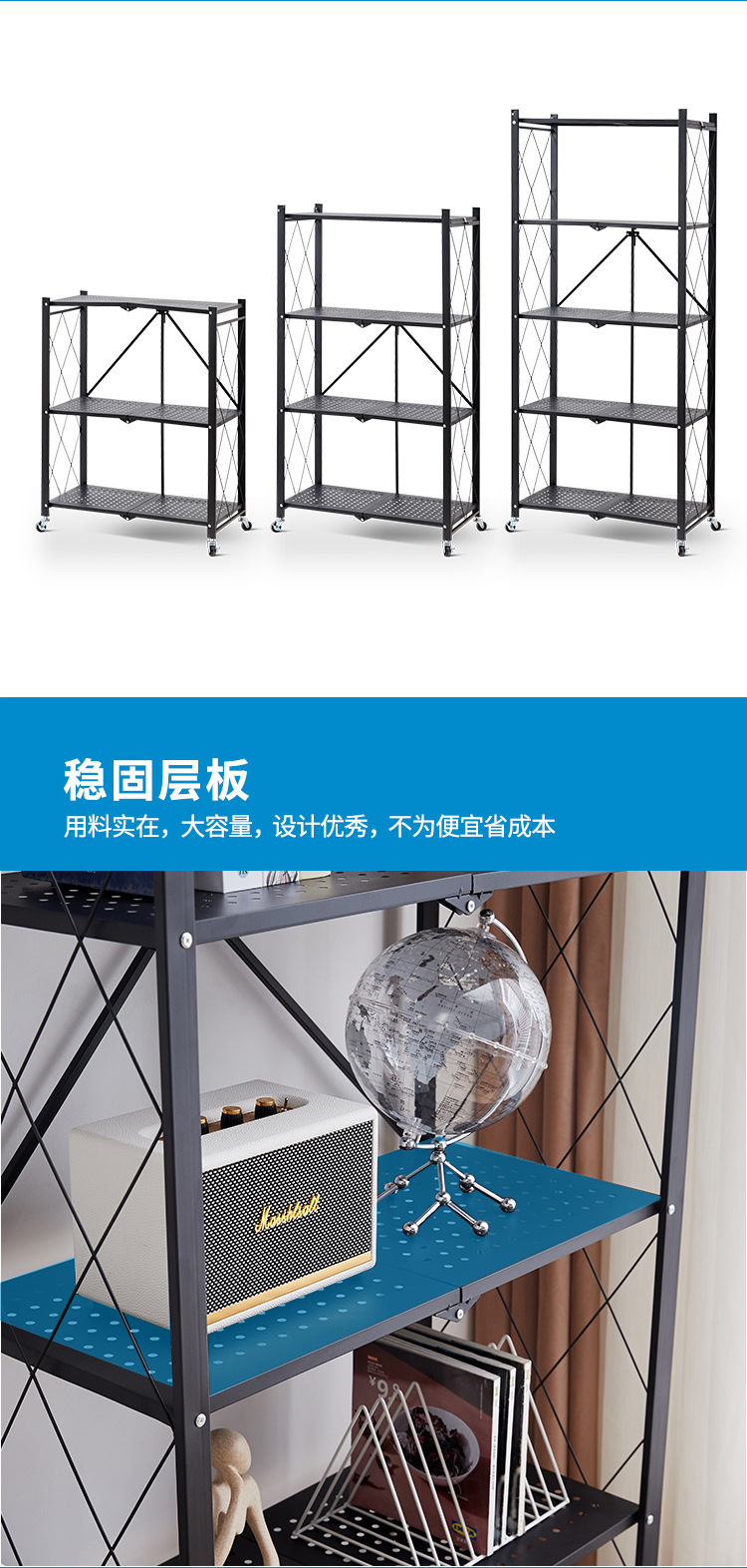 주방 무설치 접이식 수납 선반 다층 구멍판 가정용 전자레인지 냄비 오븐 보관 선반