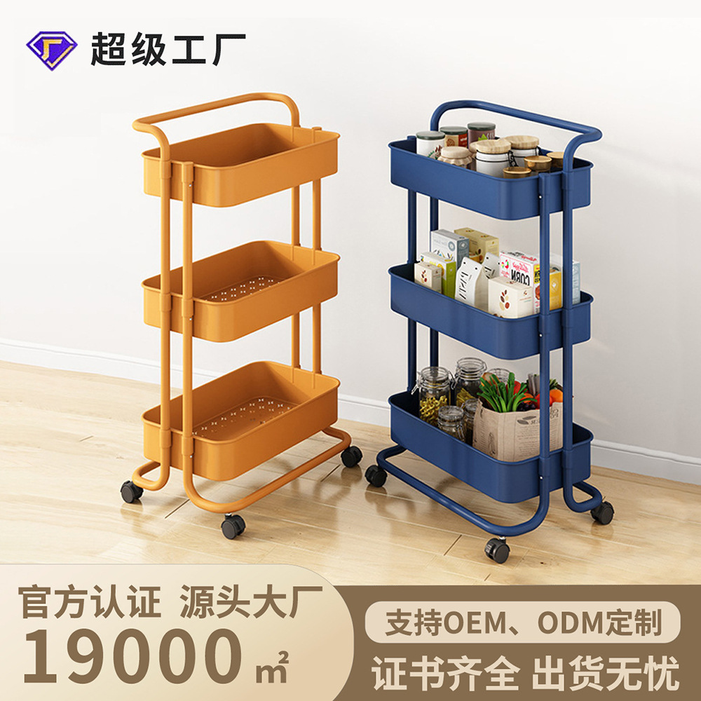ins 캔디 컬러 스낵 보관함 주방 탄소강 이동식 트롤리 다층 바닥 스탠딩 거실 보관함