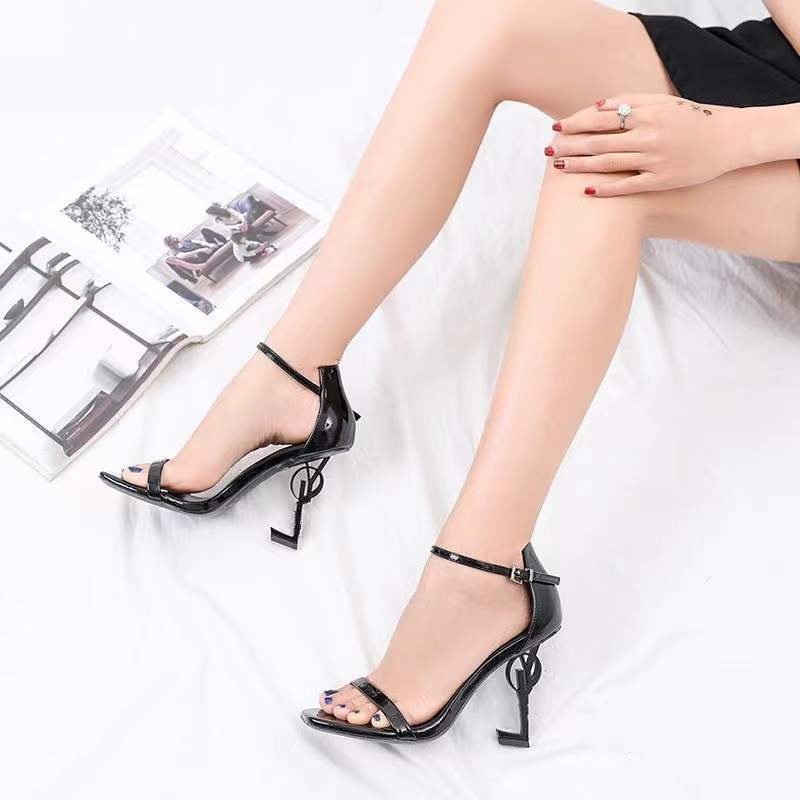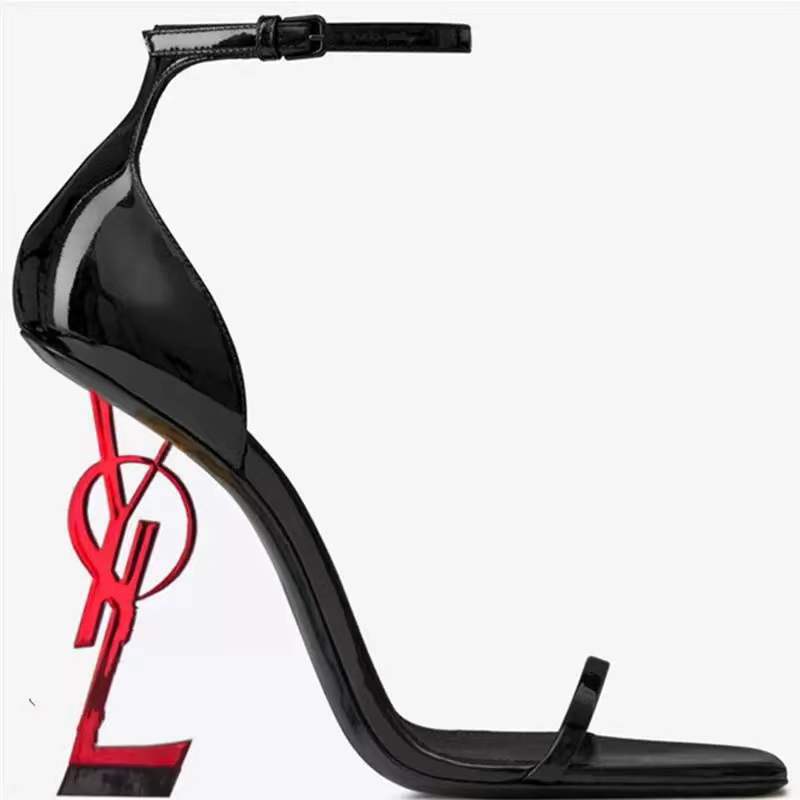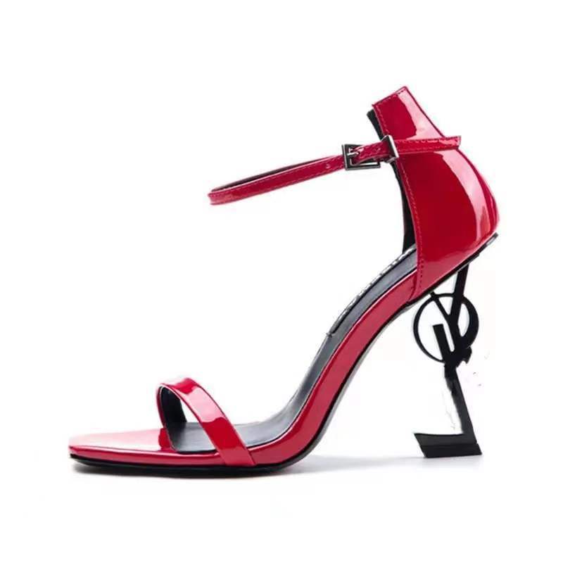 알파벳 하이힐 사이버 연예인 섹시한 알파벳 모양의 발 뒤꿈치 슈퍼 하이힐 여성을위한 유행 얇은 굽 스퀘어 토 샌들
