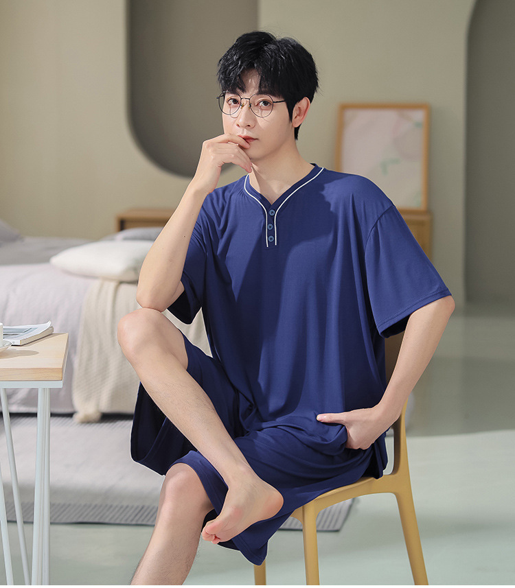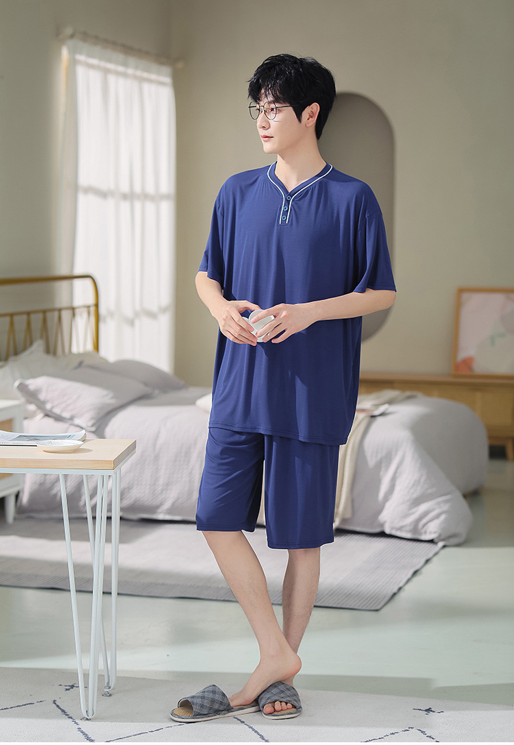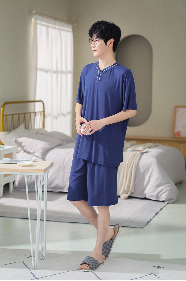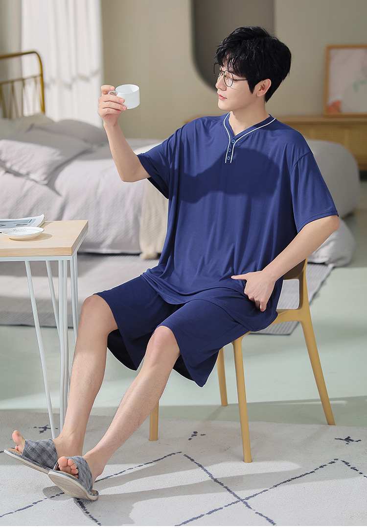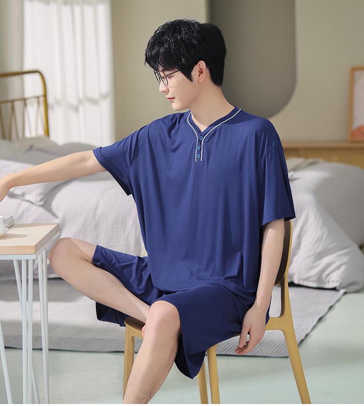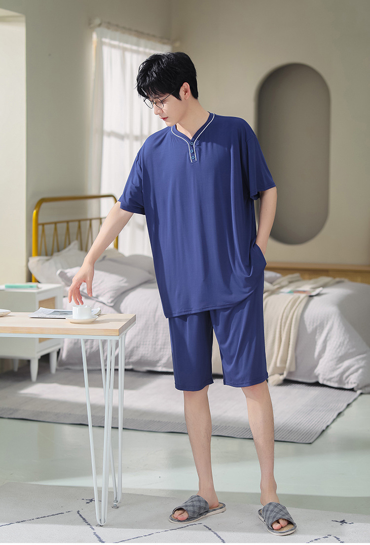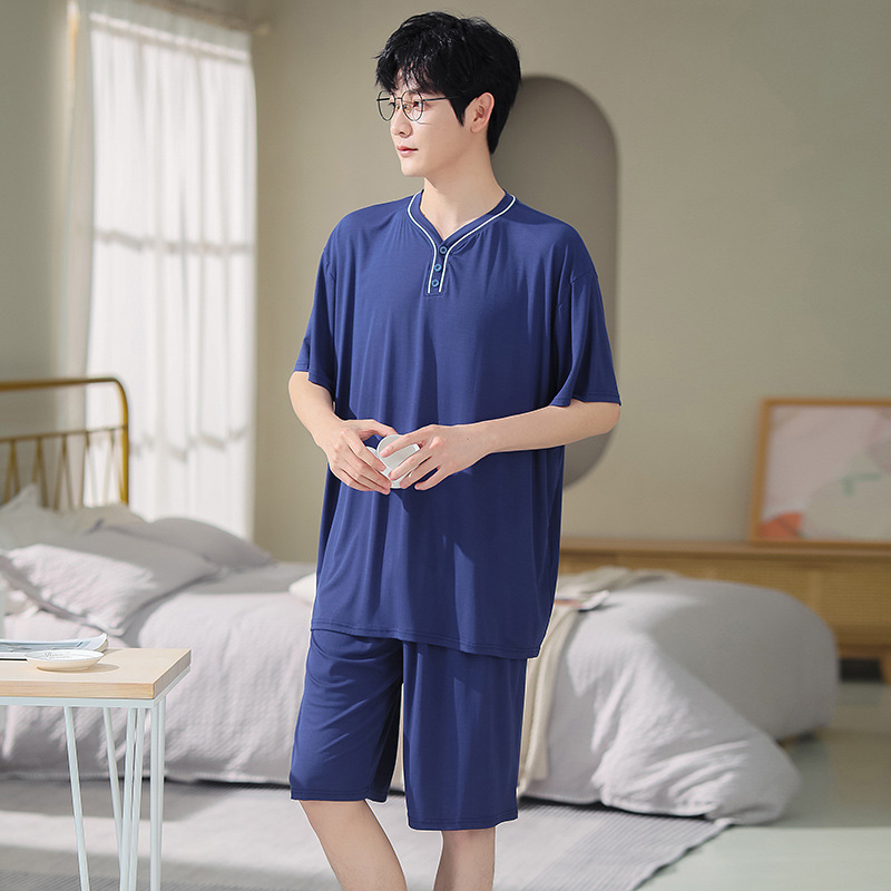 남자의 플러스 사이즈 잠옷 여름 모달 반팔 반바지 얇은 V-넥 단색 가정 옷 세트 제조 업체 도매스토어 가기