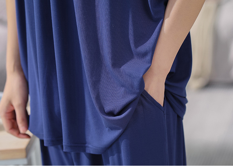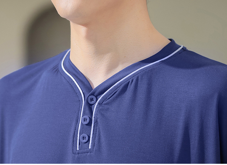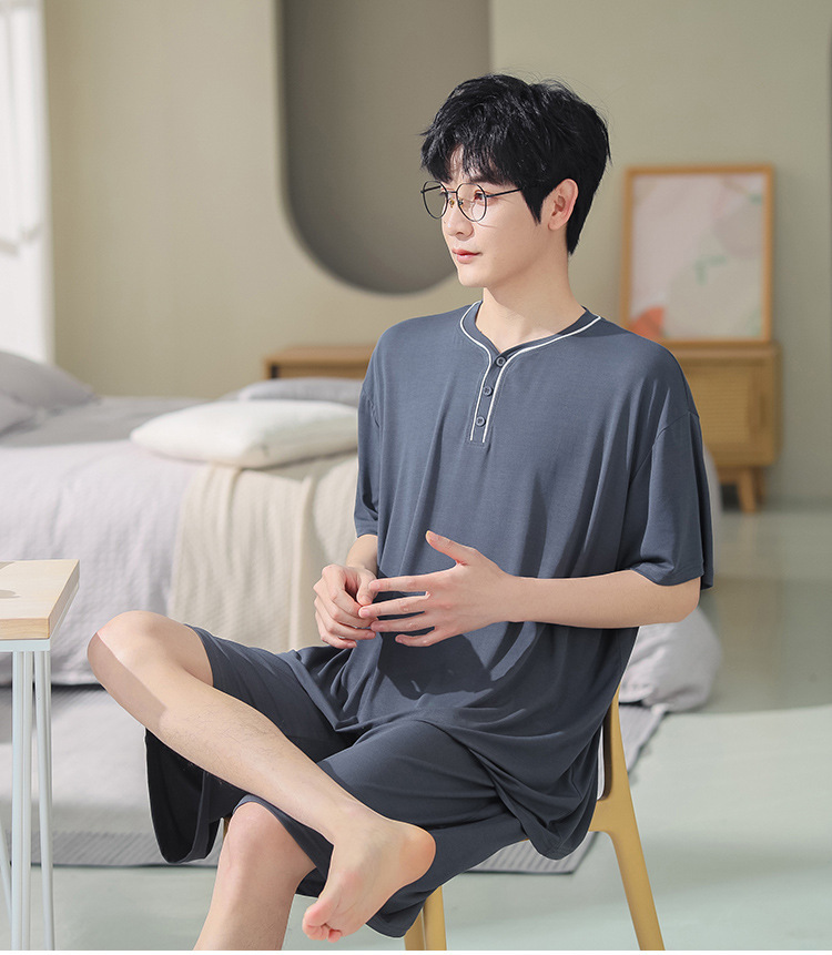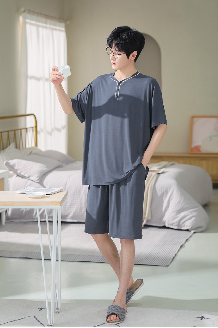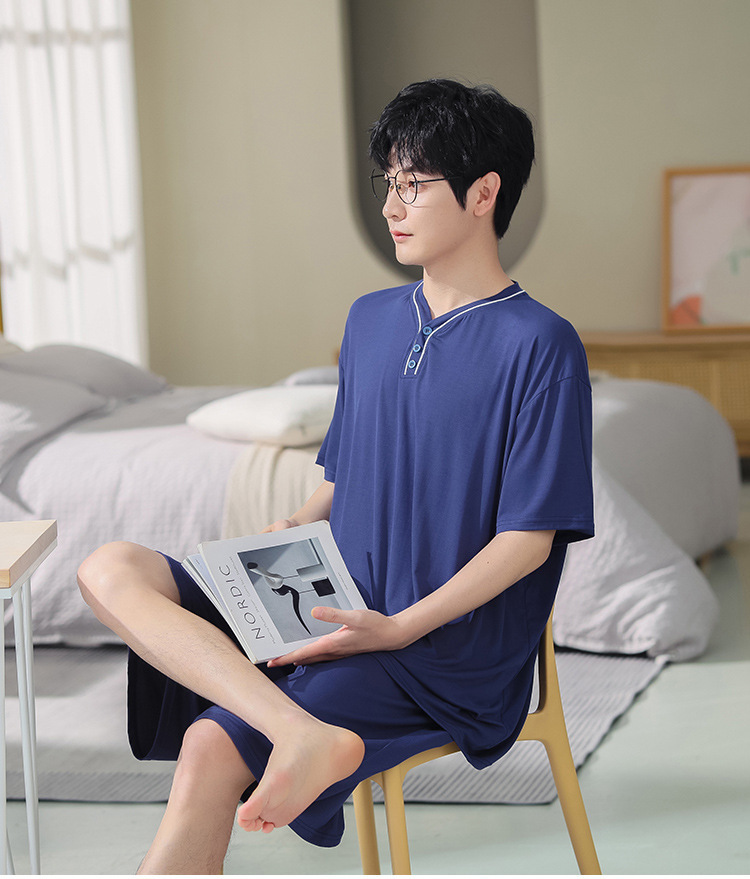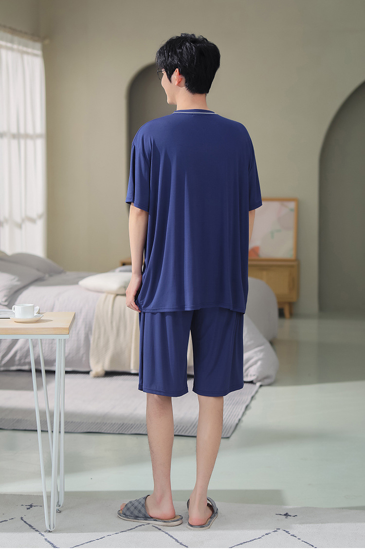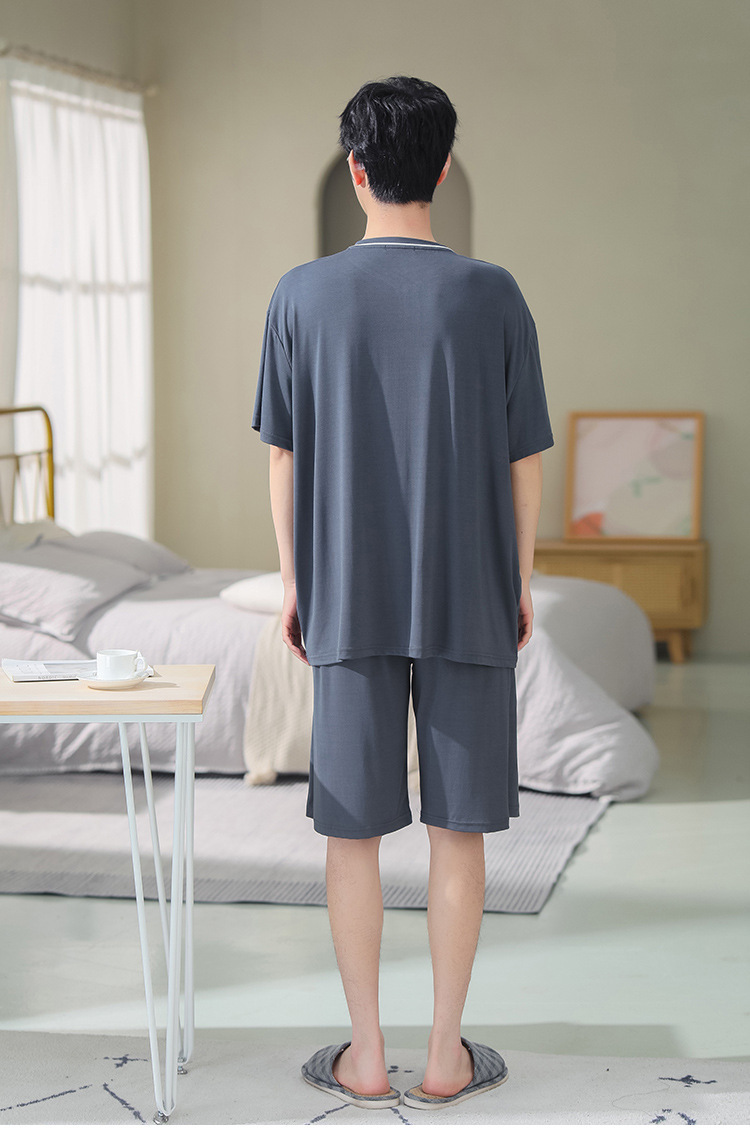 남자의 플러스 사이즈 잠옷 여름 모달 반팔 반바지 얇은 V-넥 단색 가정 옷 세트 제조 업체 도매스토어 가기