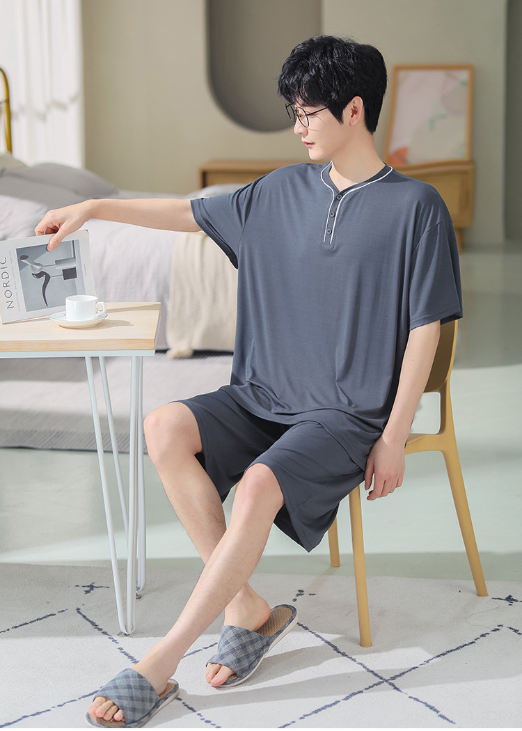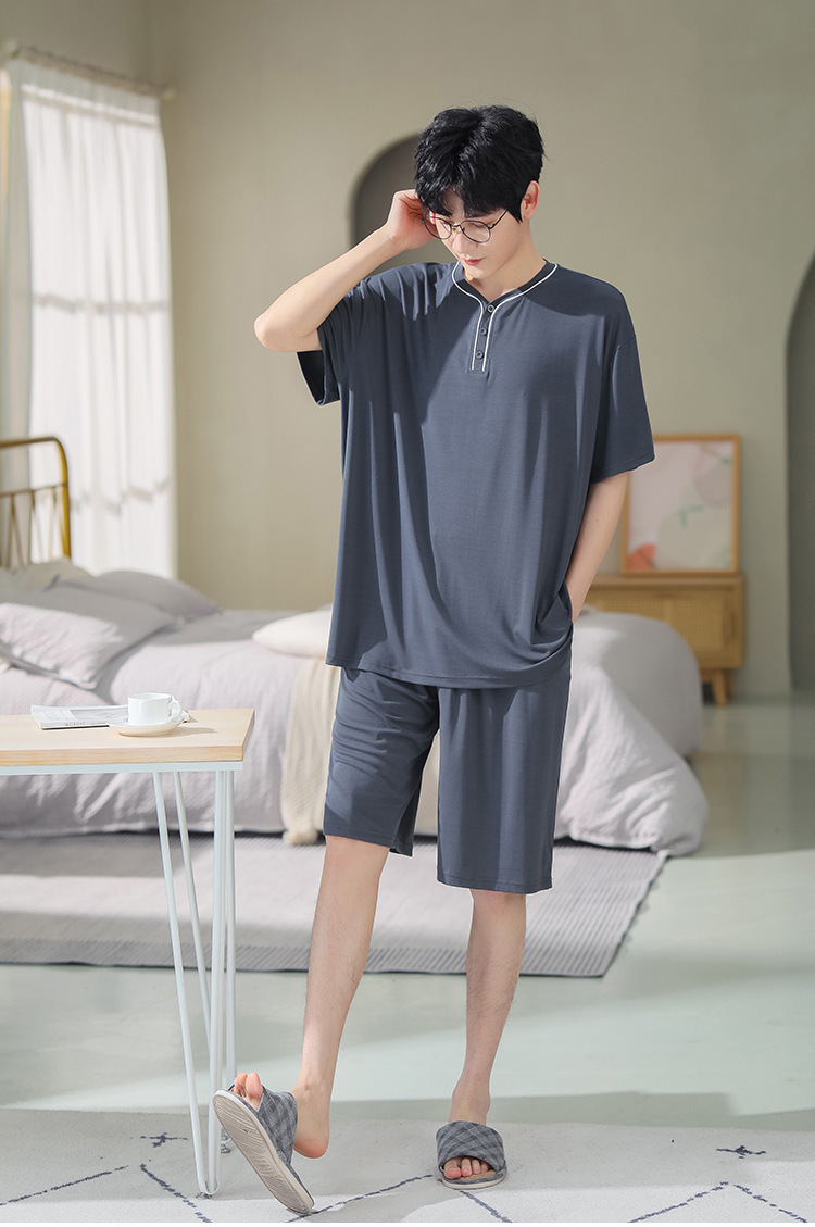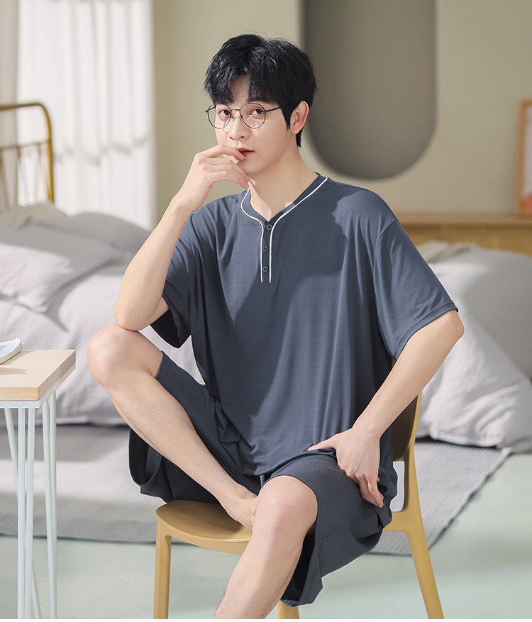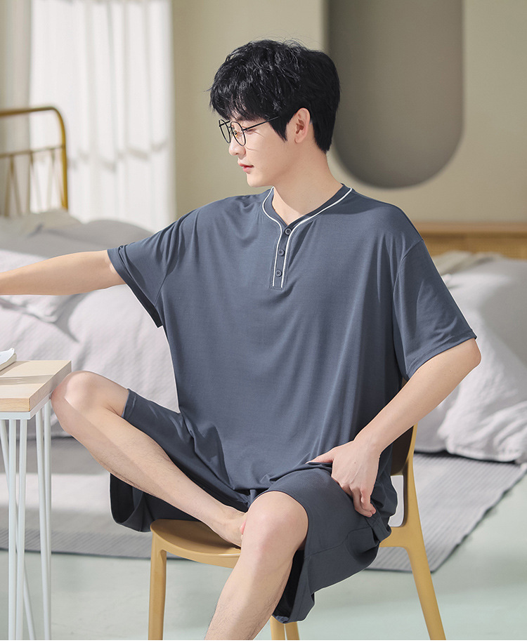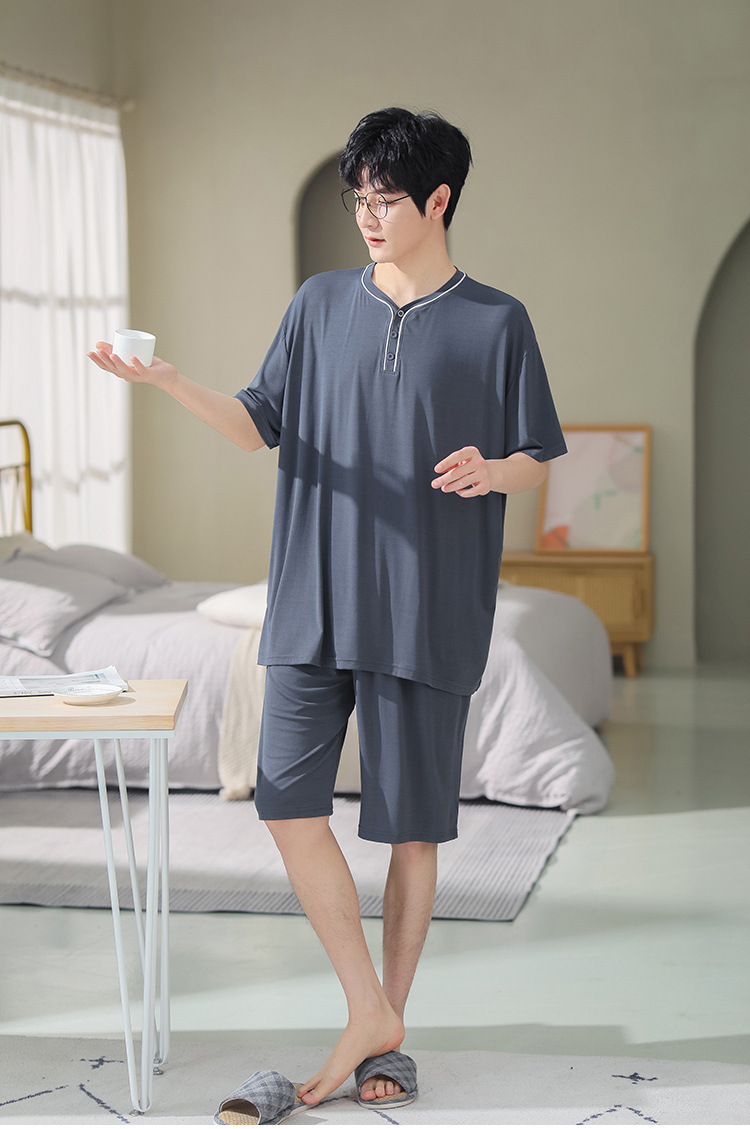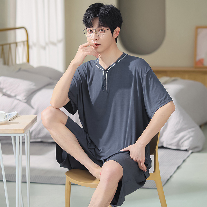 남자의 플러스 사이즈 잠옷 여름 모달 반팔 반바지 얇은 V-넥 단색 가정 옷 세트 제조 업체 도매