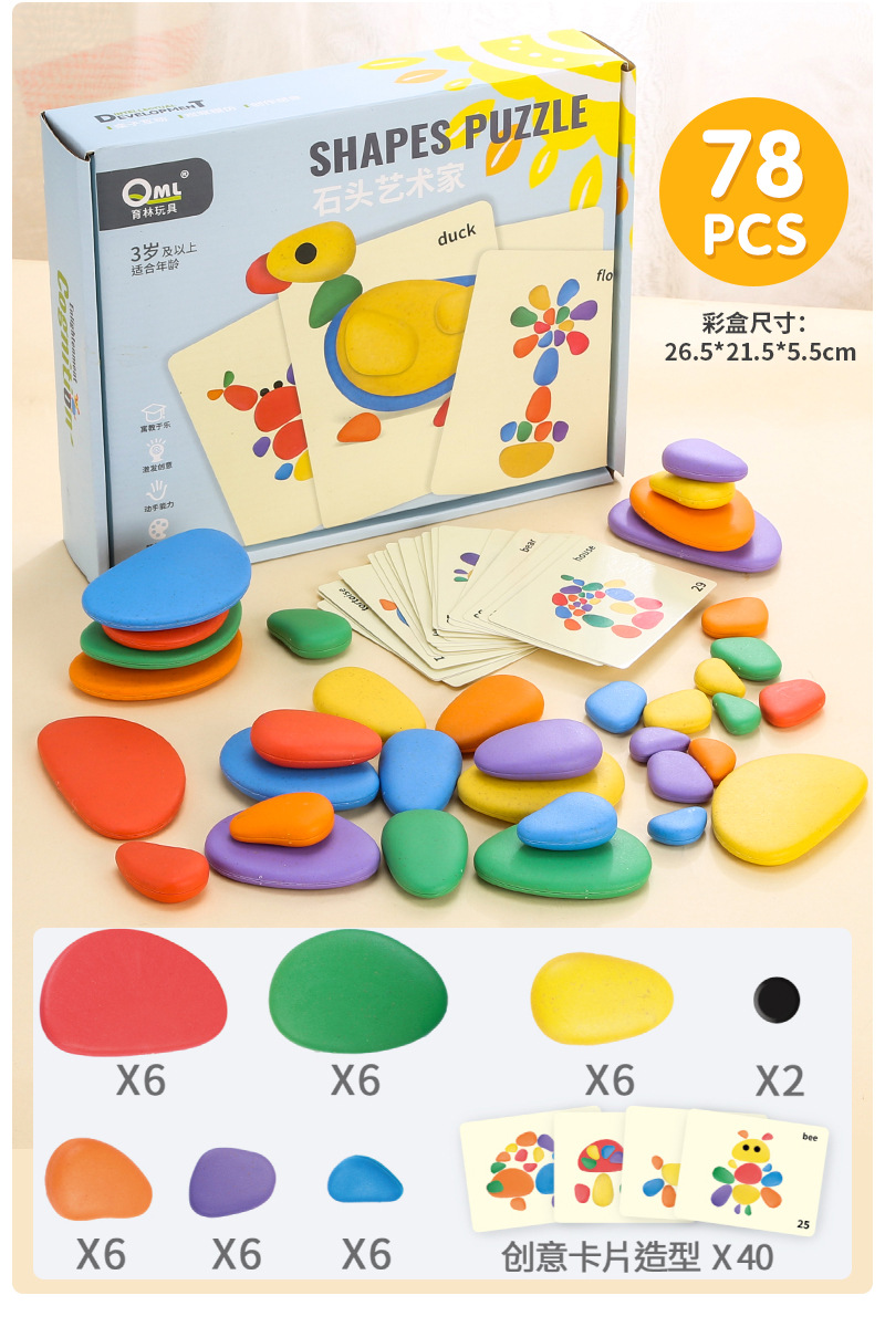 무지개 자갈 쌓인 돌 어린이 교육 완구 데스크탑 대화 형 논리 사고 게임 그림 장난감스토어 가기