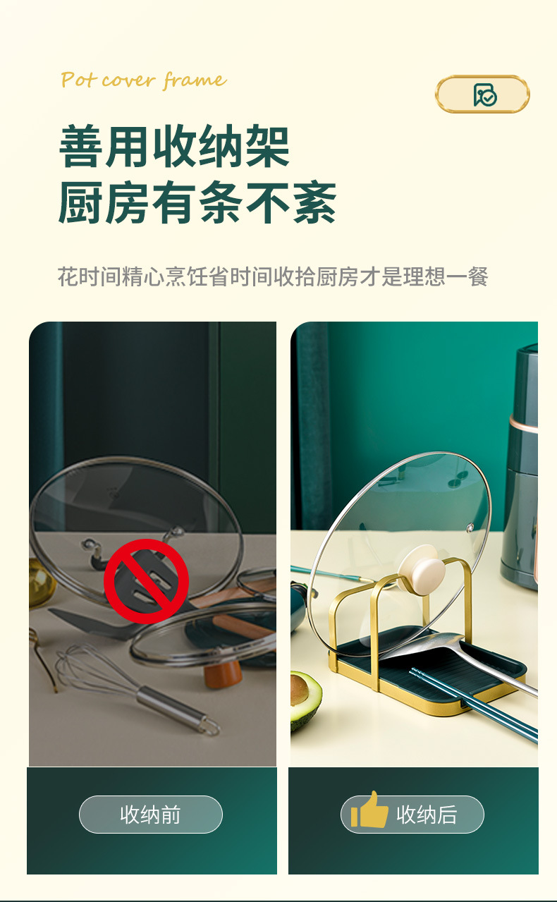 가정용 주방 수납 선반 무타공 뚜껑걸이 주걱걸이 수납용품 도마 뚜껑 보관대