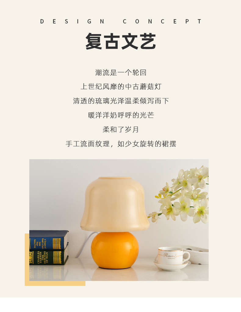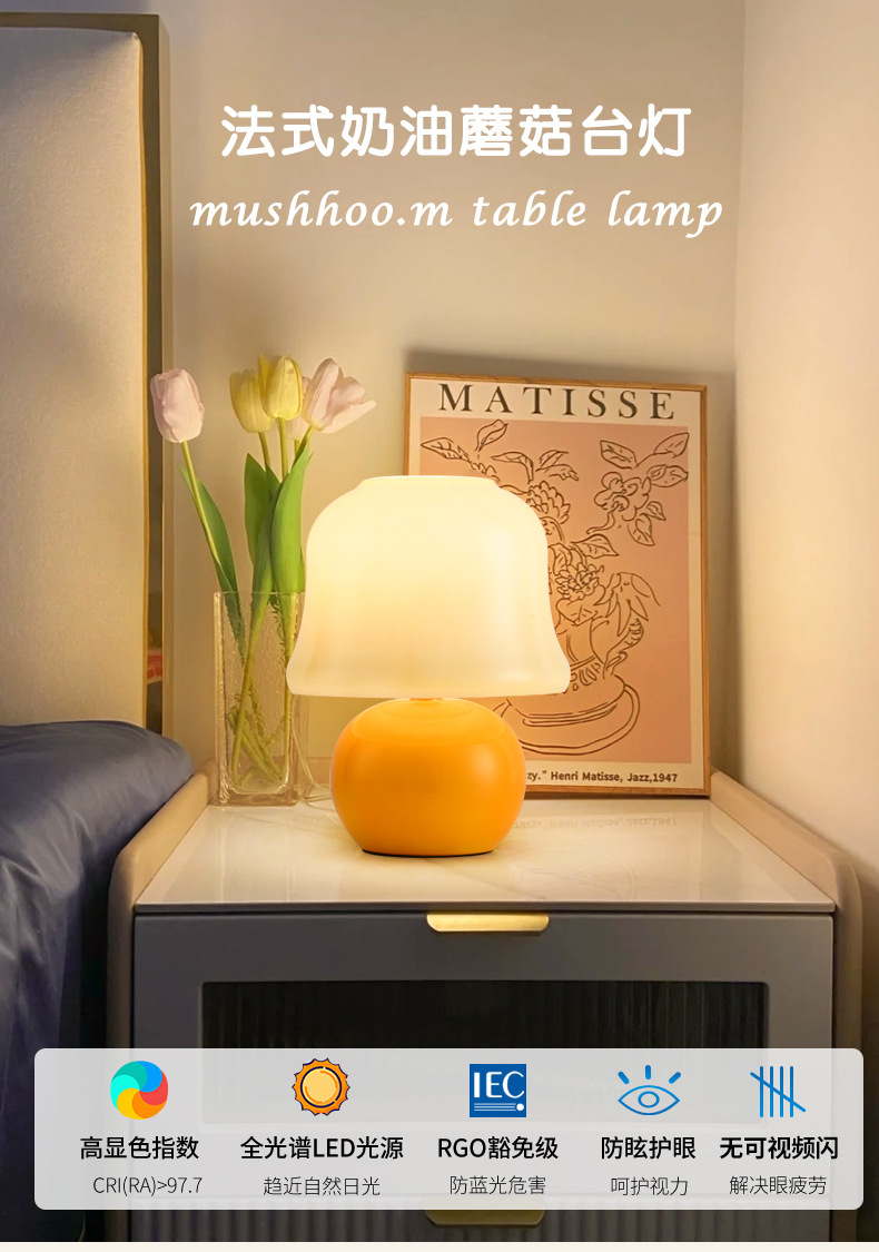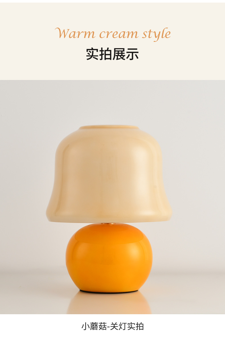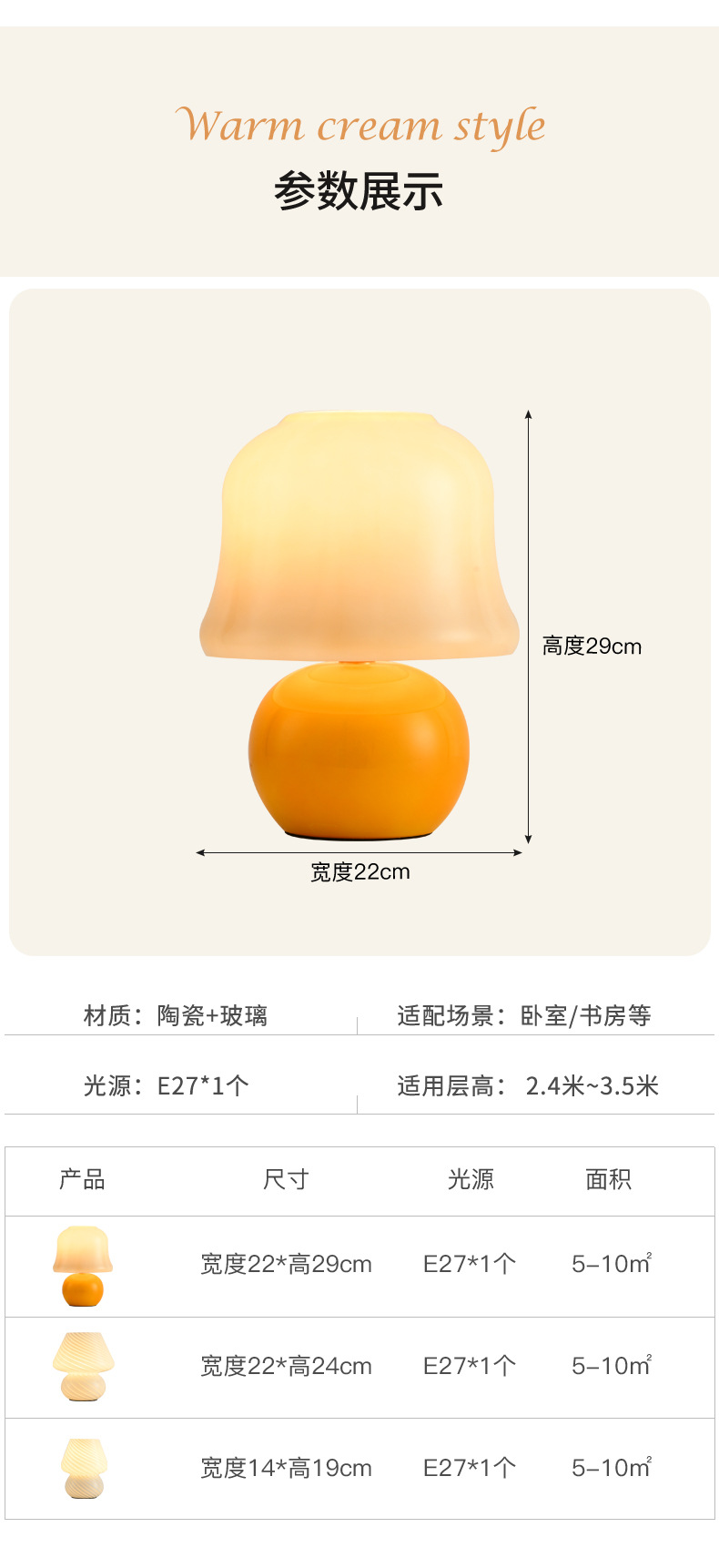 눈 보호 전체 스펙트럼 프랑스 크림 버섯 테이블 램프 중간 고대 유약 높은 수준의 거실 분위기 장식 침실 침대 옆 램프스토어 가기