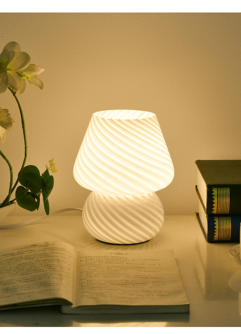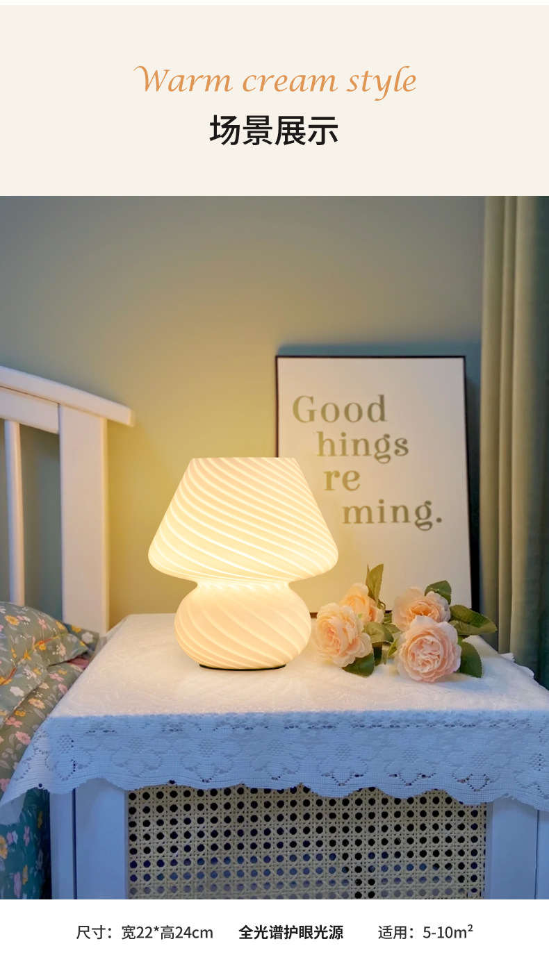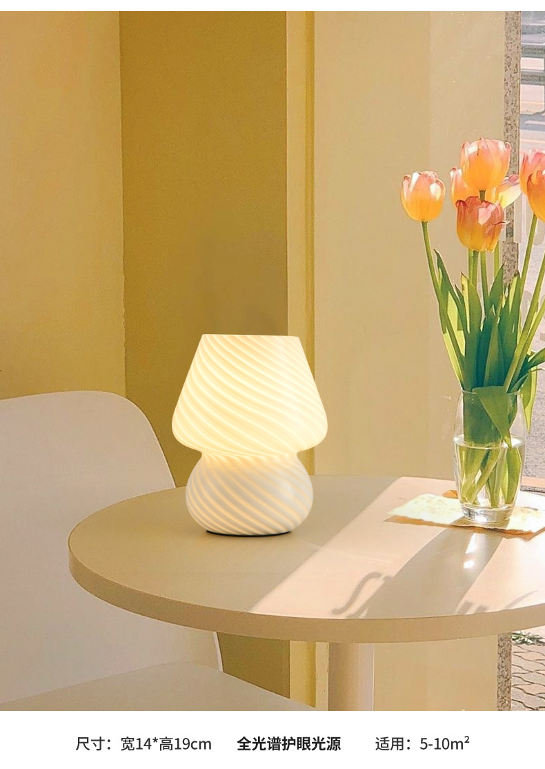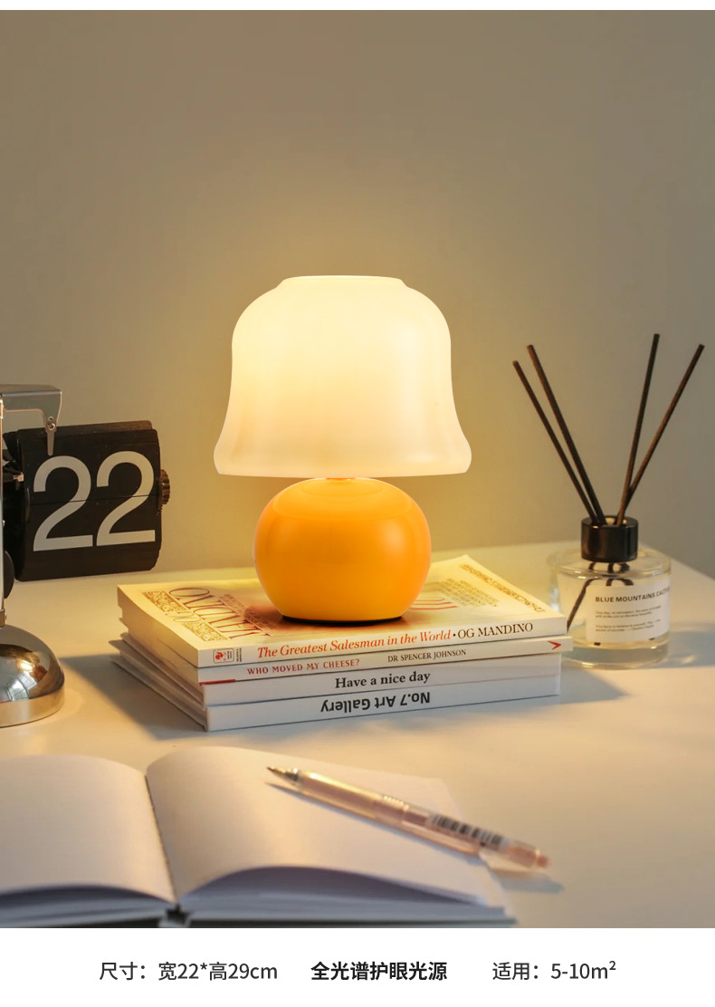 눈 보호 전체 스펙트럼 프랑스 크림 버섯 테이블 램프 중간 고대 유약 높은 수준의 거실 분위기 장식 침실 침대 옆 램프스토어 가기