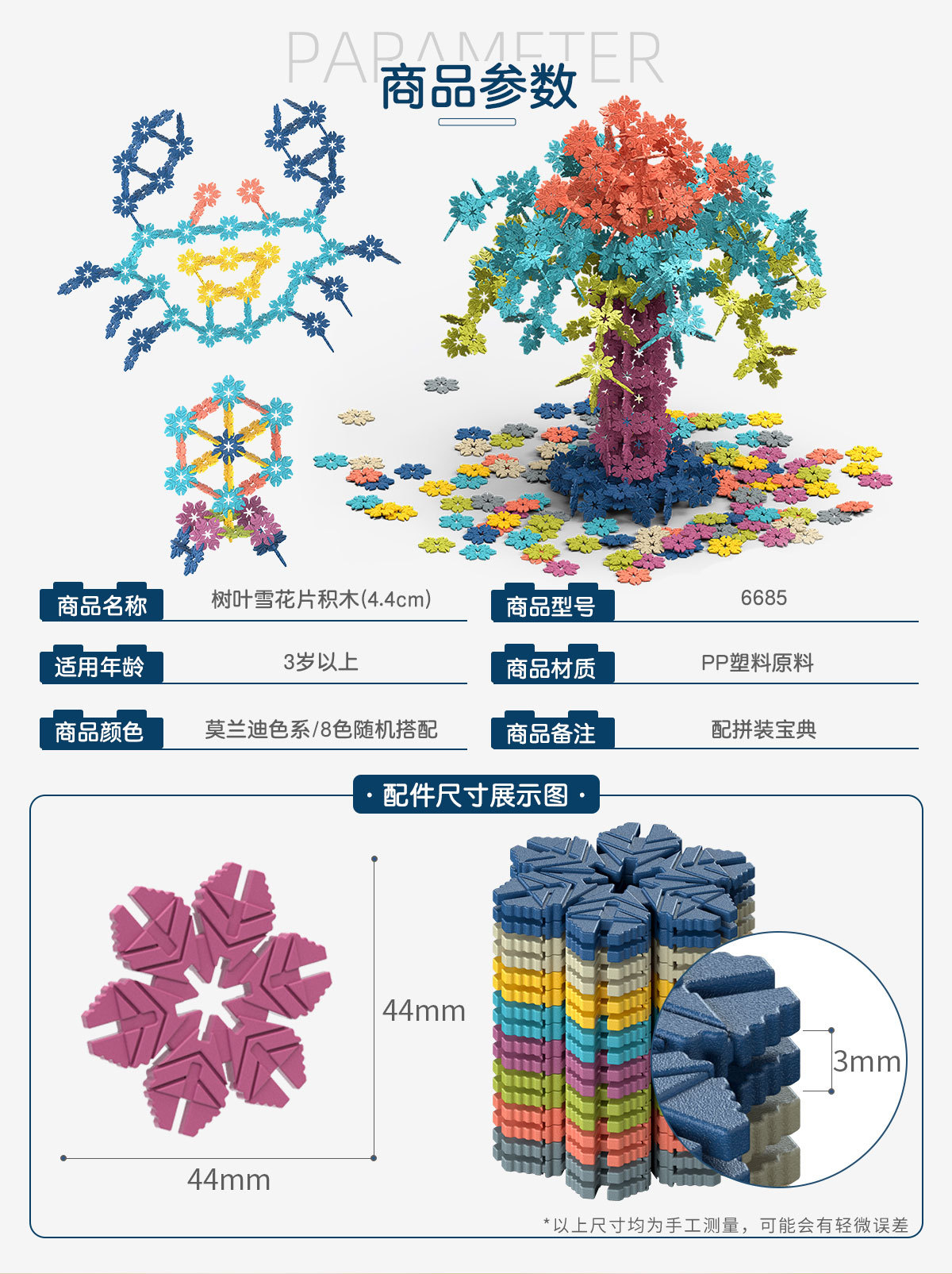 [두껍게] 나뭇잎 눈송이 조각 빌딩 블록 유치원 아기 색 기하학인지 핸즈온 두뇌 장난감스토어 가기