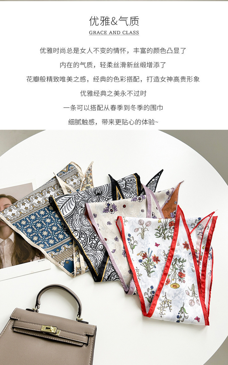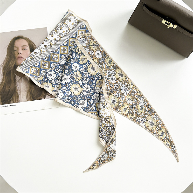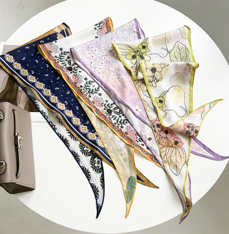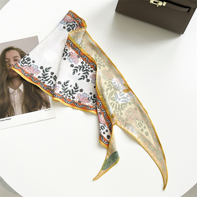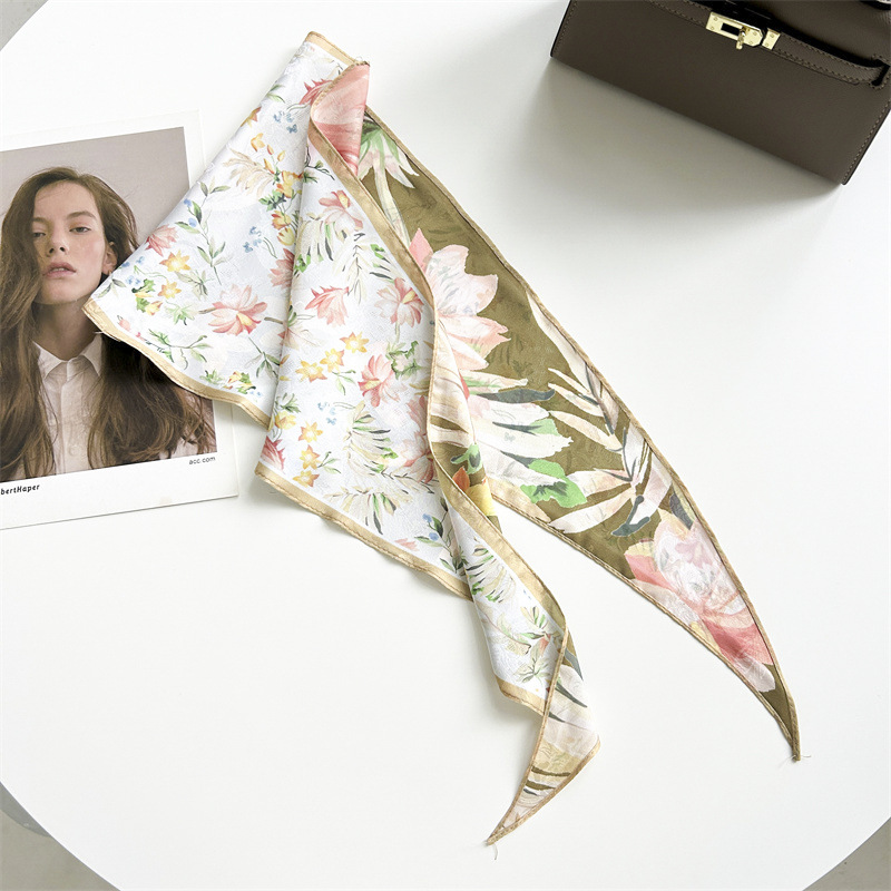 봄과 여름 목가적 스타일 꽃 다이아몬드 스카프 다크 패턴 자카드 실크 스카프 여성의 목 보호 기질 작은 스카프 타이 백스토어 가기